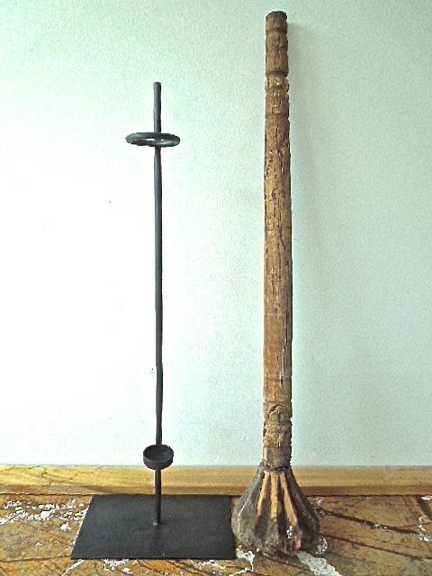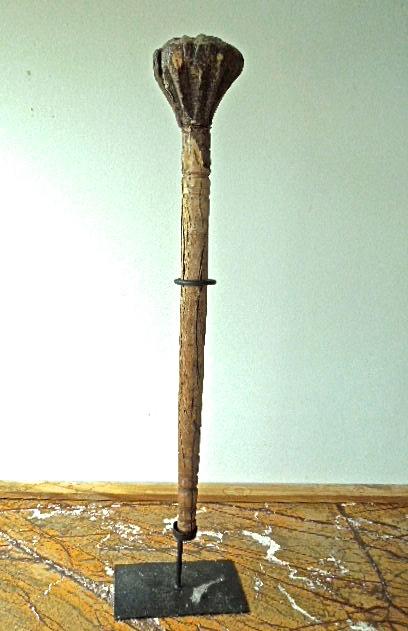 Lot 90: Large Antique Primitive Wood Masher Pestle  in Stand