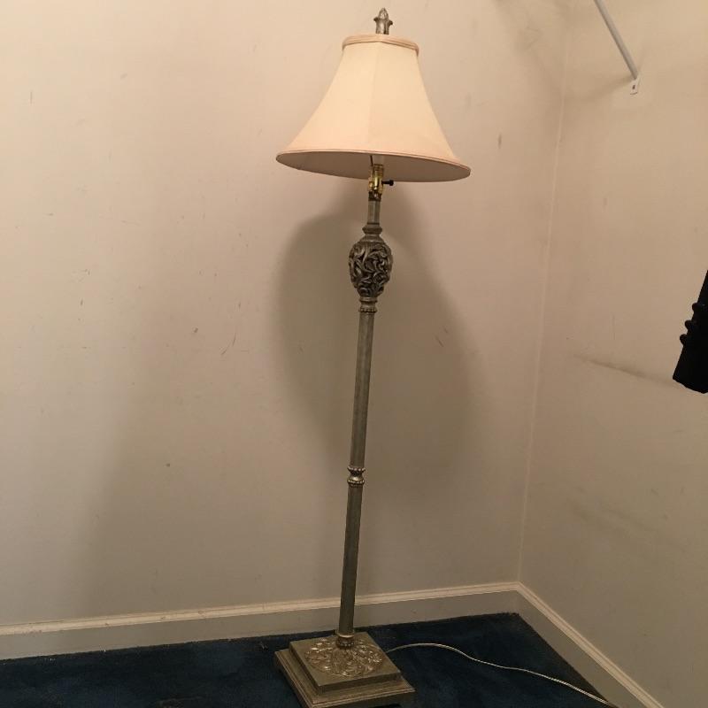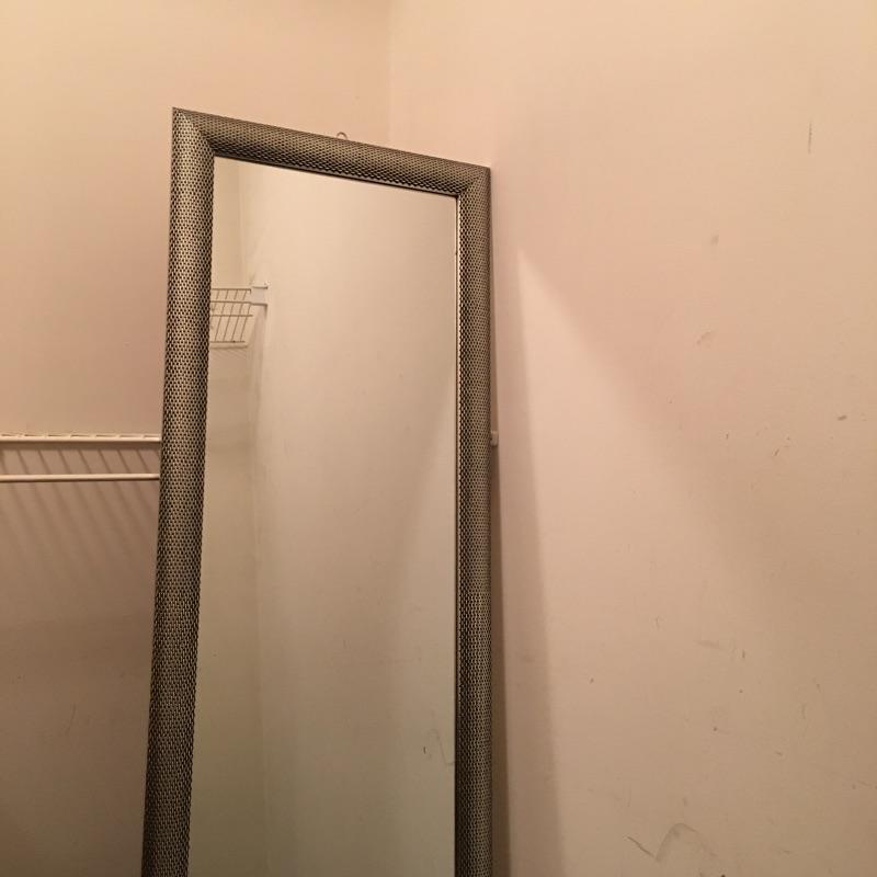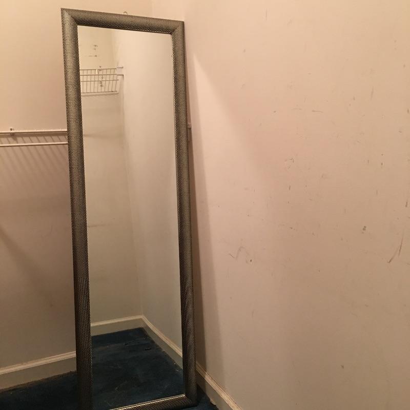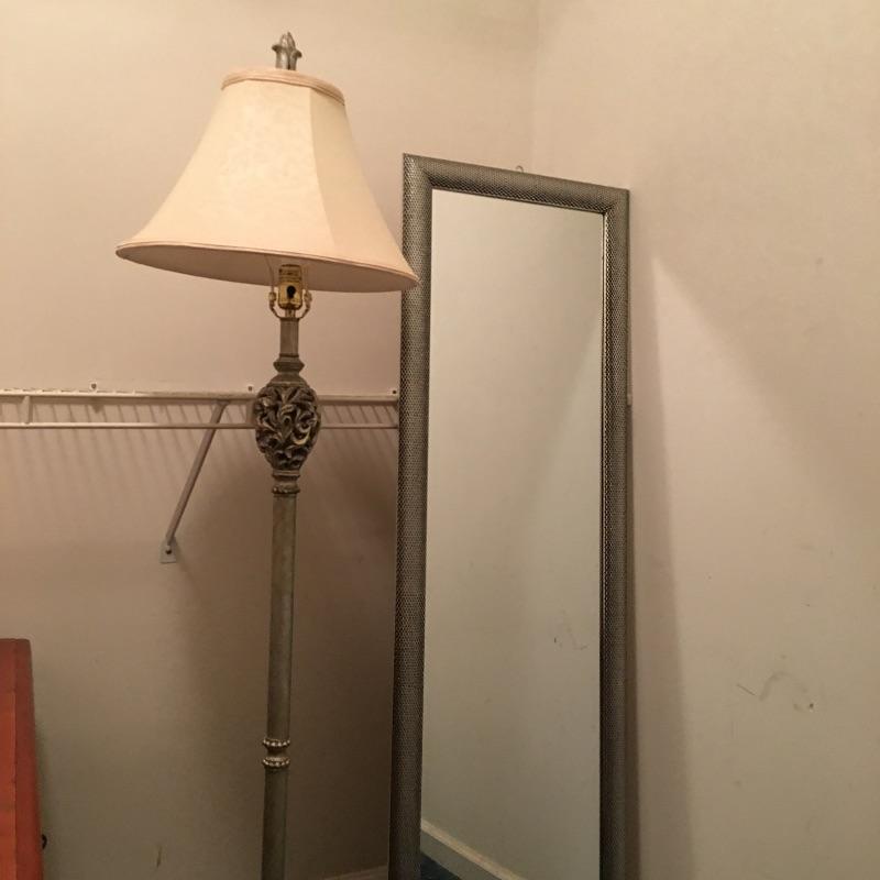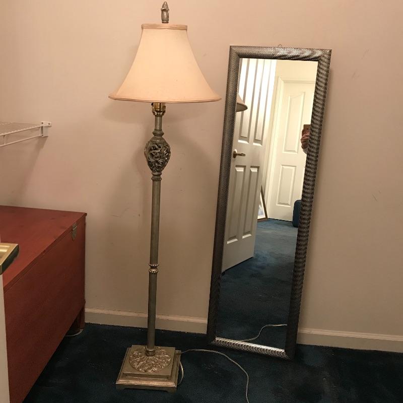 A great way to check out how you look with this mirror and metal floor lamp. Mirror measures 16.25” x 54.75”. Lamp worked when tested.