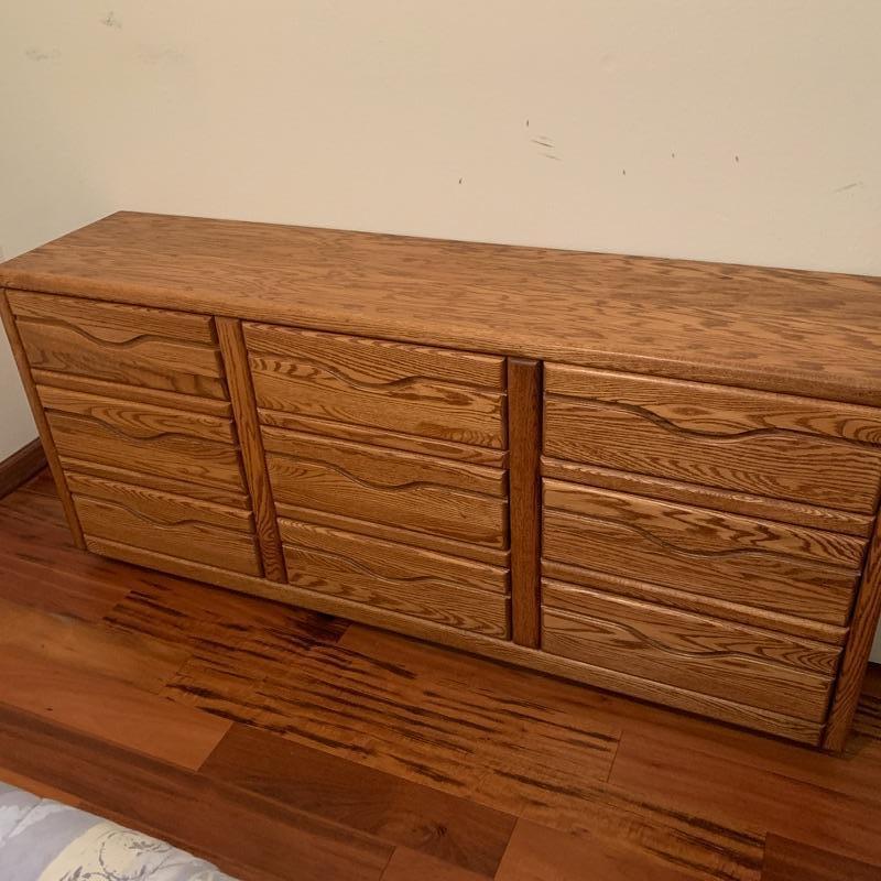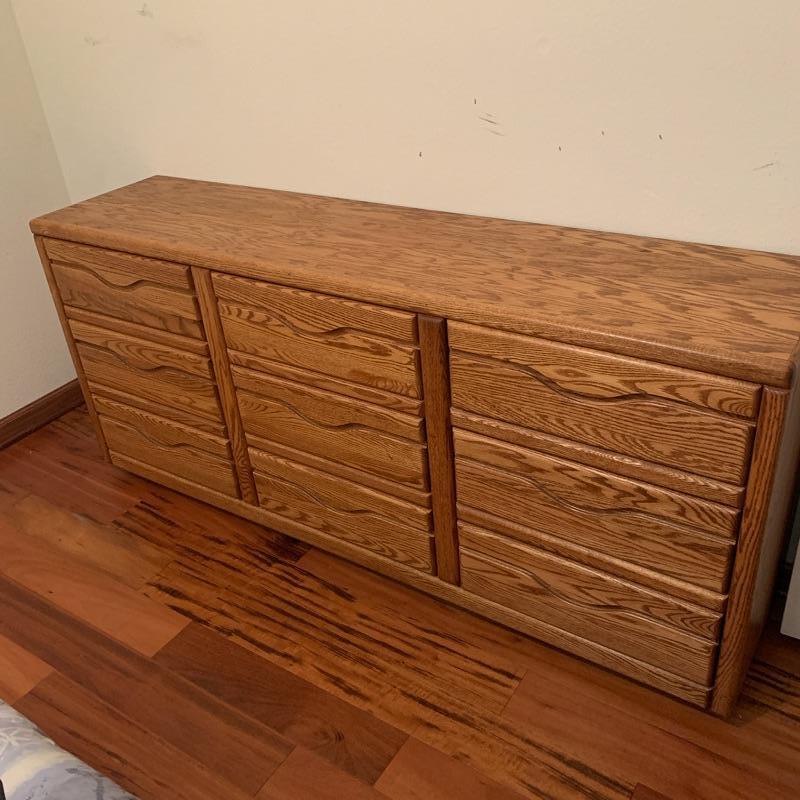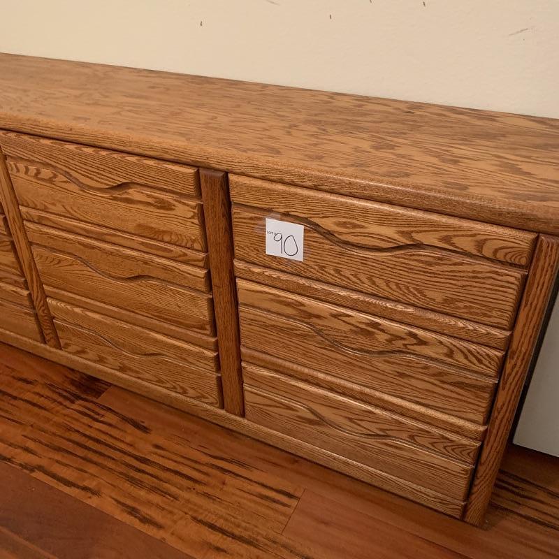 Oak Nine Drawer Dresser W 70" D 16.5" H31"