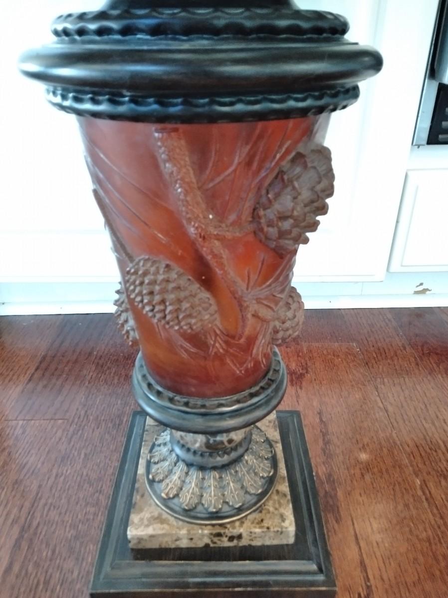 LOT 90 GLASS LAMP WITH RAISED PINECONES, MARBLE BASE AND SHADE (1) (W)
