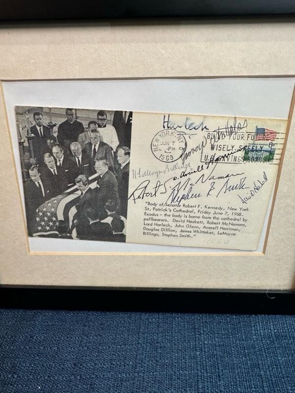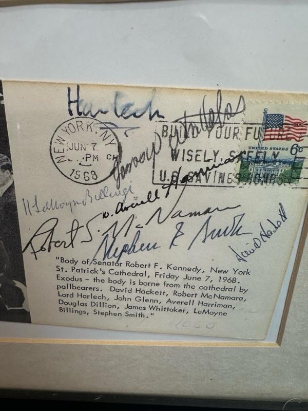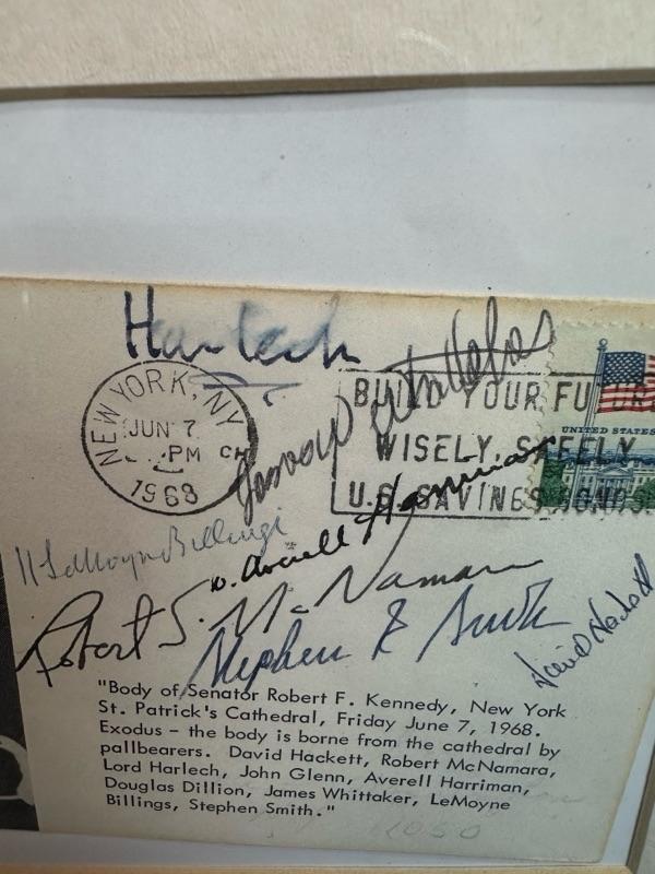Postcard of Robert F Kennedy’s funeral, signed by several of his pallbearers