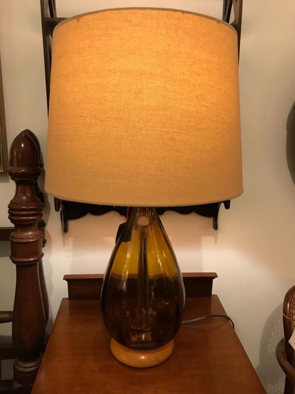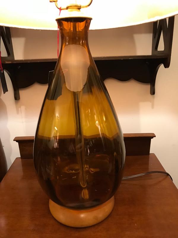Lot 90- RARE MCM Amber Optic Stripe Blenko Lamp