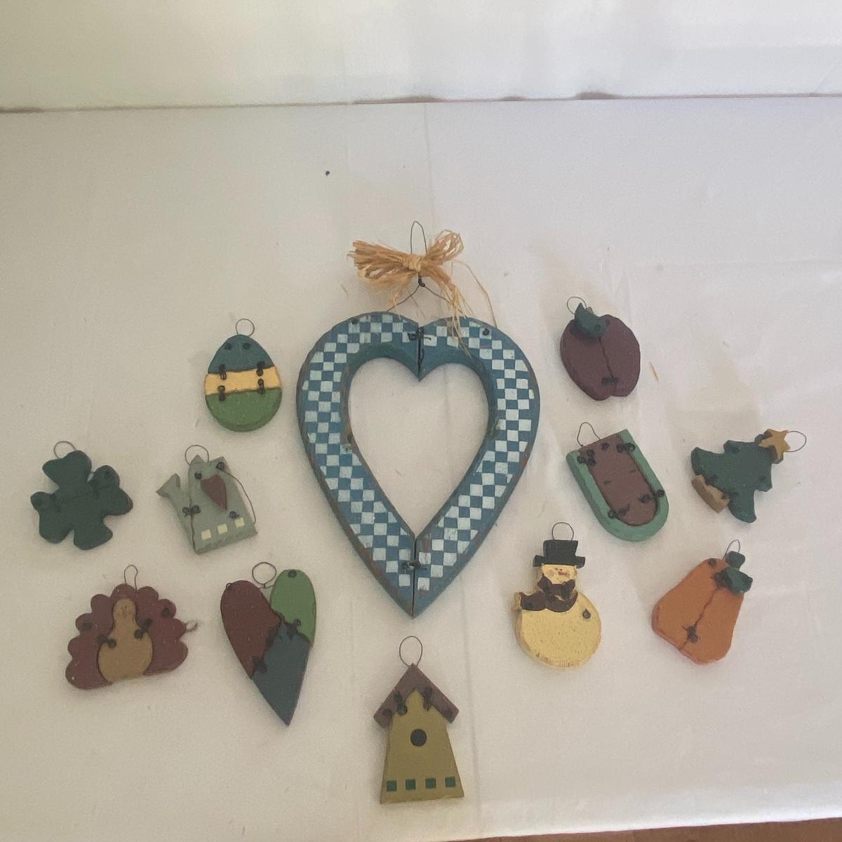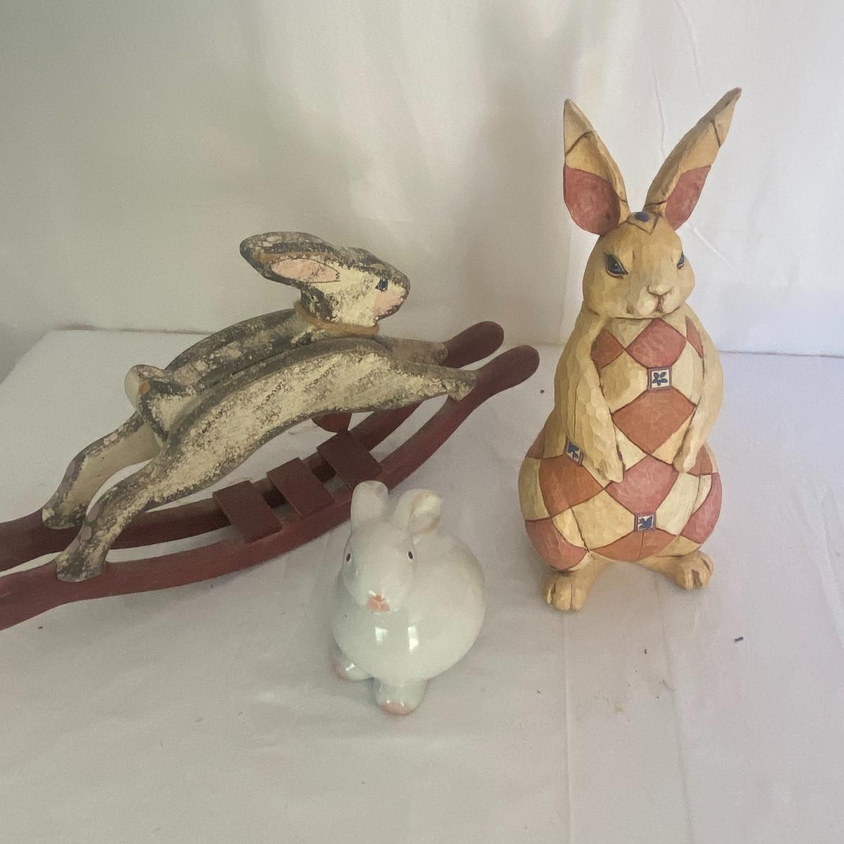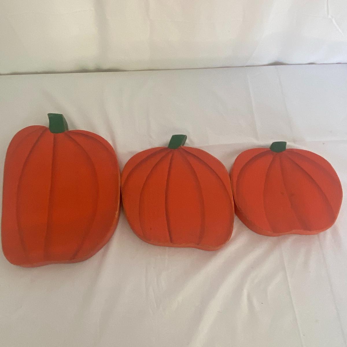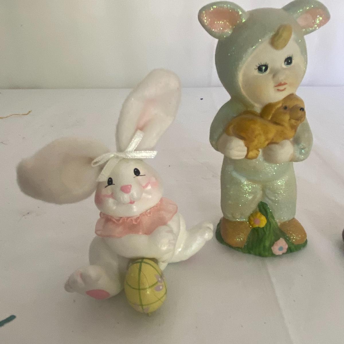 Large seasonal decor lot to have your space ready for multiple seasons! This lot primarily carters to the fall and spring seasons as well as the holidays Halloween and Easter. The shelf scarecrow sits 12” high. The tall bunny stand 16” tall. The largest wooden pumpkin has measurements of 12.5”x9”. Rocking bunny is 22” long. See photos for details. Local pickup only.