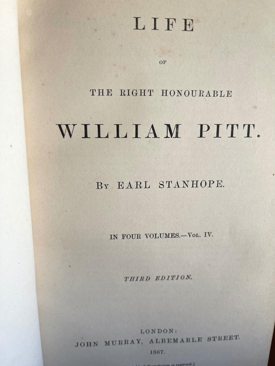 LOT 90 - The Life of William Pitt - Earl Stanhope - 4 Volumes - 1867