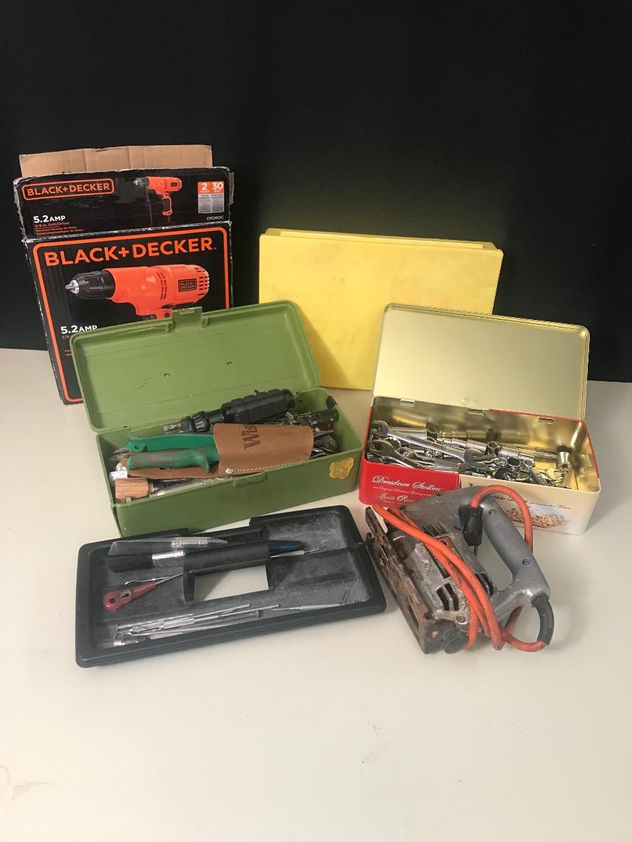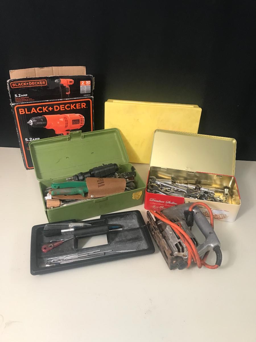 Collection Of Tools - Hand Tools & Power Tools - Black & Decker drill and jigsaw, both appear to be working. Please see all pictures as they are the best representation of the items. The pictures show condition, measurements if taken, and what is included in the lot. Due to the large amount that we photograph and the time frame, we are not always able to take measurements. All items unless noted, are pre-owned and have been used. If you purchased furniture, you must bring help. We do not allow one person to carry large furniture out on their own. Bring help, tools and a truck for the safety of our client’s homes, and your personal safety. Company policy. Thank you.