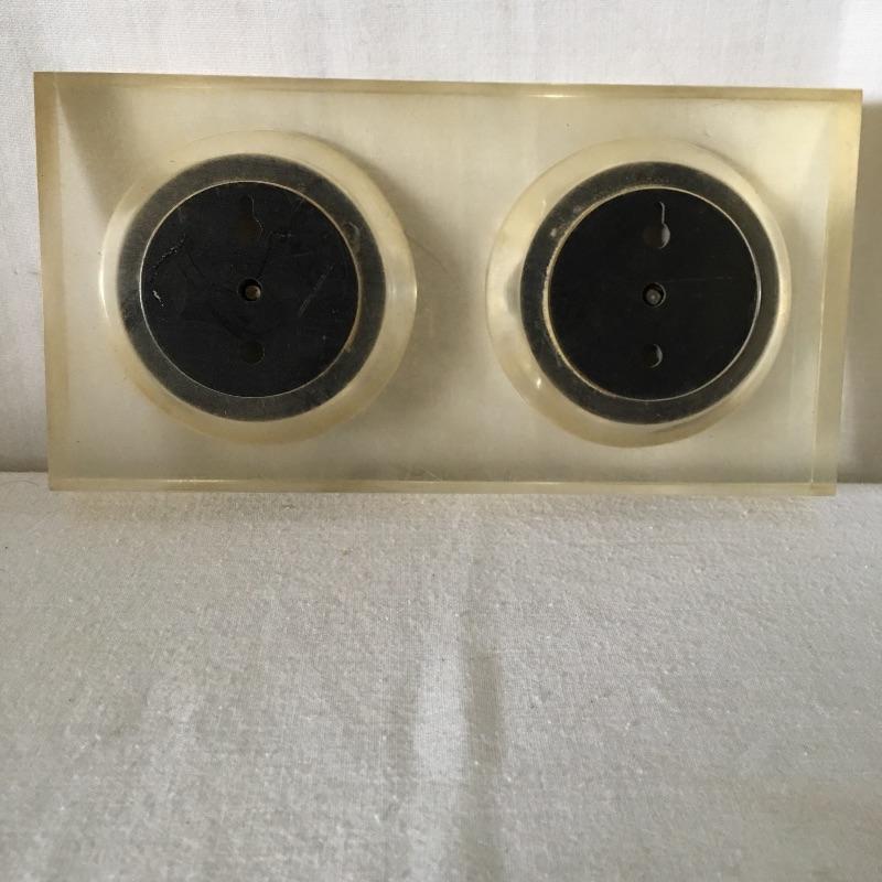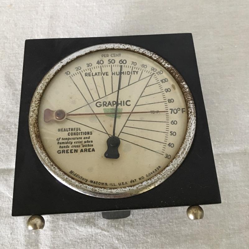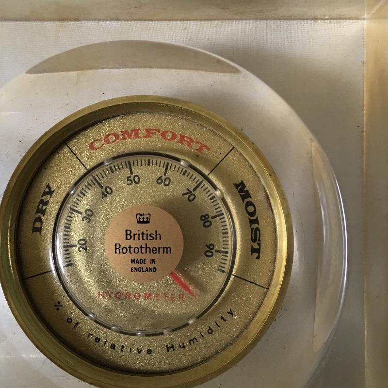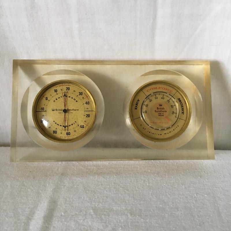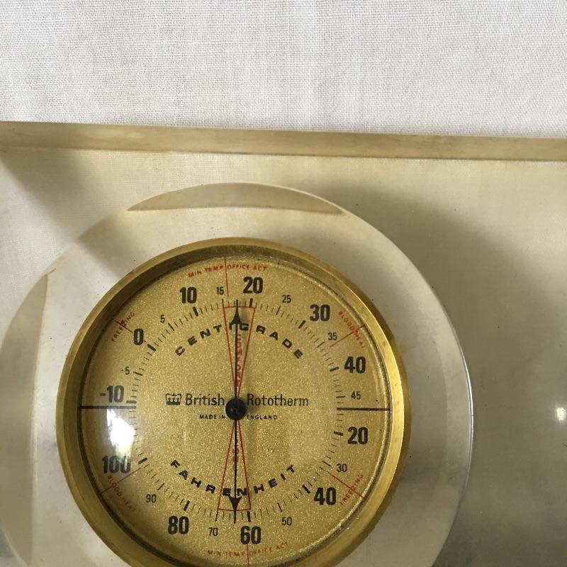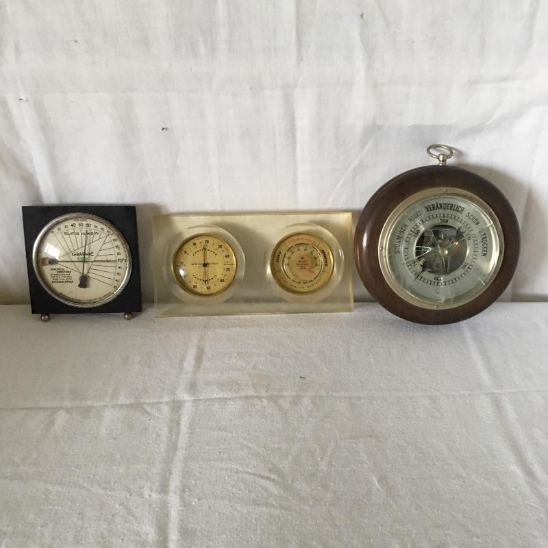 Trio of barometers includes Luftt barometer, British Rototherm barometer and thermometer in plexiglass and a Middleburg metal barometer and thermometer. Luftt barometer has cracked glass, see pictures. Check the weather before you leave the house with this’s cool vintage lot.