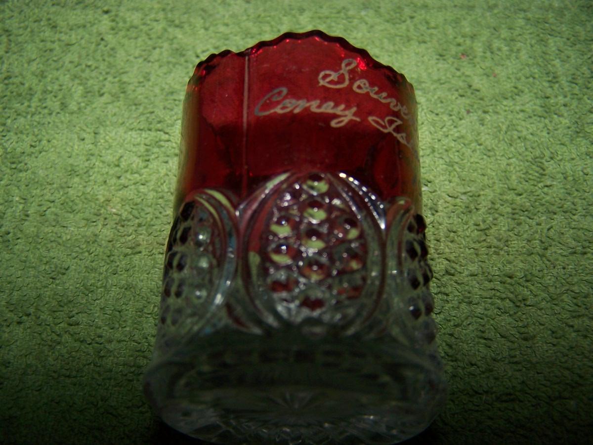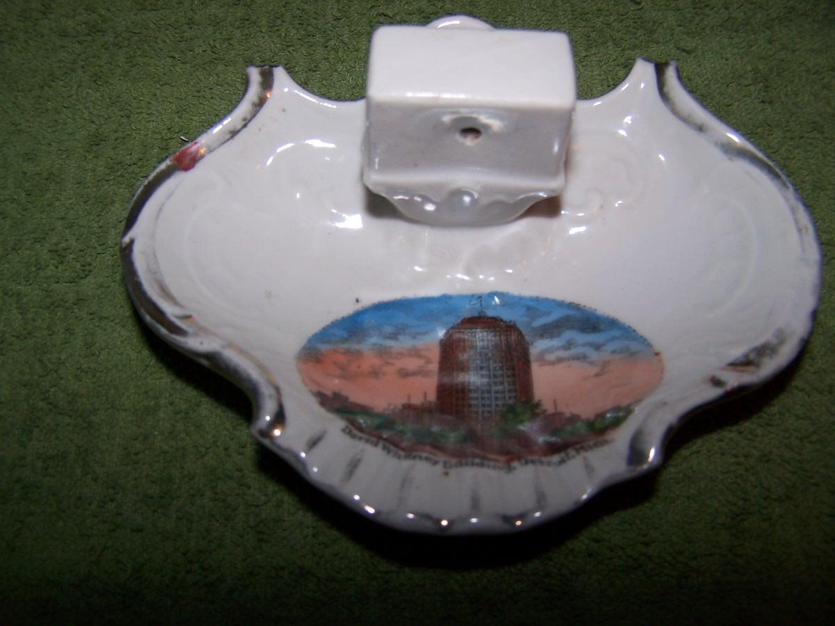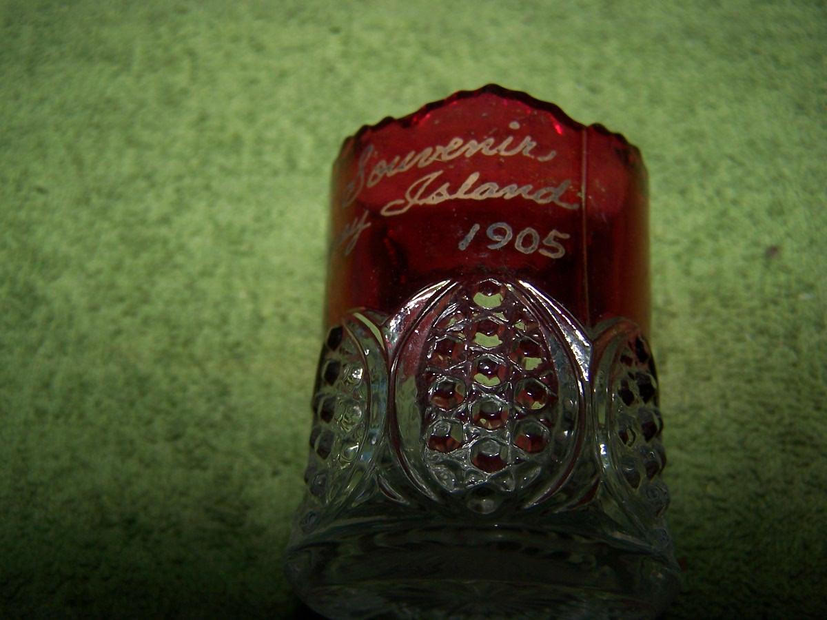 THESE ARE WONDERFUL UNIQUE VINTAGE US SOUVENIRS!!! MATCH HOLDER IS FROM DETROIT, AND THE RUBY GLASS TOOTHPICK HOLDER IS CONEY ISLAND-1905,-IS 2 1/8'' TALL. LIGHT WEAR...