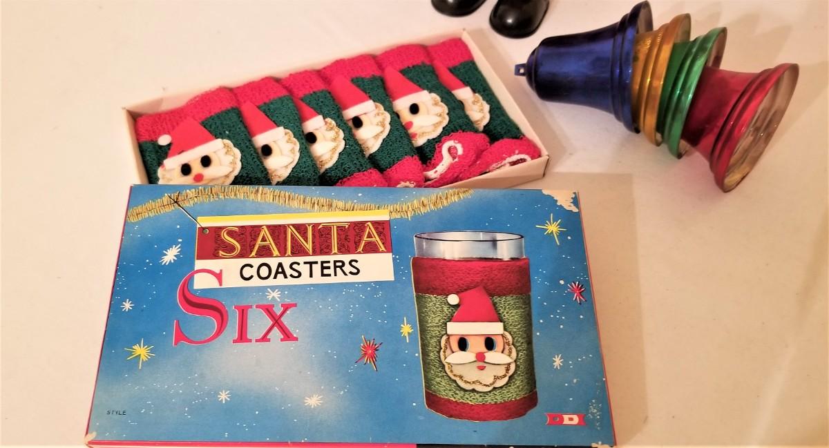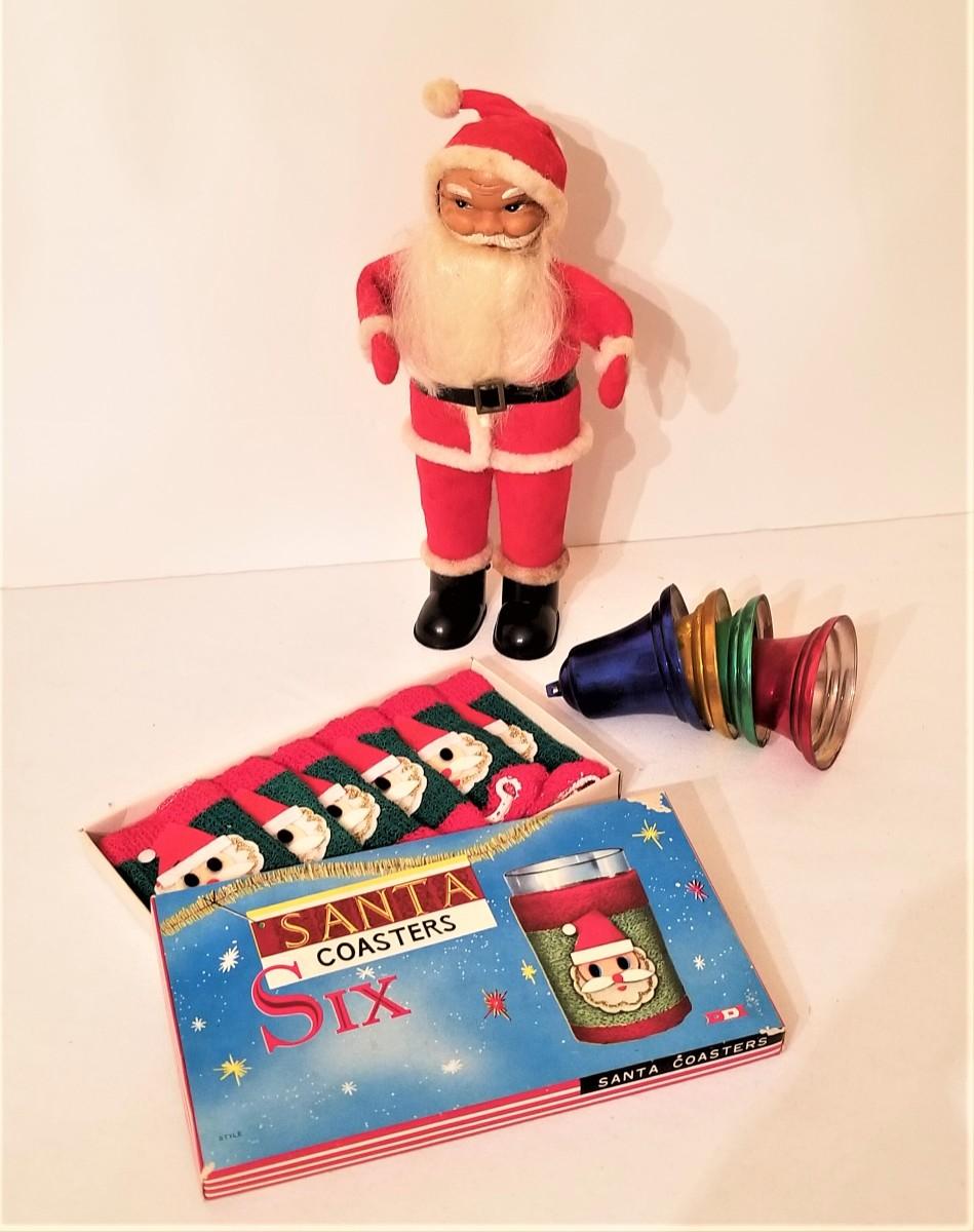 Lot #90  Vintage Christmas Lot - Santa, Coasters, Bells