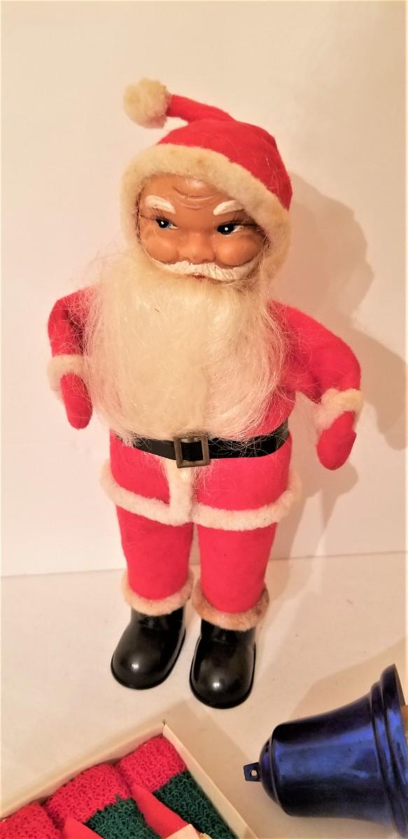 You get all you see here - vintage standing Santa, four vintage bell ornaments, and a set of vintage Christmas coaster still in original box (very kitschy). Santa is 9" tall. All in vintage condition.
