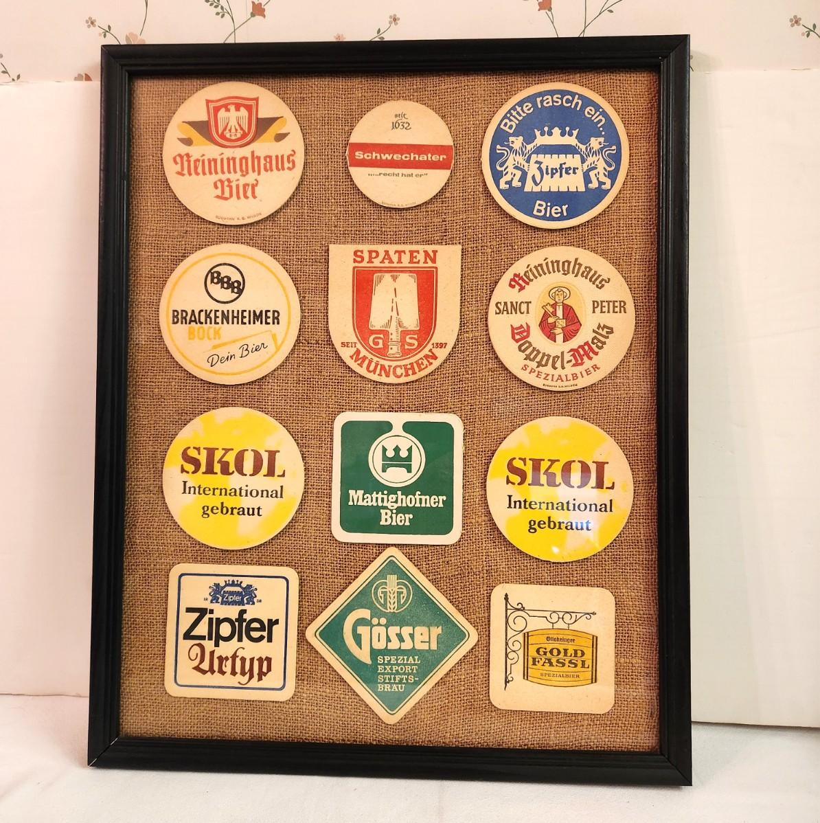 Lot #90 Vintage German Beer Coasters in Frame - all original