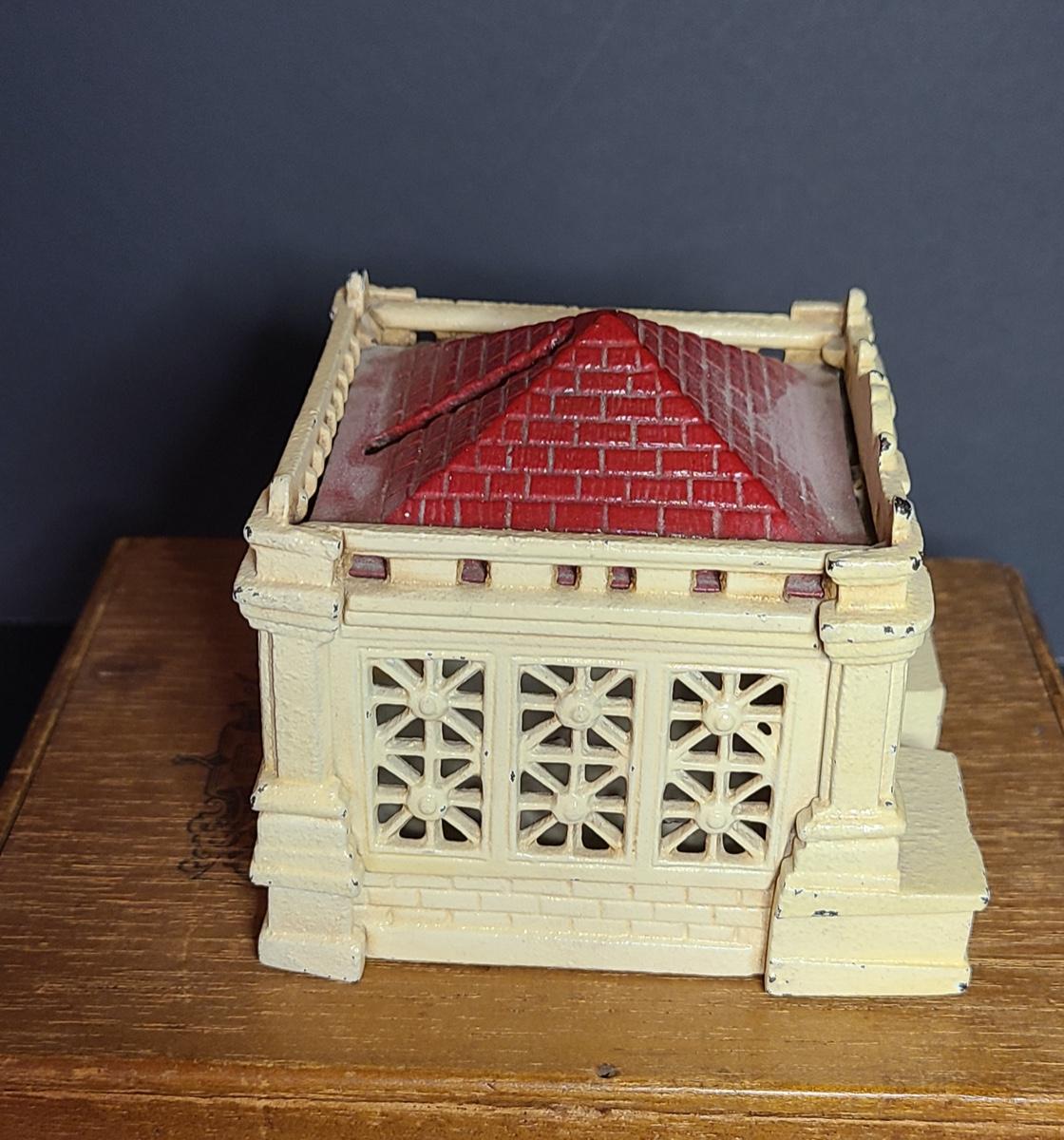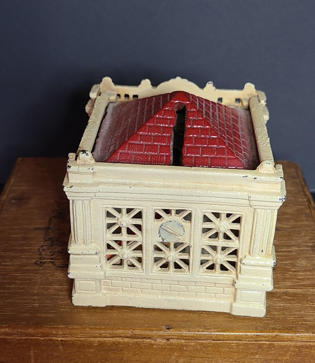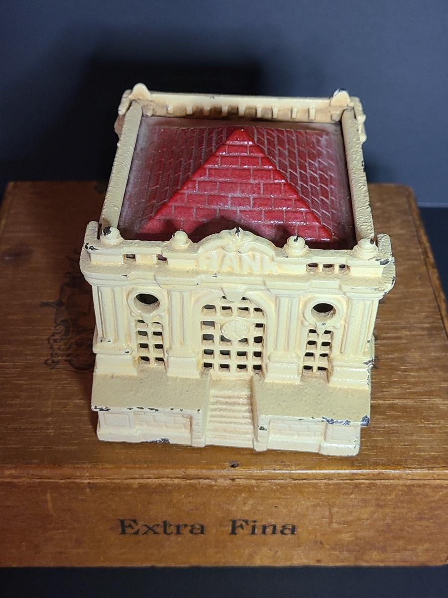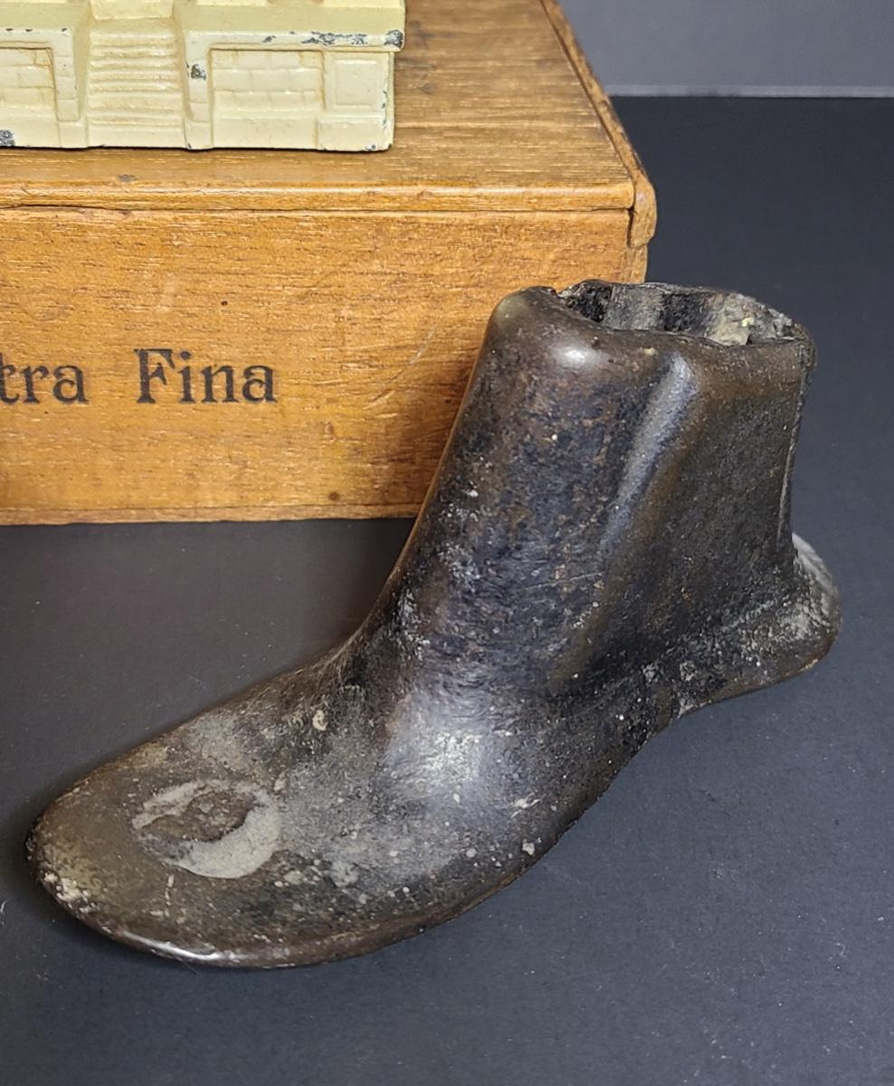 Lot 90: Vintage Metal Bank, Cast Iron/Shoe, and Wood Cigar Box.