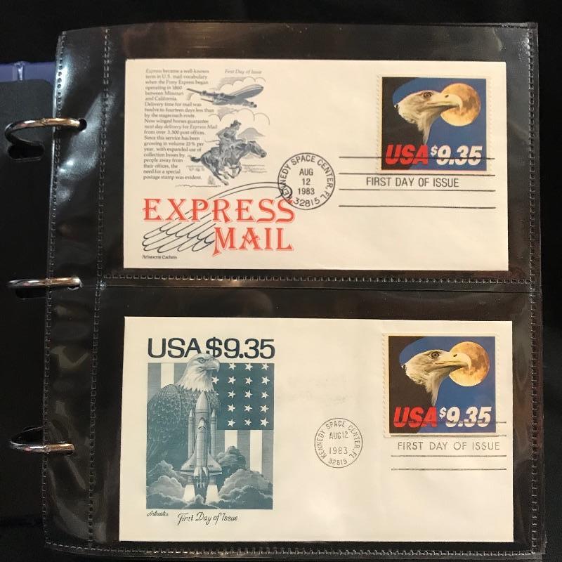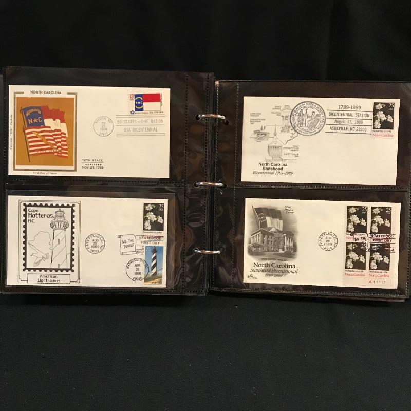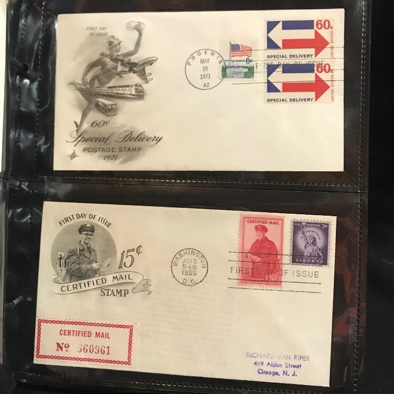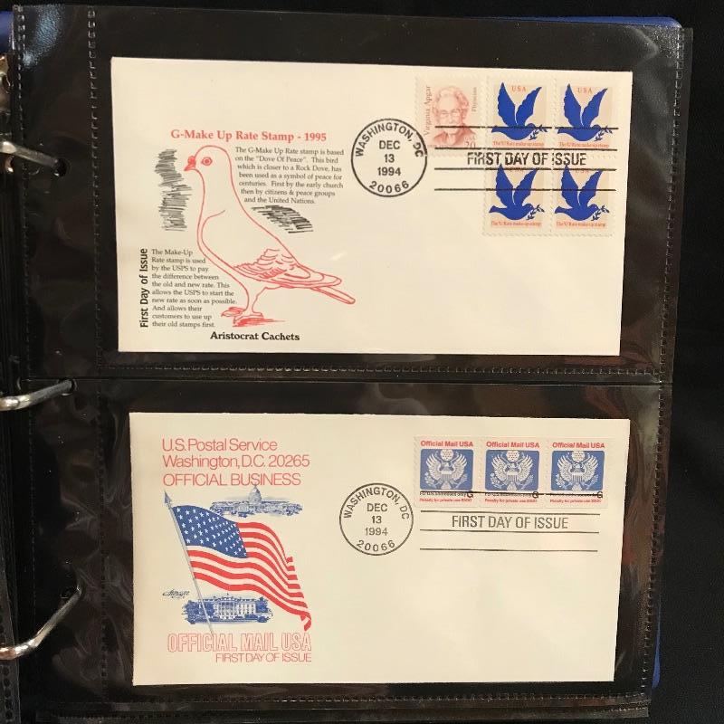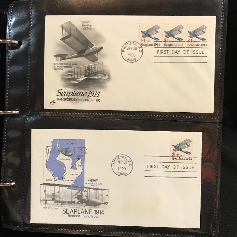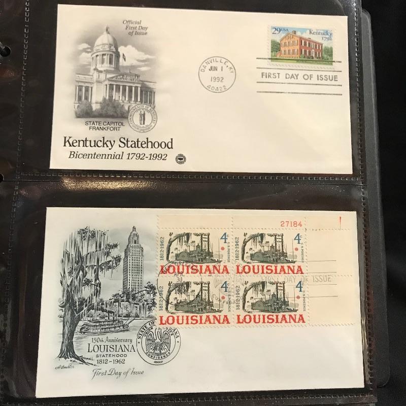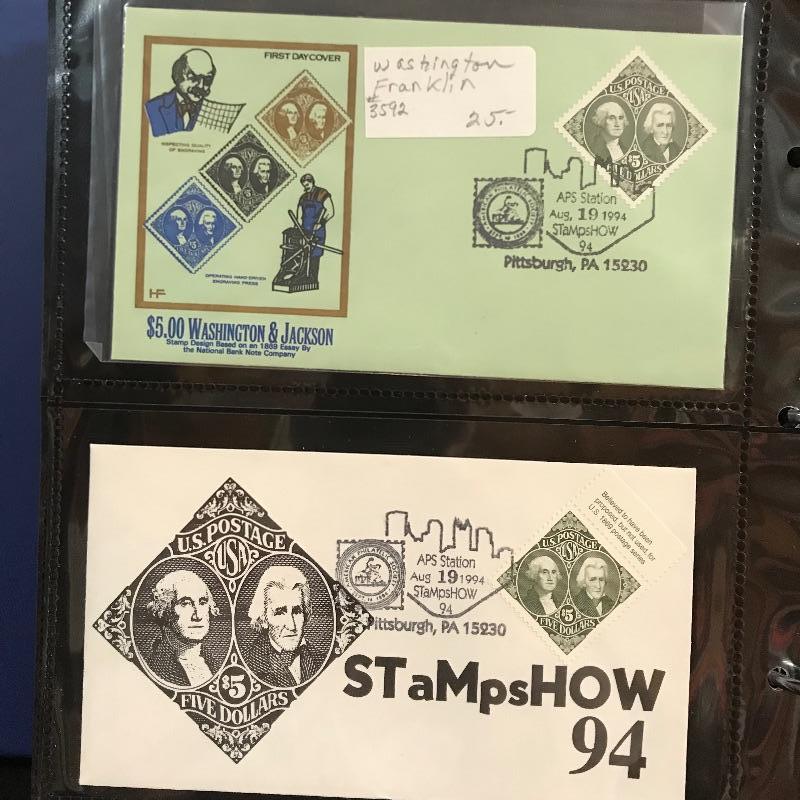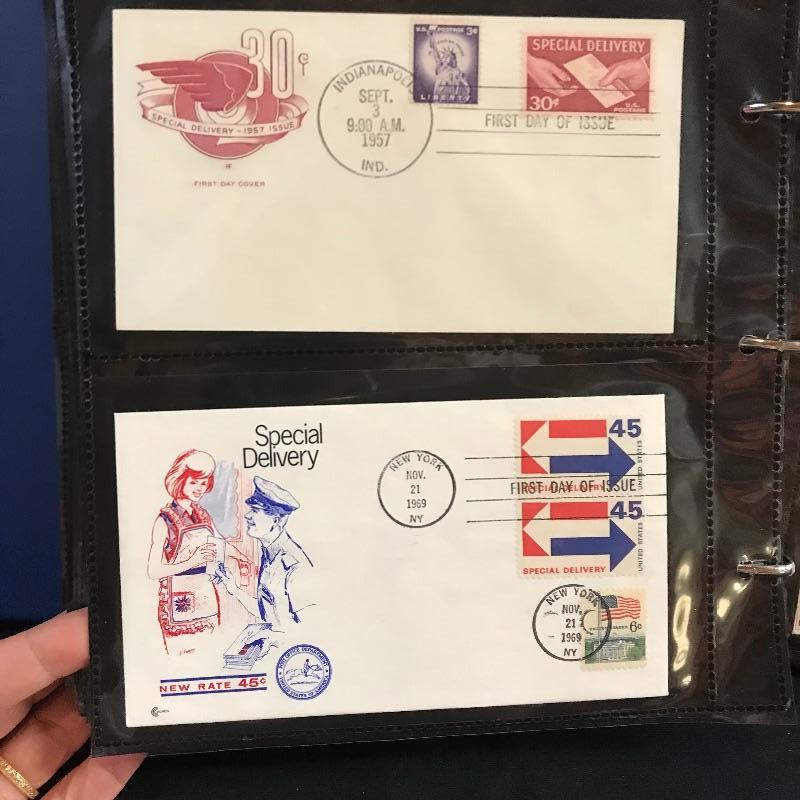 Wow. There’s a lot here. Ten $5 Washington Franklins, a plethora of historical 1st day covers dating back to mid 1900s. Quite a few of first day covers appear to be numbered and signed. You’ll find some in the mix with extra care taken to wrap in paper before being placed in SuperSafe sleeves. Genres include aviation, US history, Olympics, famous Americans, wildlife, statehood and so much more! Three mostly full binders plus a couple special loose 1st Day Covers. Lots of valuable and sentimental pieces here.