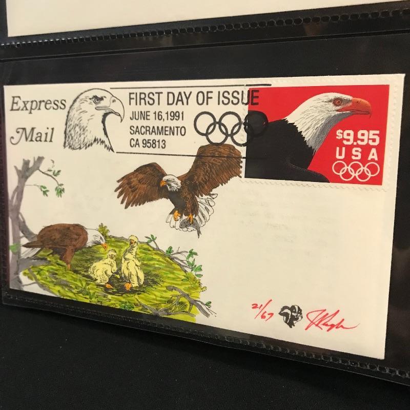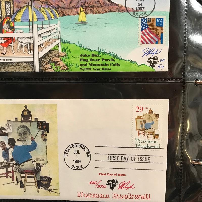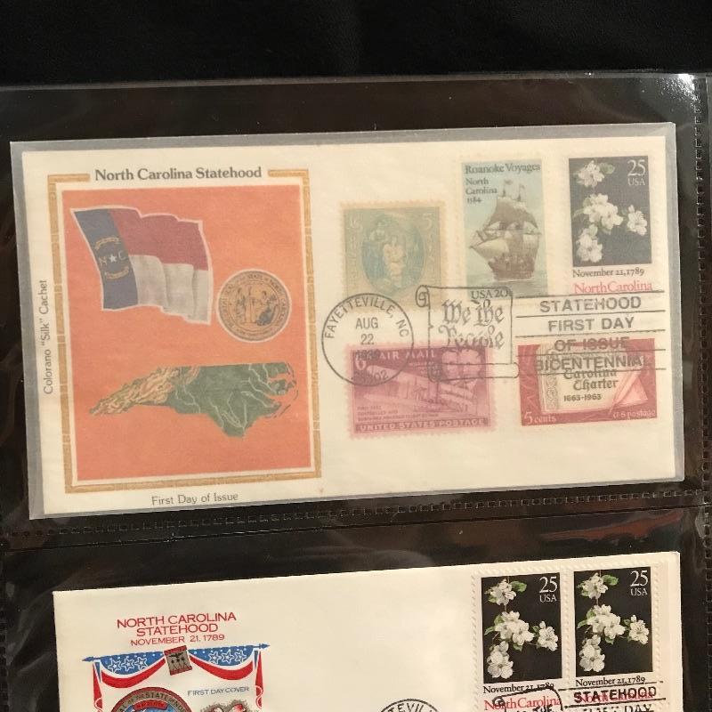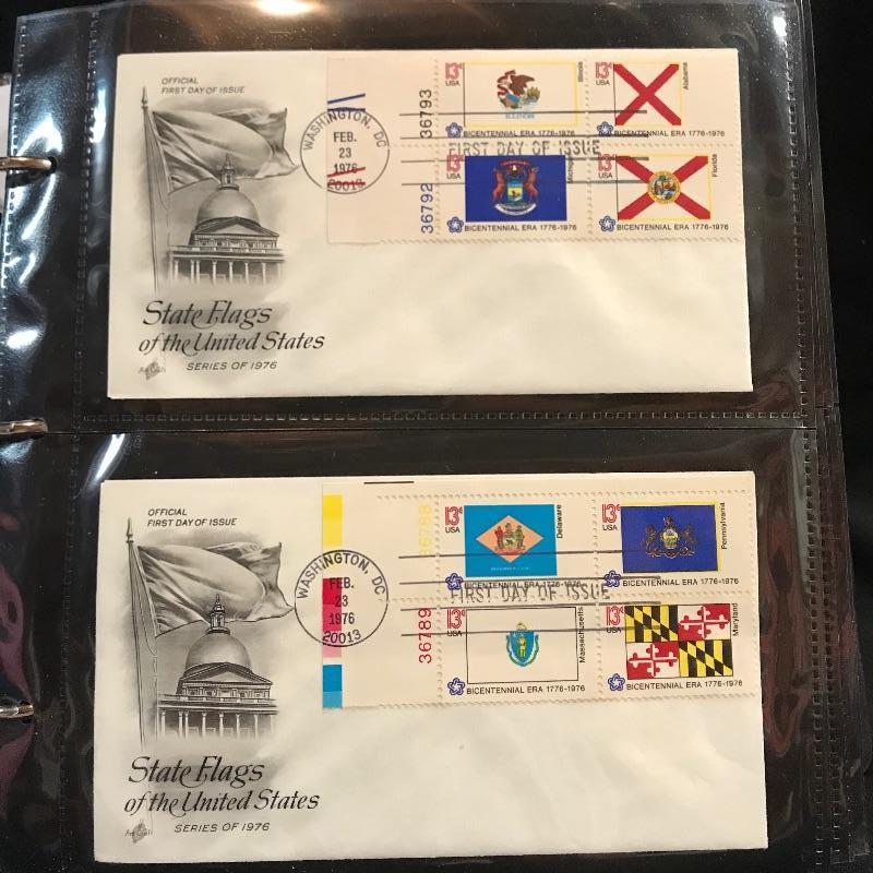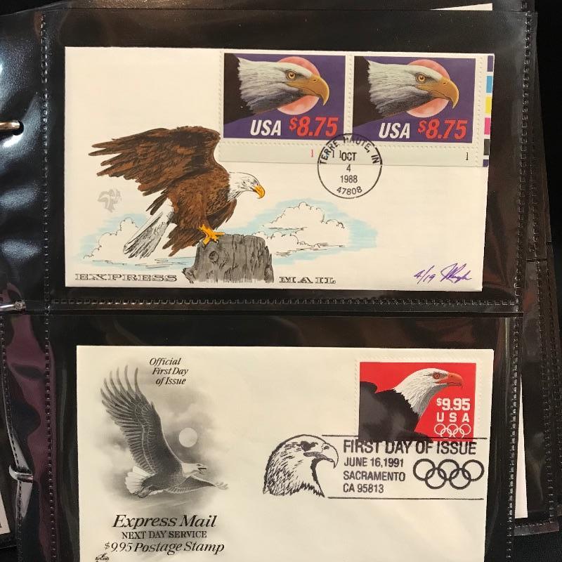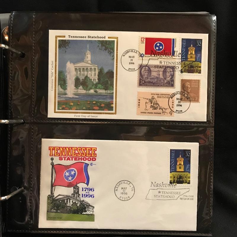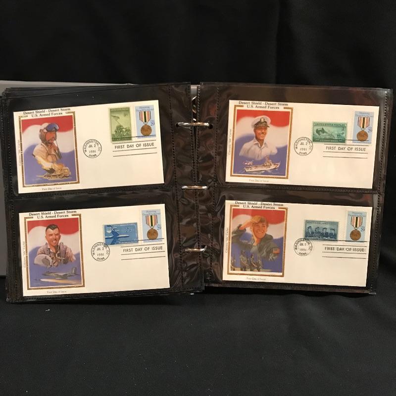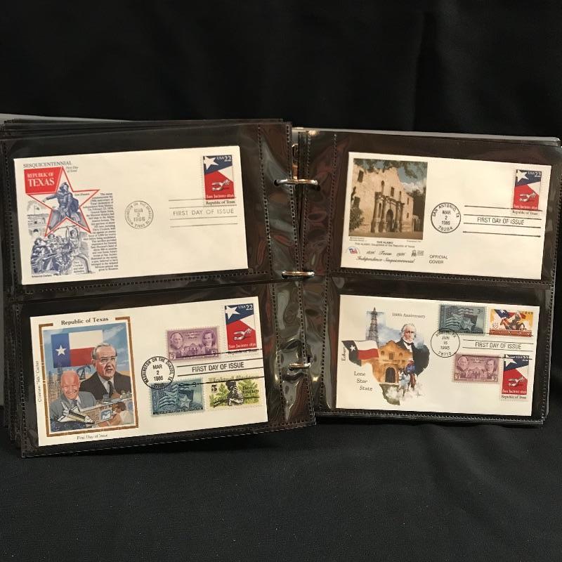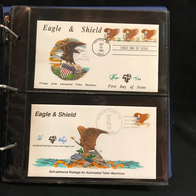 Wow. There’s a lot here. Ten $5 Washington Franklins, a plethora of historical 1st day covers dating back to mid 1900s. Quite a few of first day covers appear to be numbered and signed. You’ll find some in the mix with extra care taken to wrap in paper before being placed in SuperSafe sleeves. Genres include aviation, US history, Olympics, famous Americans, wildlife, statehood and so much more! Three mostly full binders plus a couple special loose 1st Day Covers. Lots of valuable and sentimental pieces here.