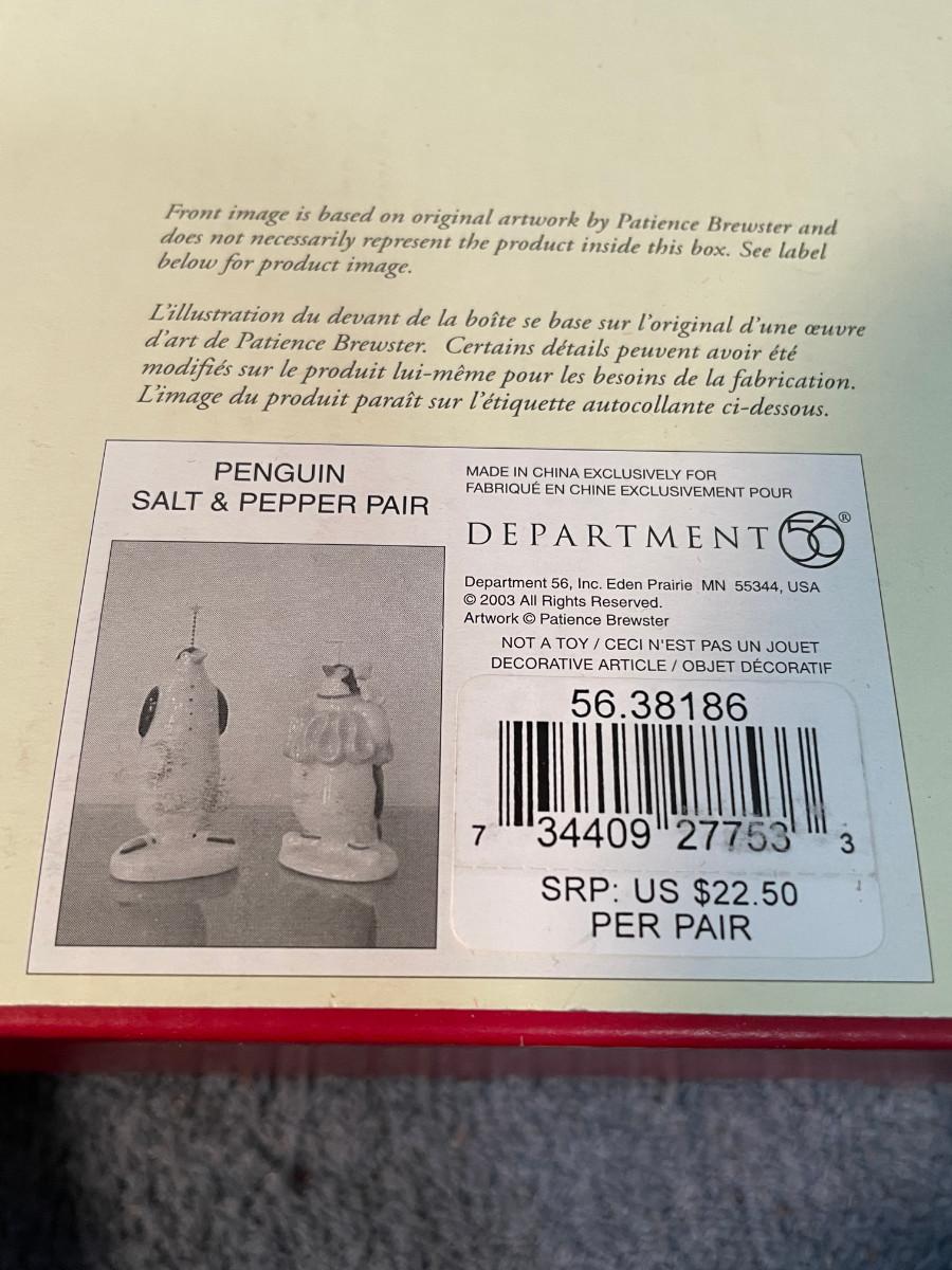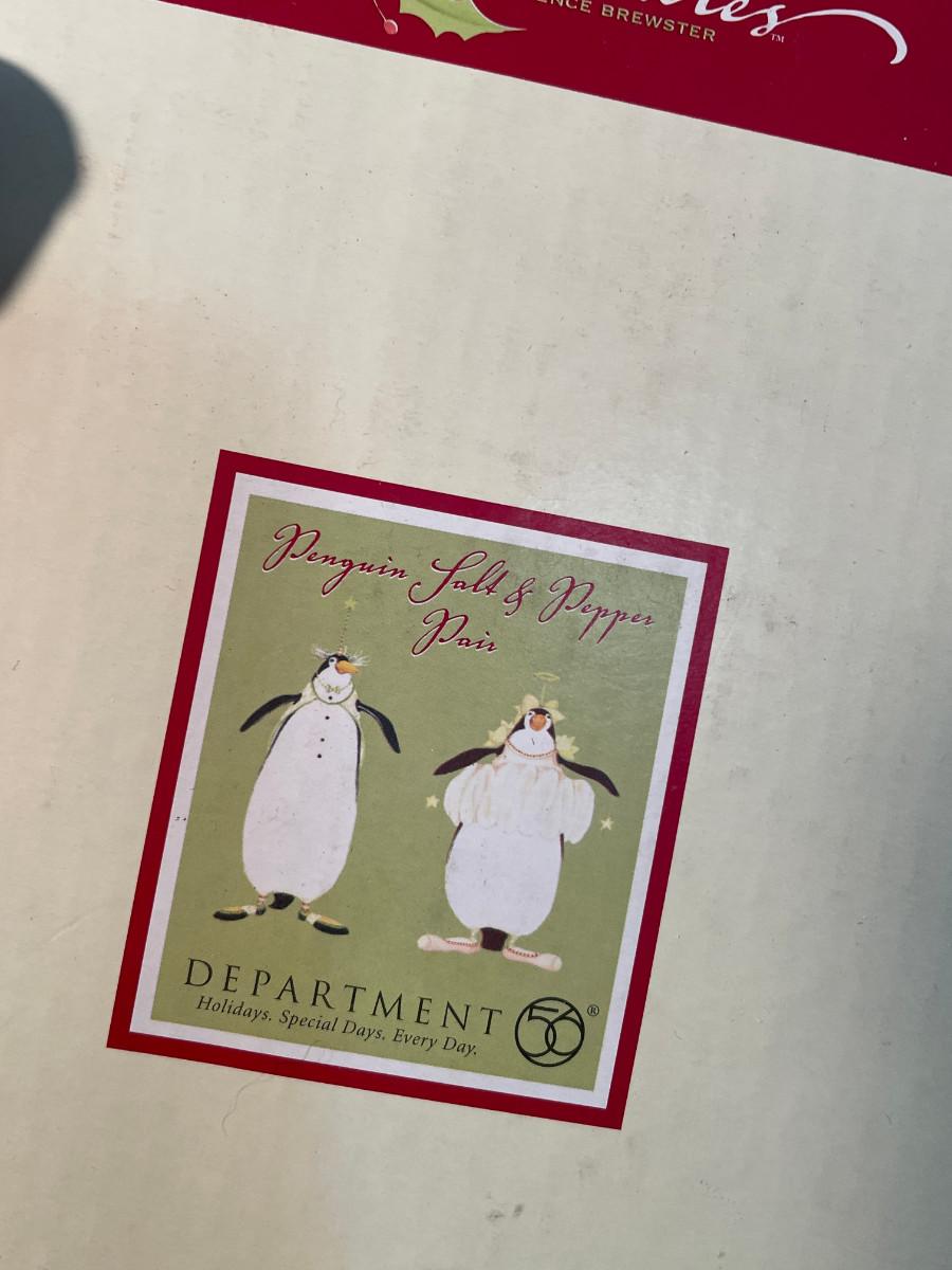 THESE ARE WONDERFUL COLLECTABLE DEPT 56 CHRISTMAS PENGUIN SHAKERS in BOX!!! 5'' TALL.. BOX SOME LIGHT WEAR. PENGUINS ARE UNUSED..