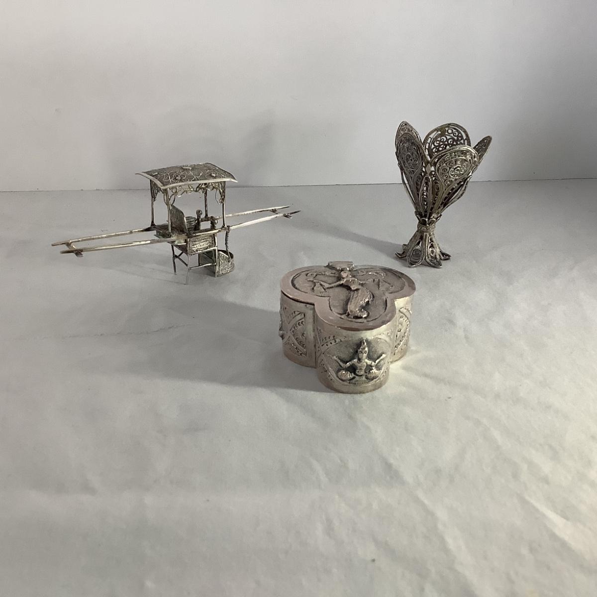 Lot 9002  Three Miniature Asian Inspired Silver Pieces