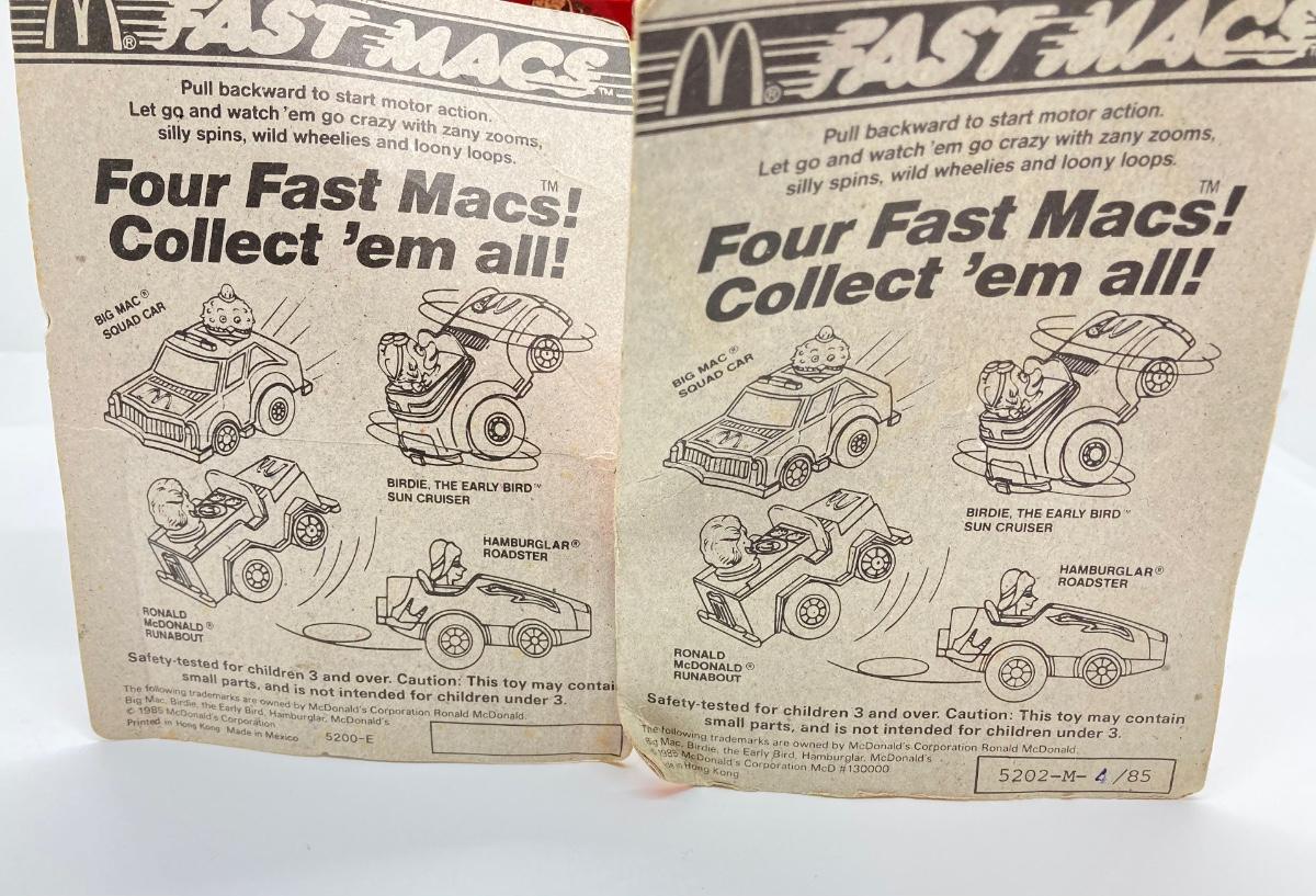 LOT 23: Popeye and McDonalds Fast Macs Cars in Original Packages