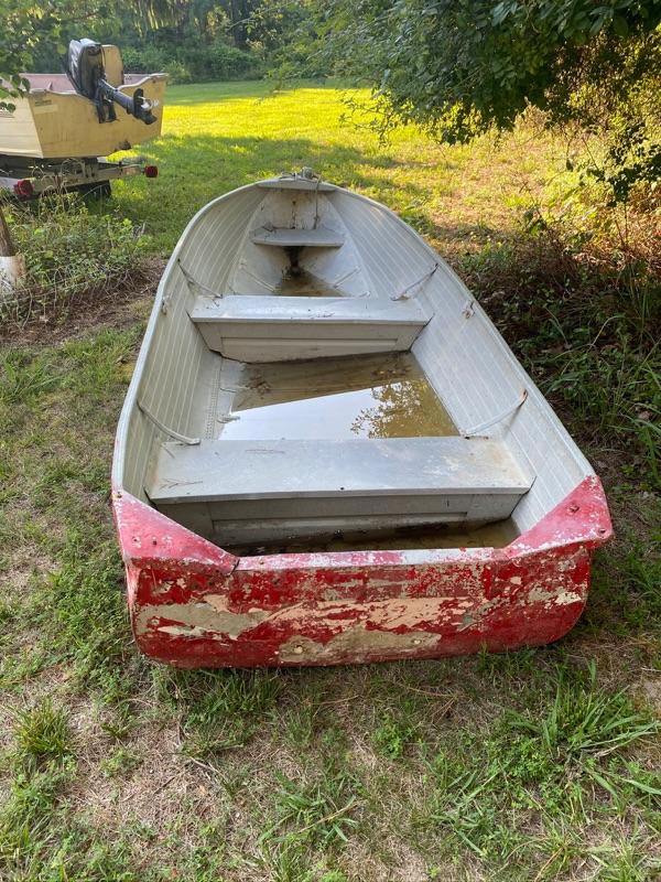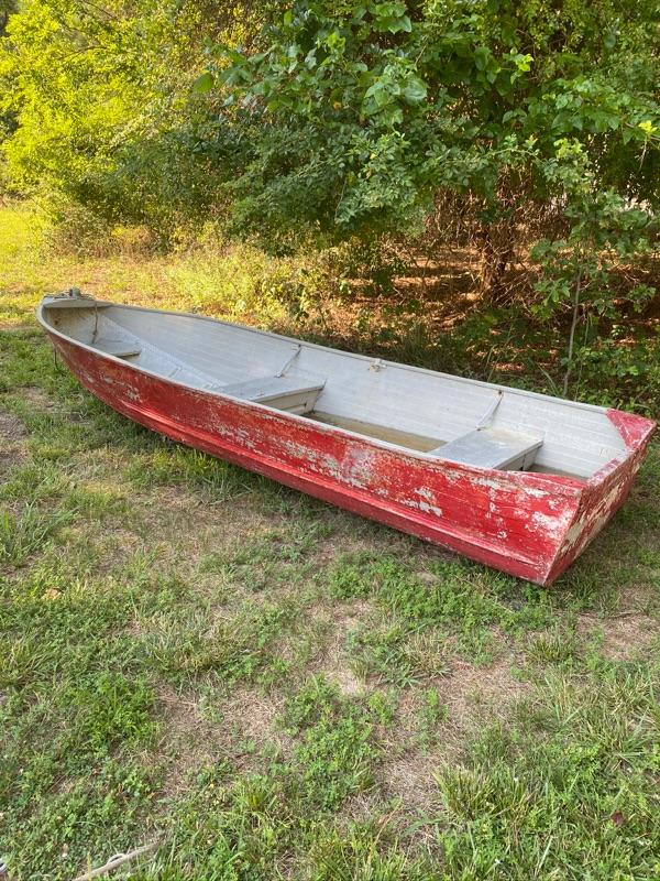 Red Aluminum Boat needs new paint. Measures 13’6”