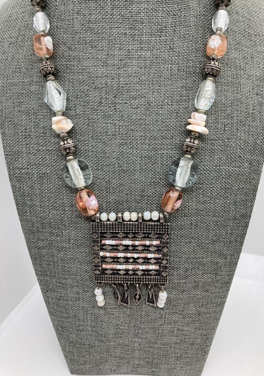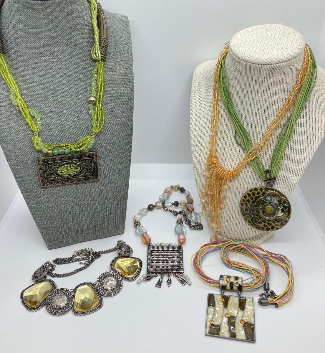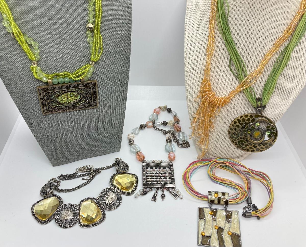 LOT 92: Chunky Necklaces - Square Shaped Pendants and More