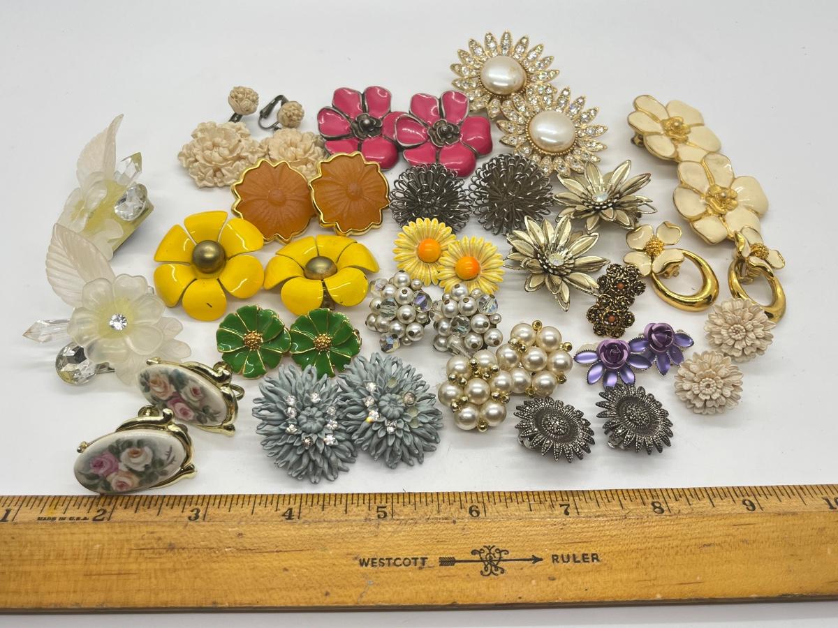 LOT 116: Floral Costume Clip-on/Screwback Earrings