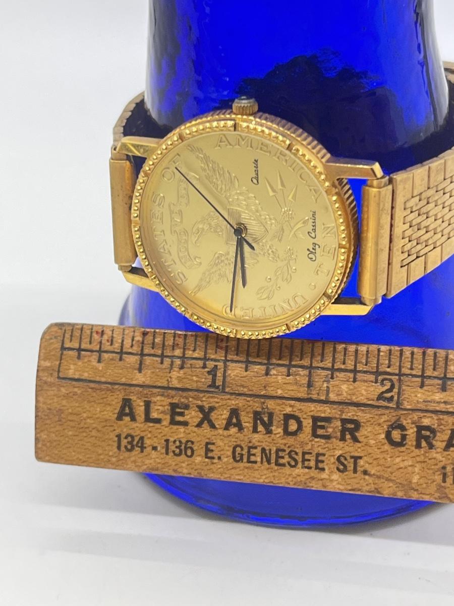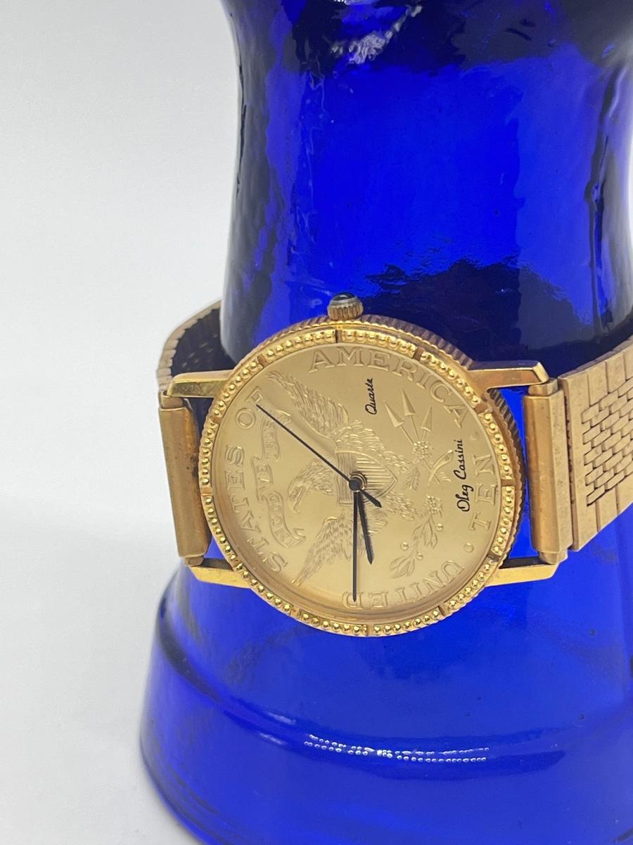 LOT 133: Oleg Cassini Gold Tone $10 Coin Men's Watch