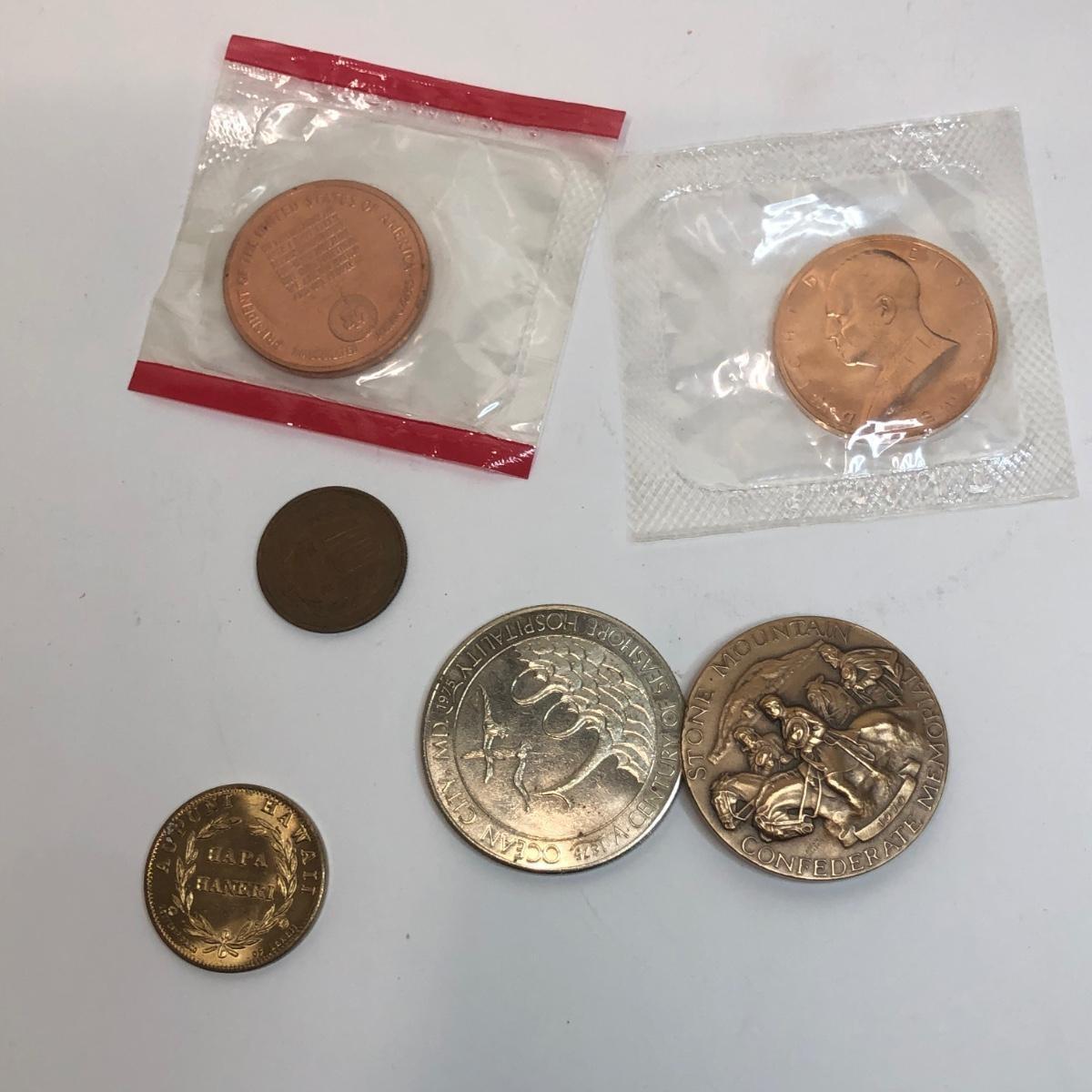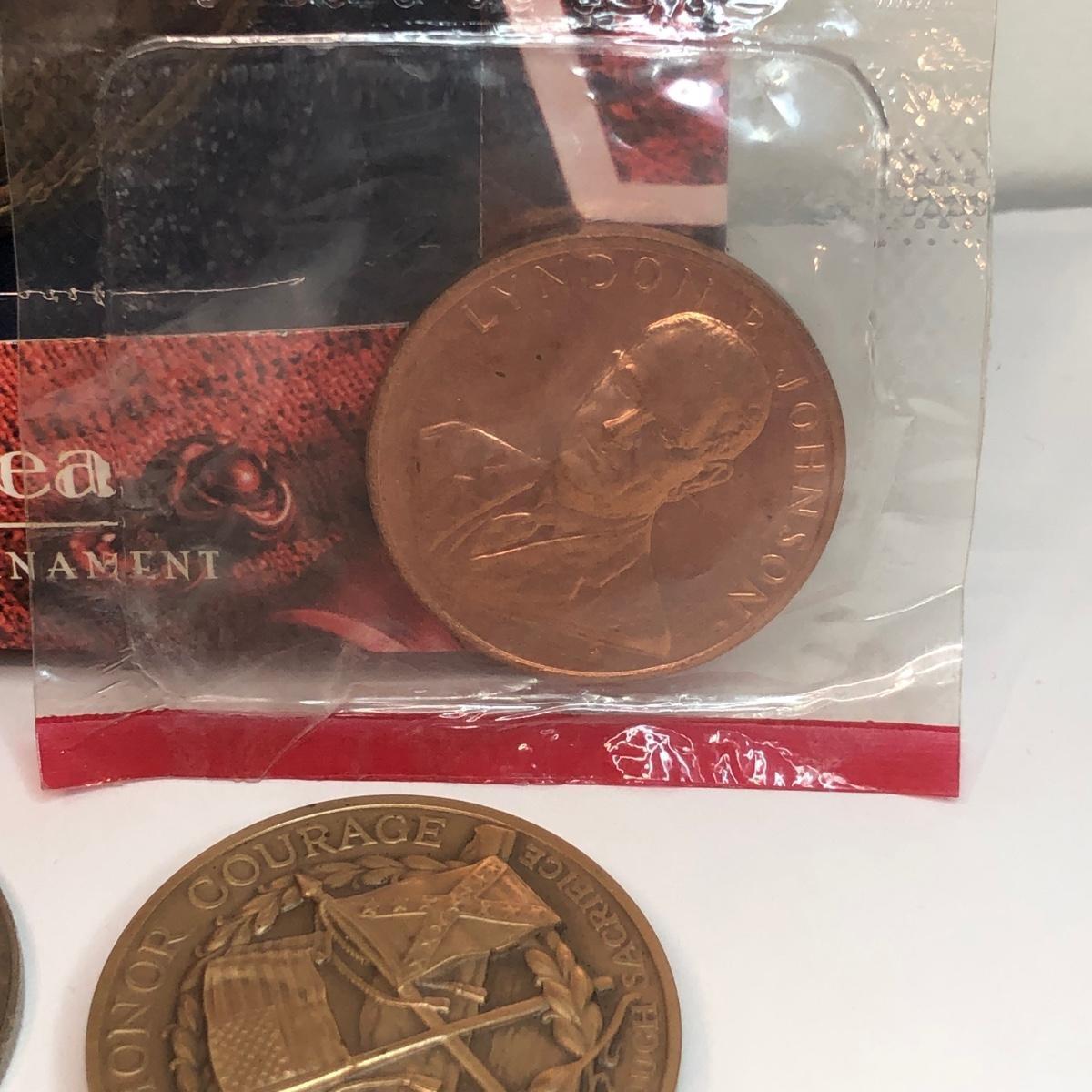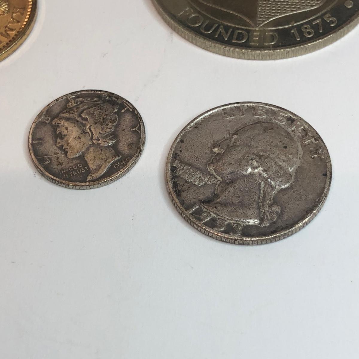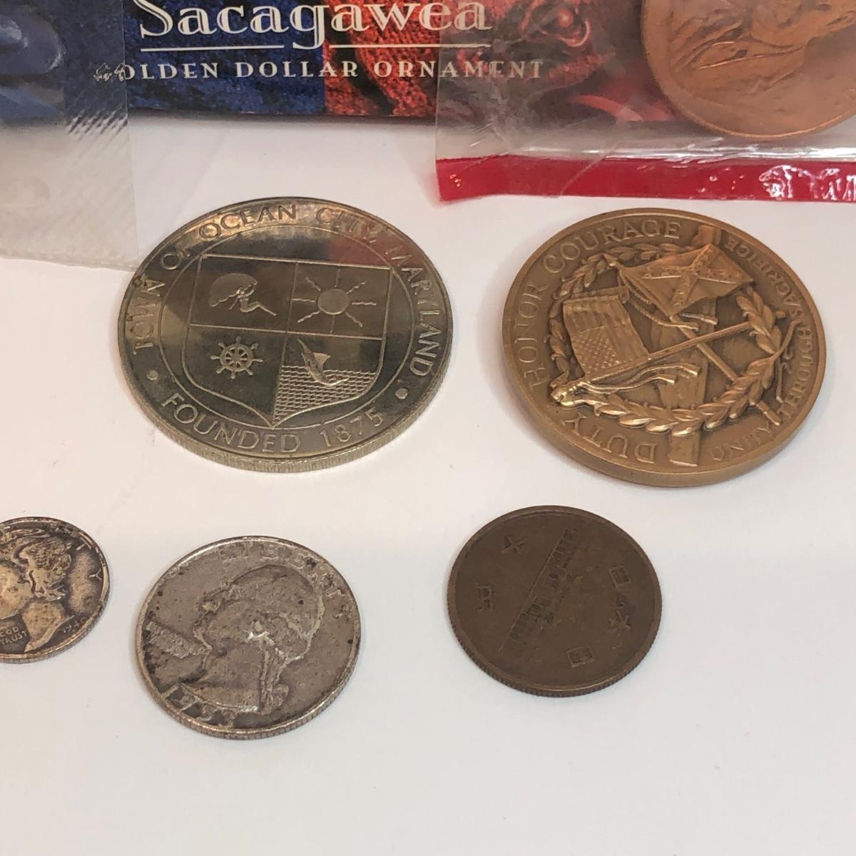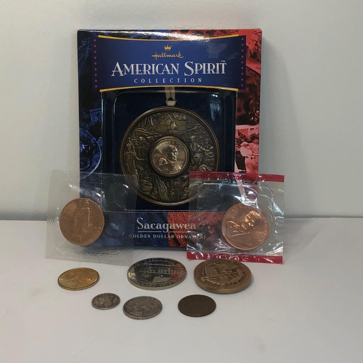 LOT 159: Coin Collection - Silver US Coins, Copper President Coins, Sacagawea Golden Dollar Ornament & More