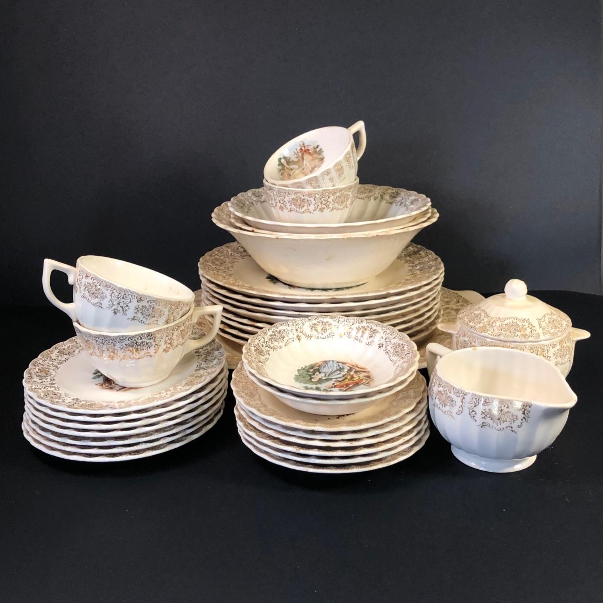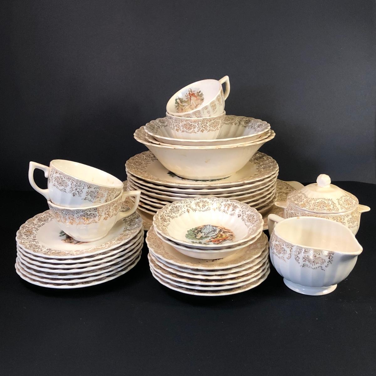 LOT 4M: Sebring Pottery China Set w/ 22K Gold Accents