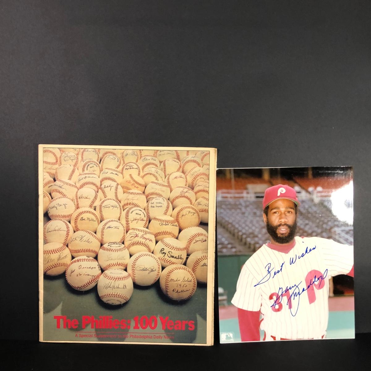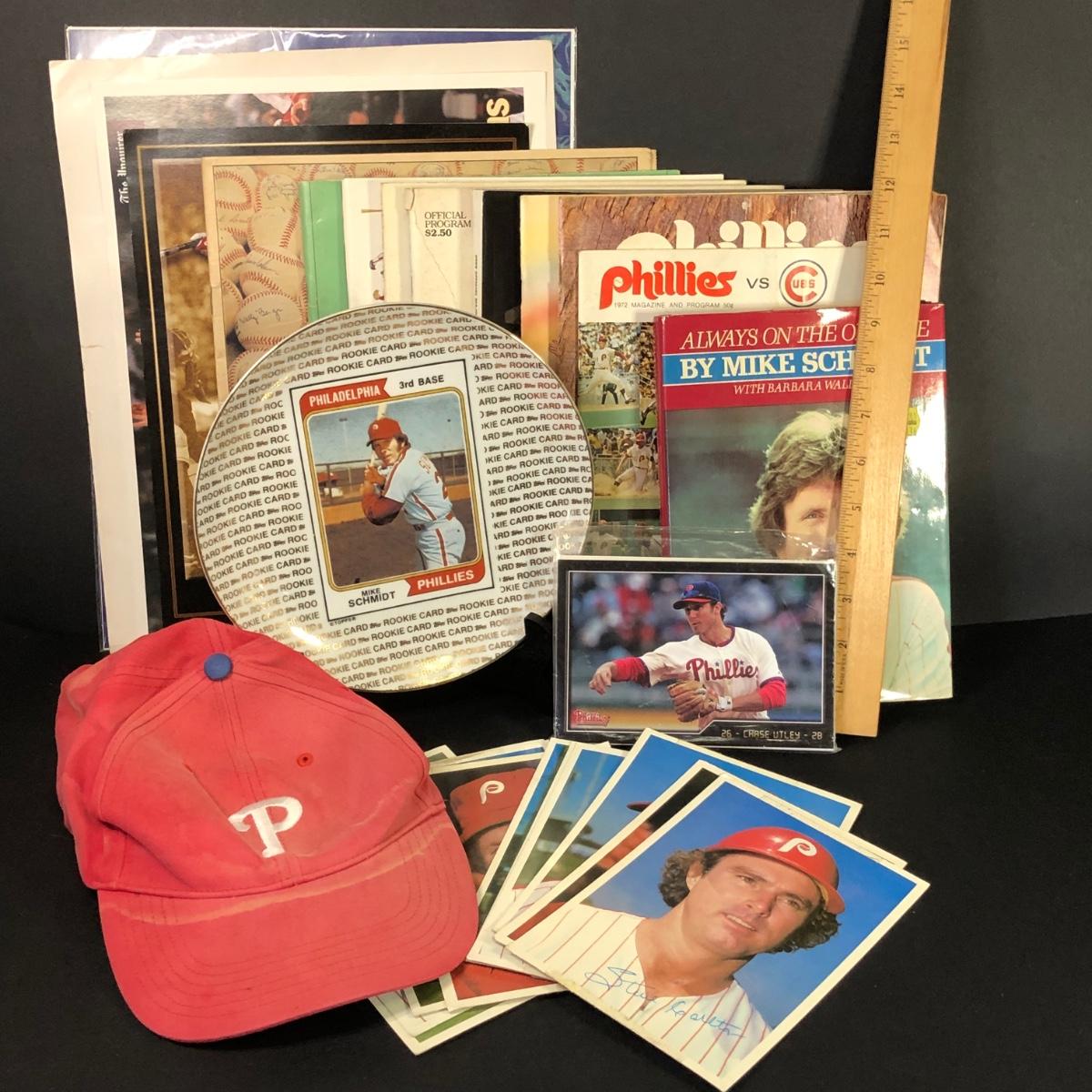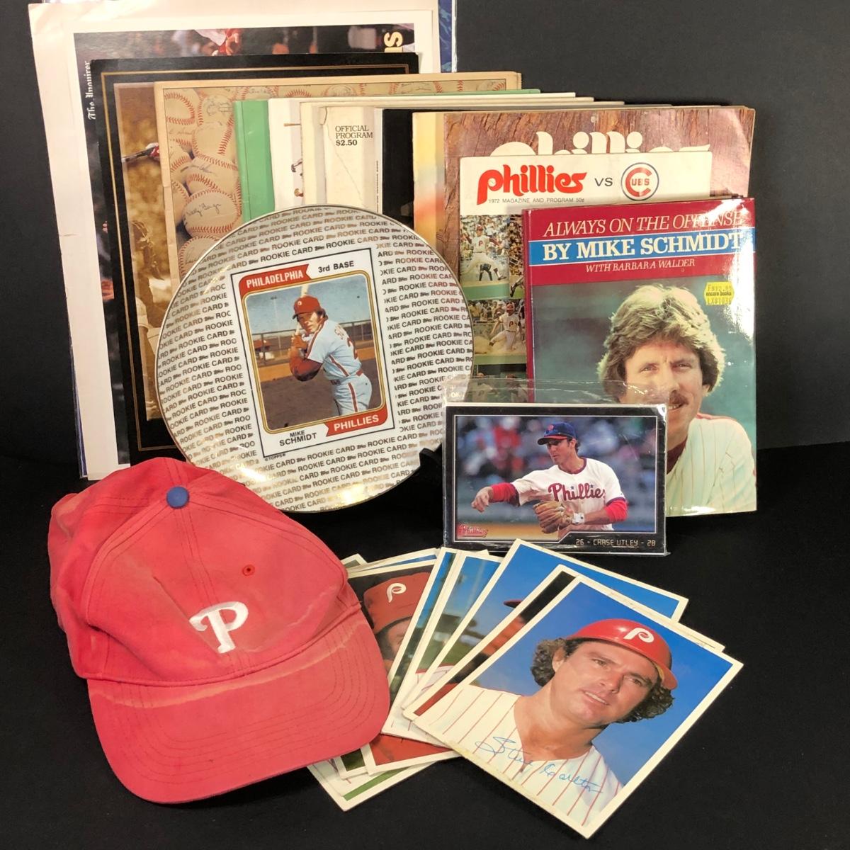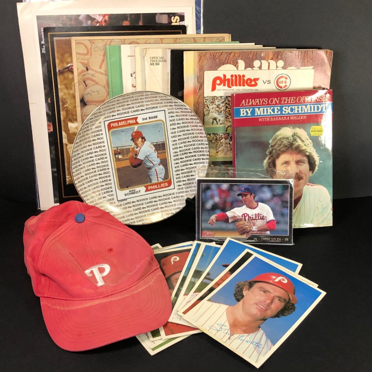 LOT 23M: Phillies Collection - Player Photos, Always on the Offense by Mike Schmidt, Vintage Programs, Mike Schmidt Plate & More