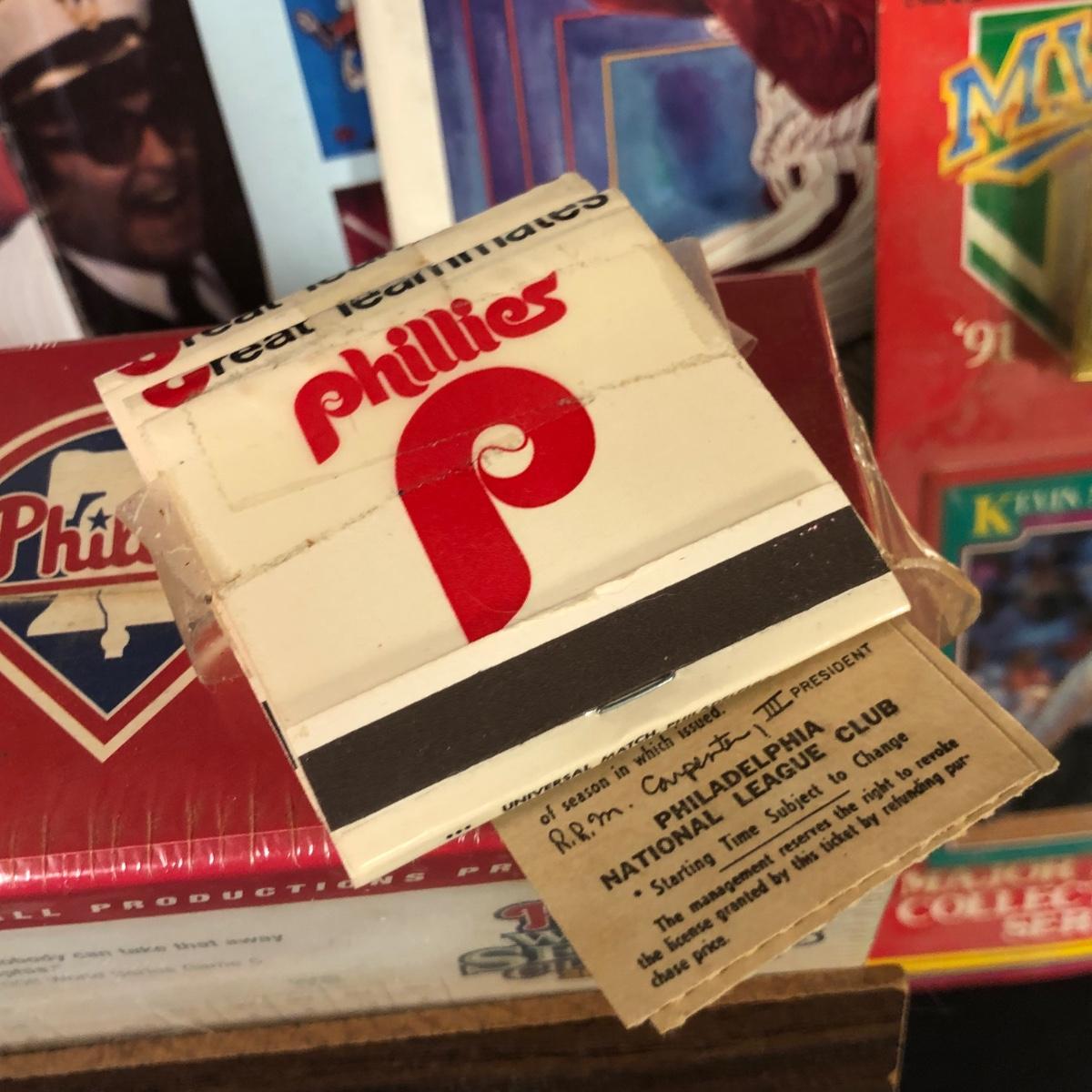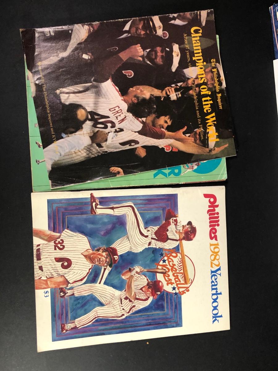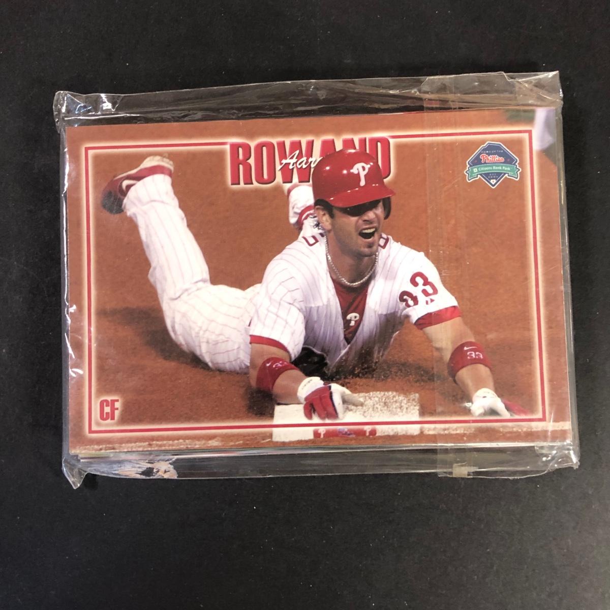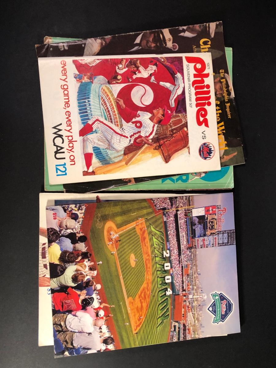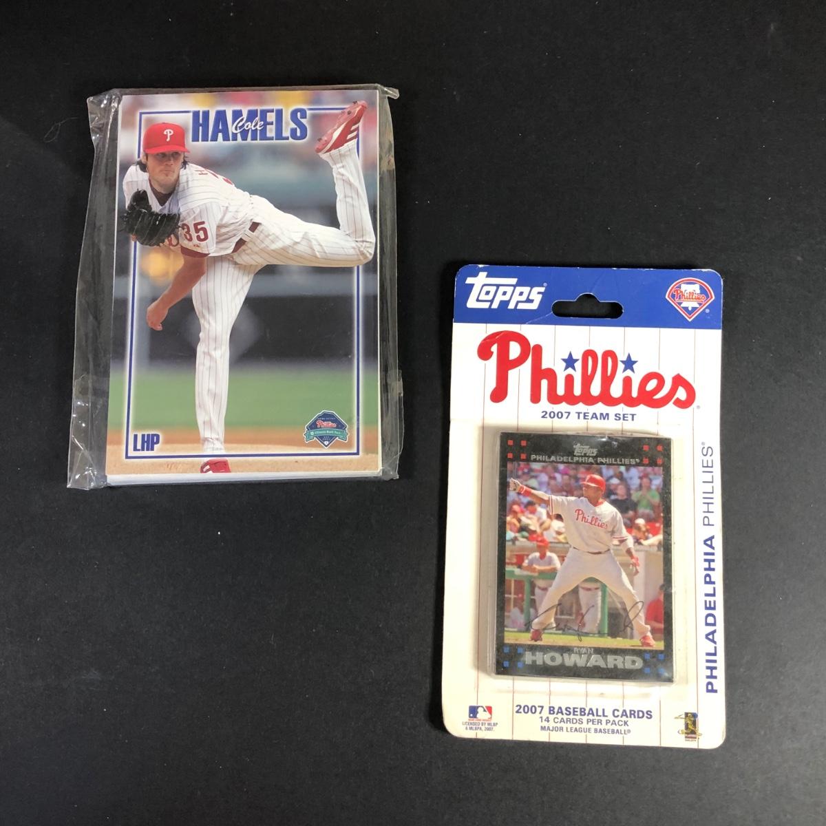 LOT 24M: Sealed Phillies 2008 World Series Collector's Edition 8-DVD Set, Phillies Sealed Topps Cards, 1993 National League Button, Programs, Posters, Hats & More