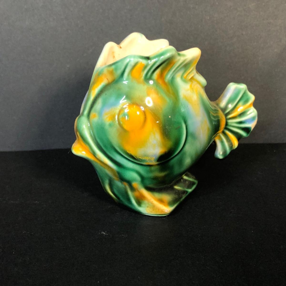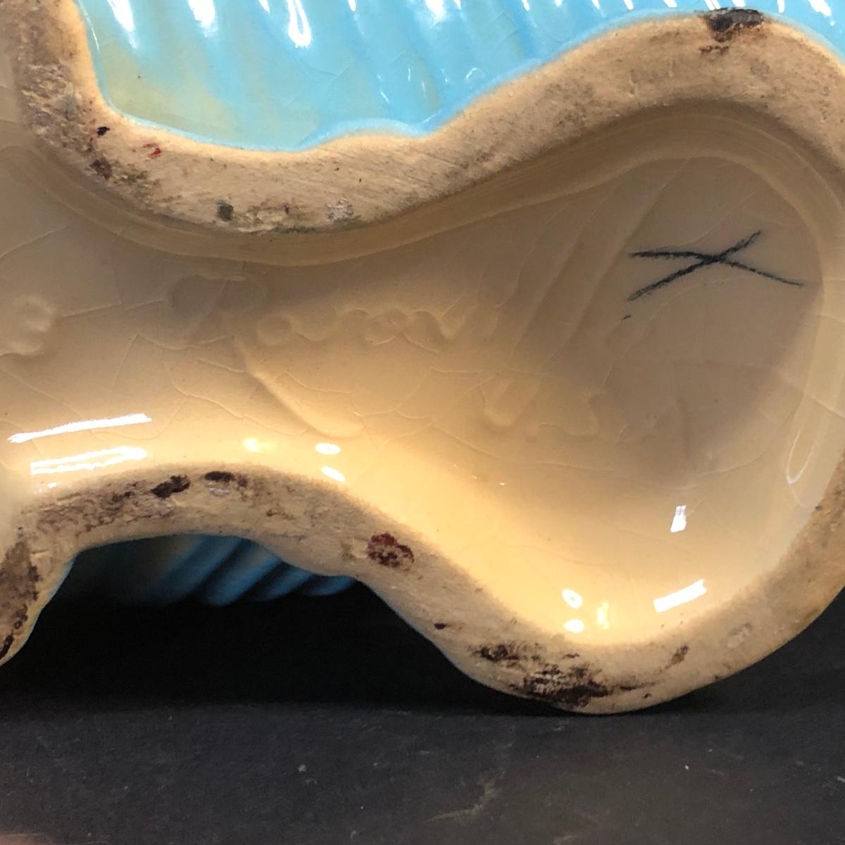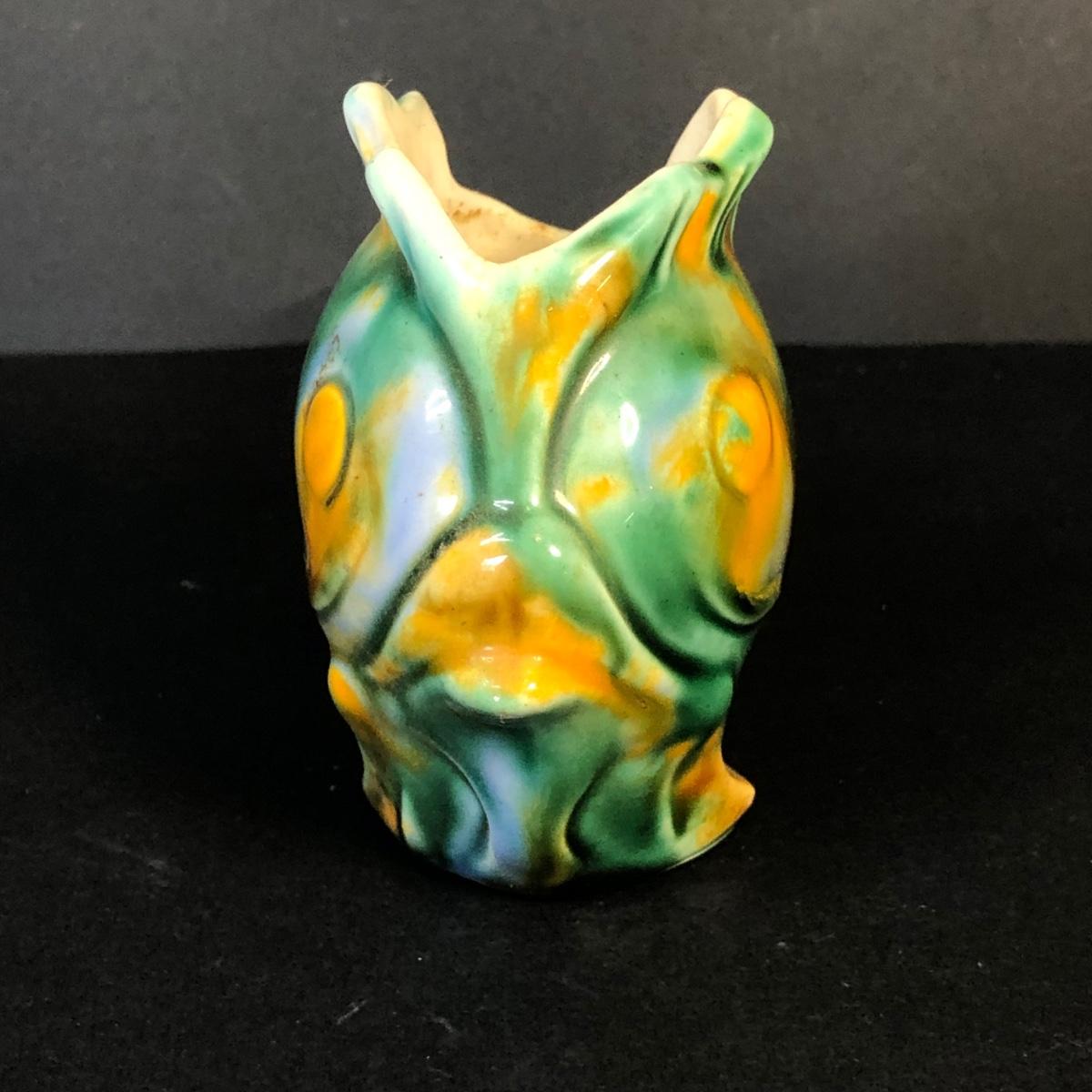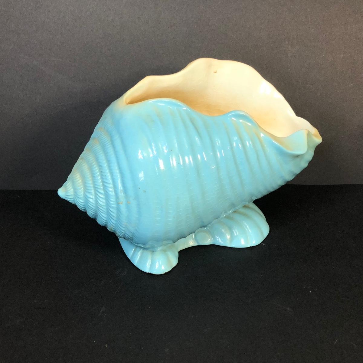 LOT 40M: Roosville Pottery Blue Shell, Cowan Pottery Seahorse Vase & Colorful Pottery Fish