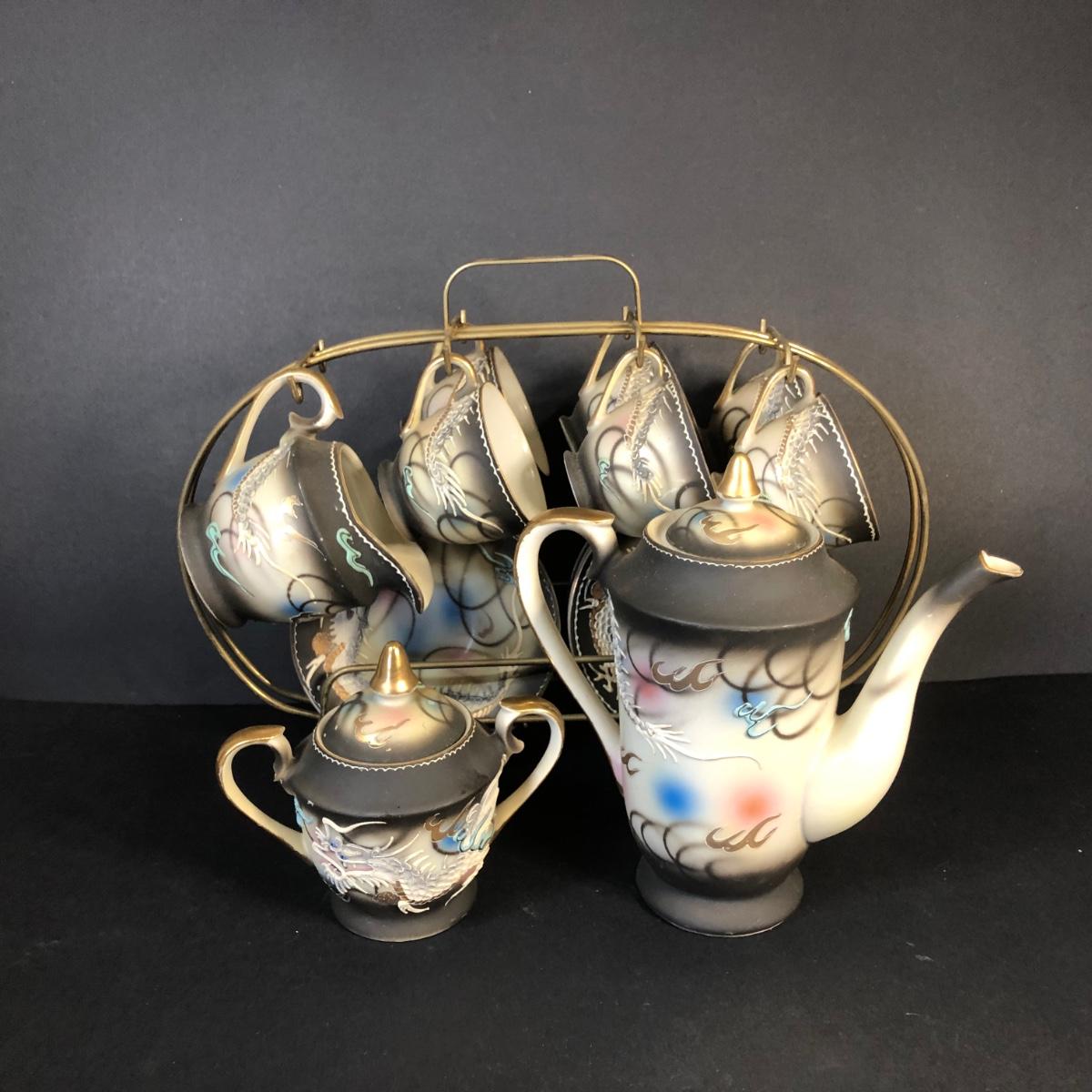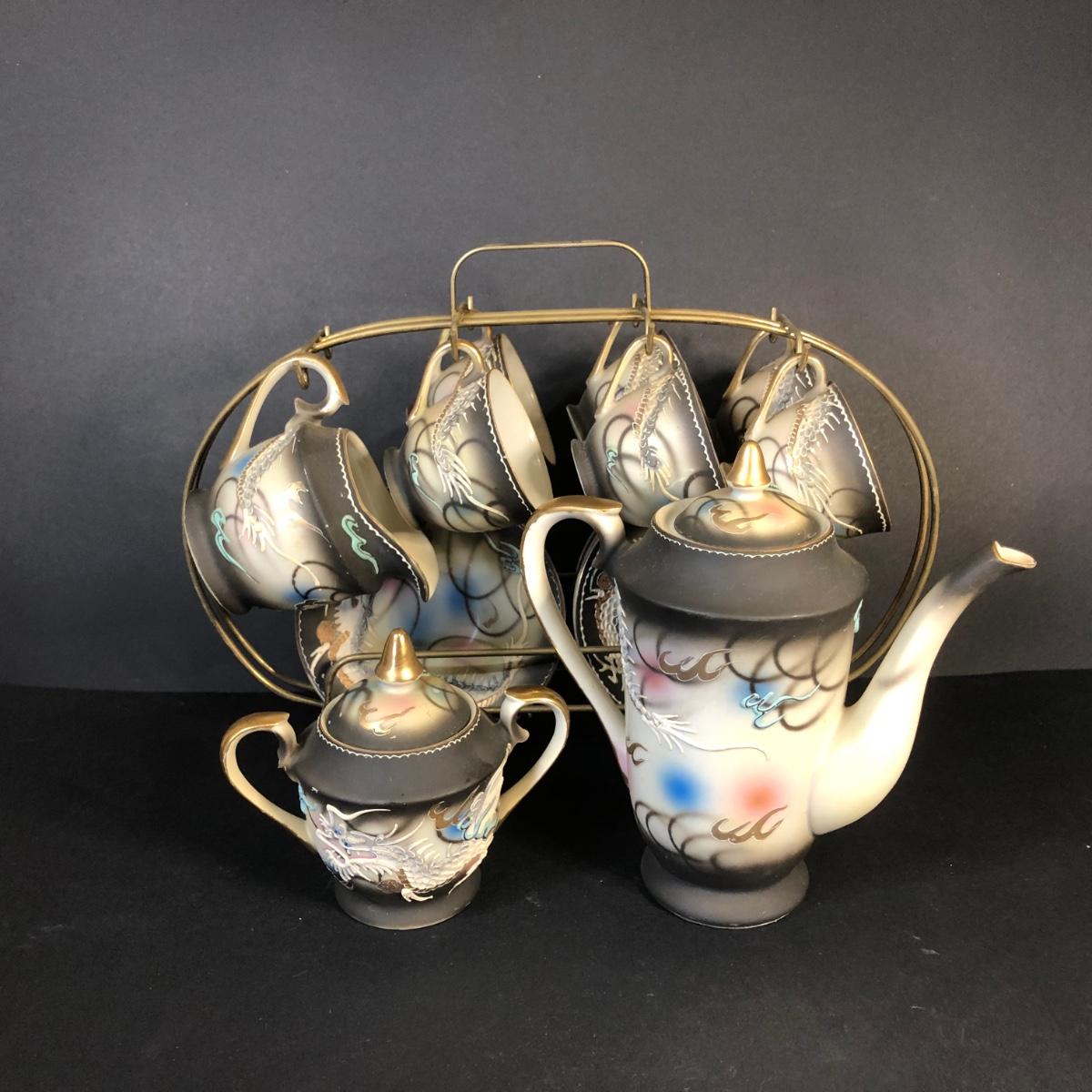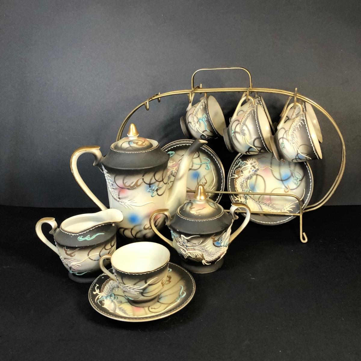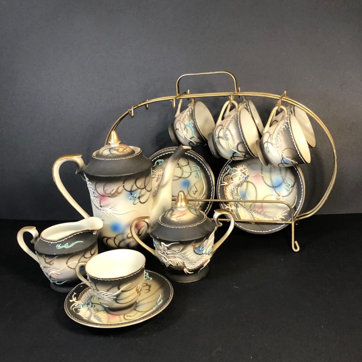 LOT 41M: Hand Painted Victora China Dragon Tea Set w/ Stand