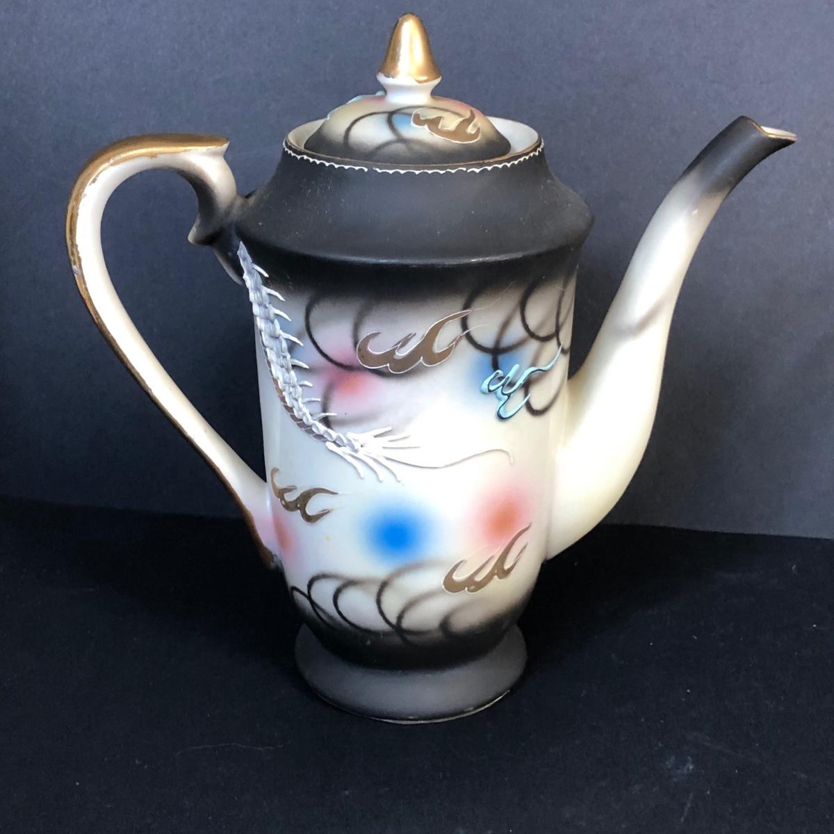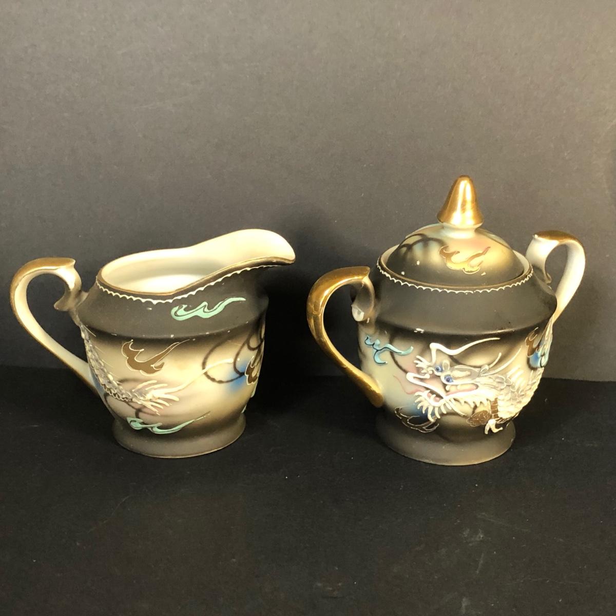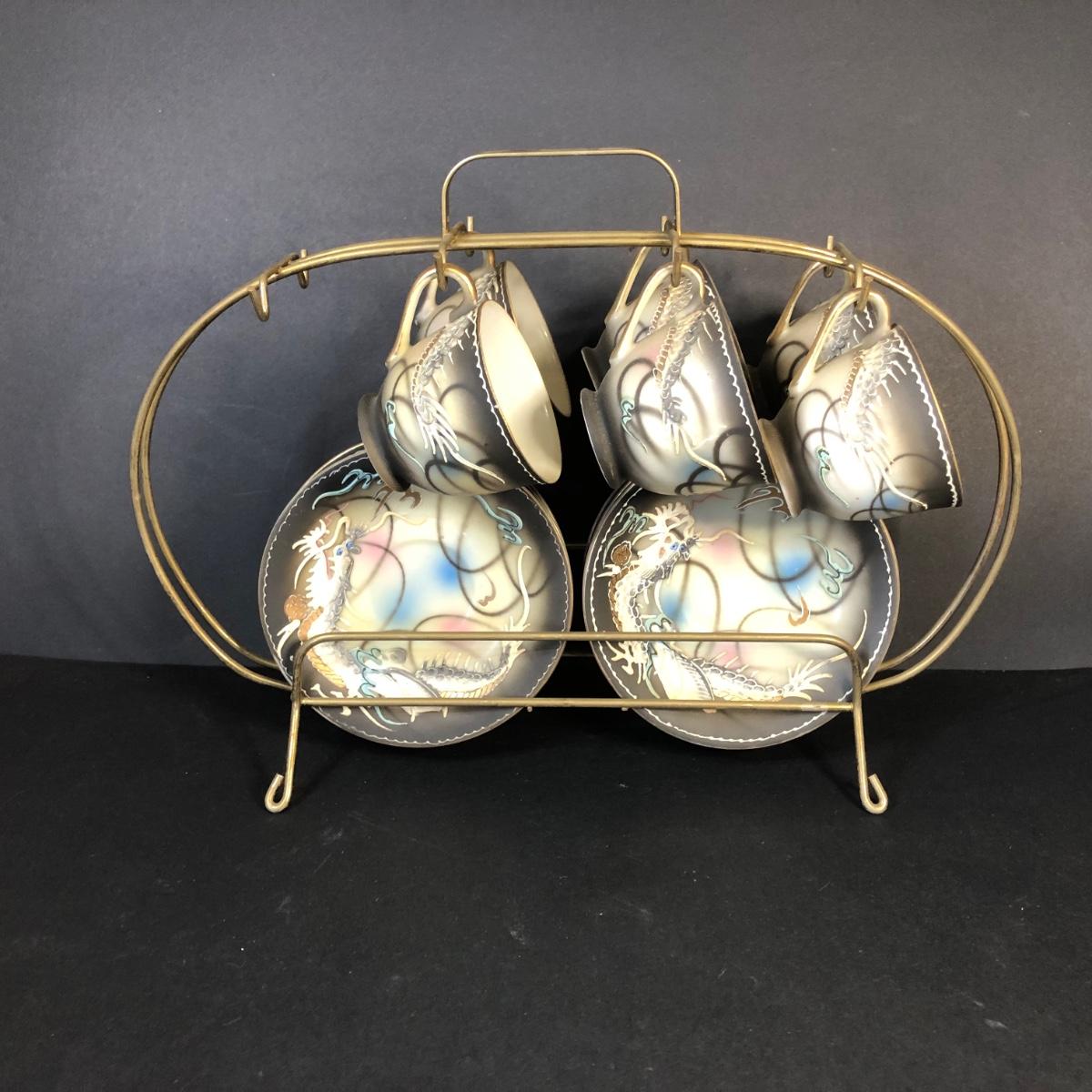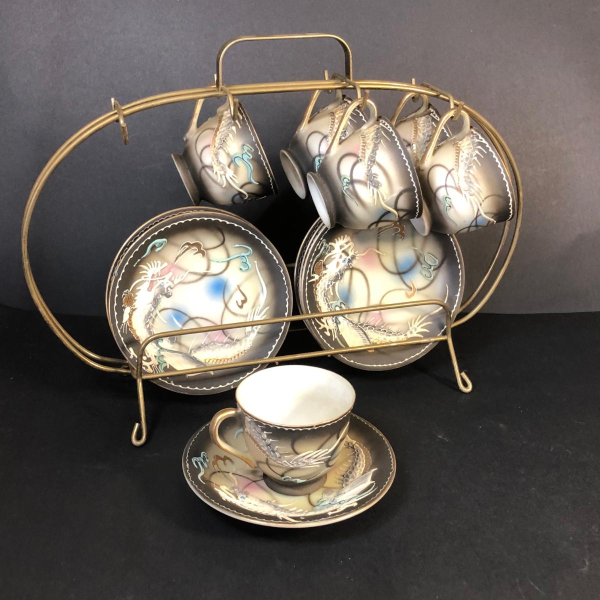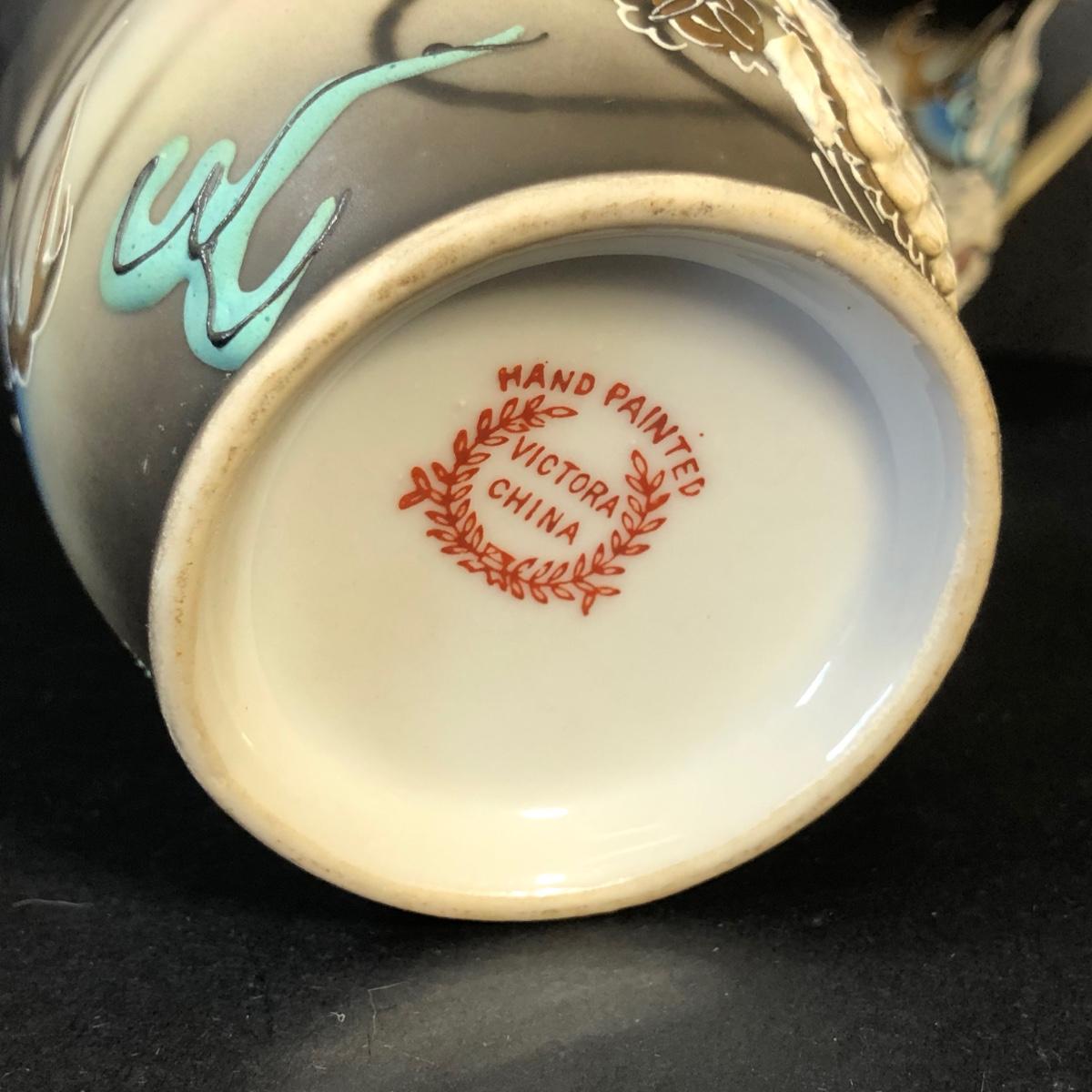 LOT 41M: Hand Painted Victora China Dragon Tea Set w/ Stand