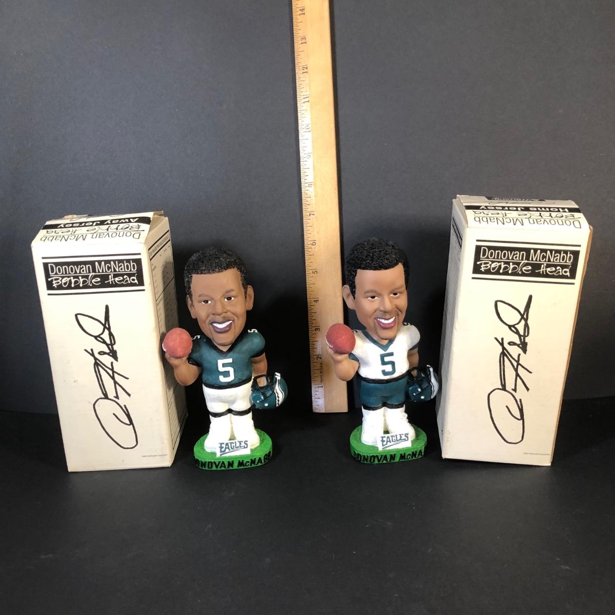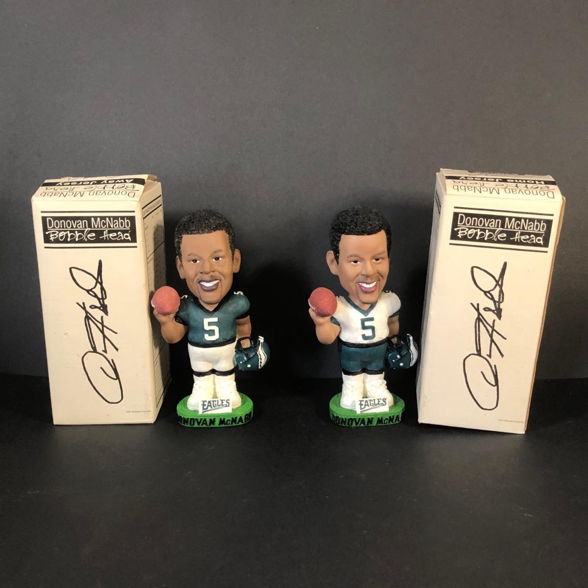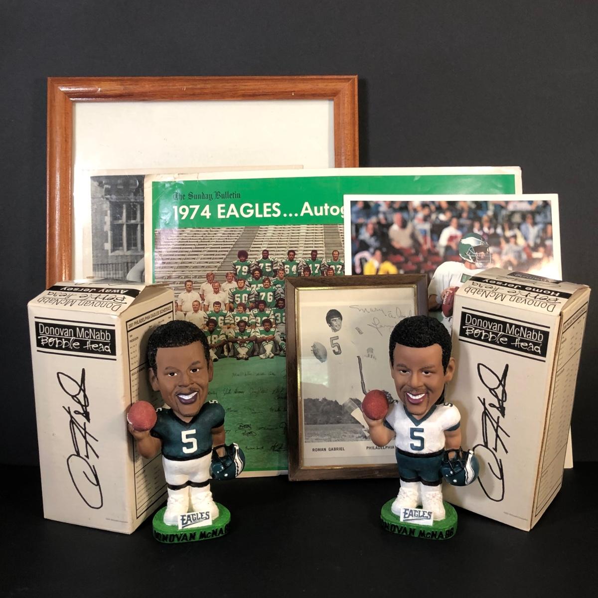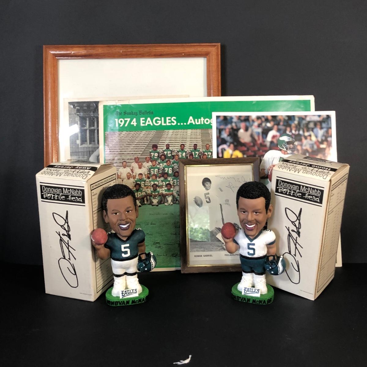 LOT 42M: Donovan McNabb Eagles Bobbleheads, 1974 Eagles Team Photo, Signed Photos & More