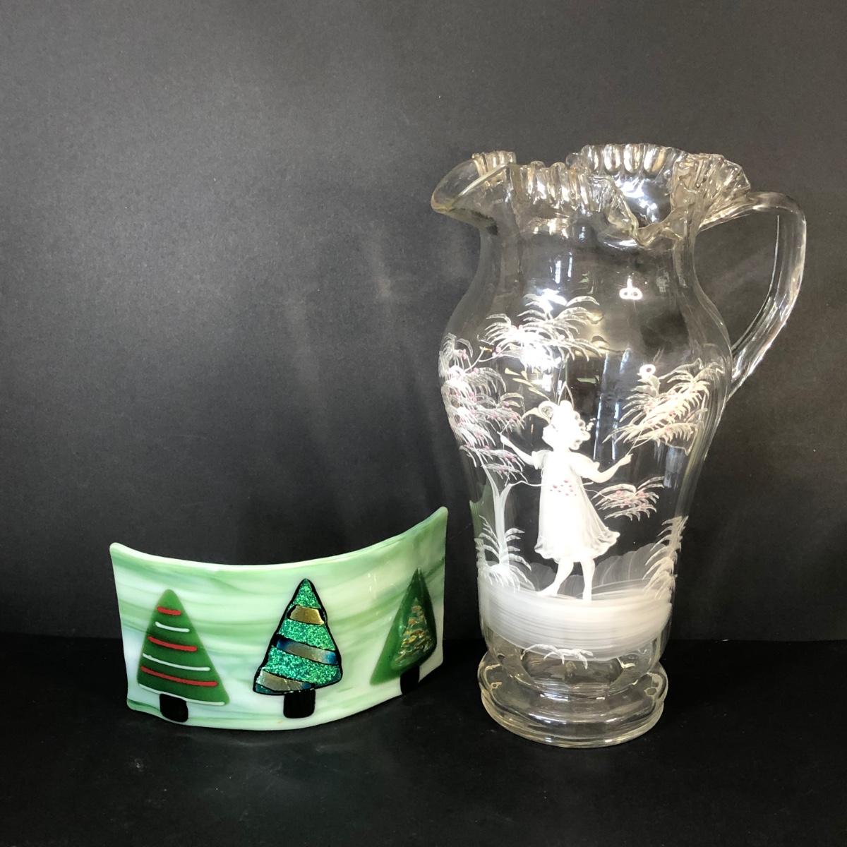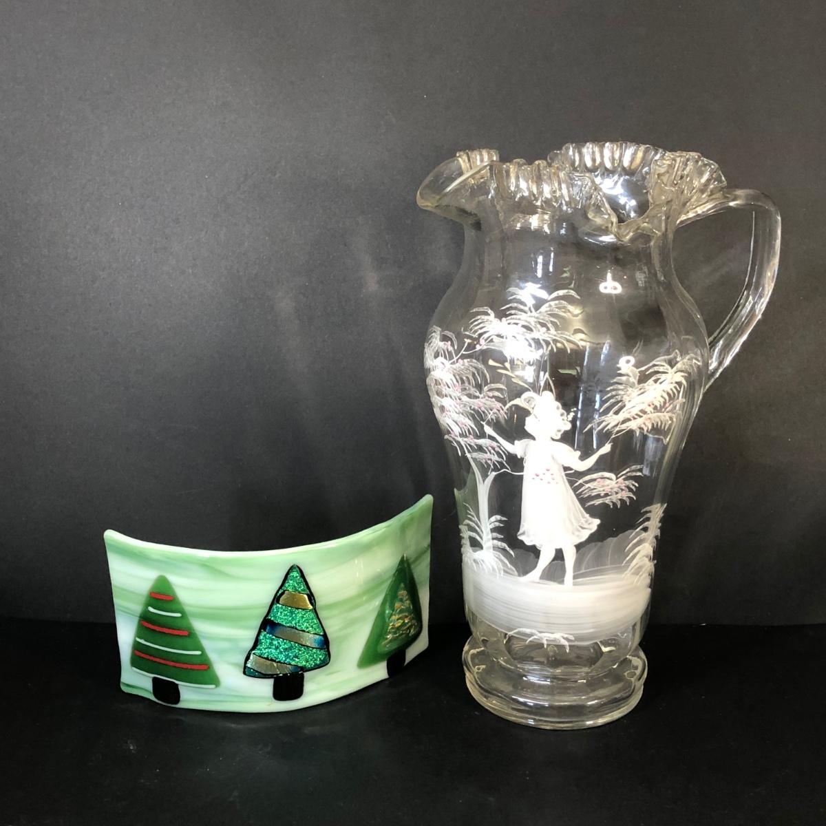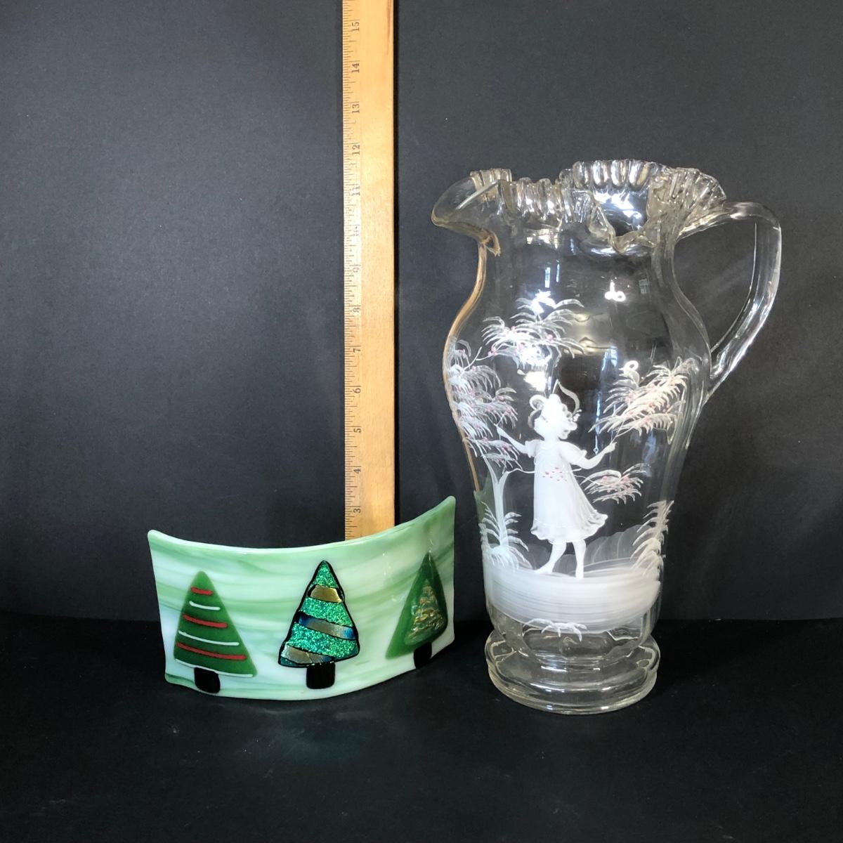 LOT 43M: Westmoreland Glass Pitcher & Handmade Glass Decor
