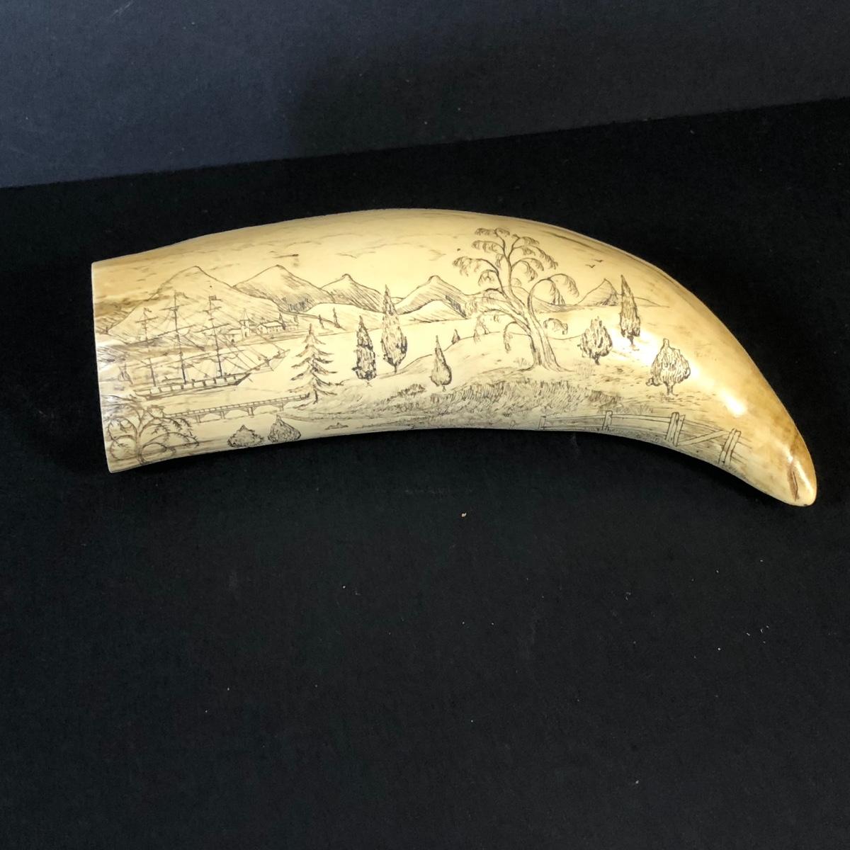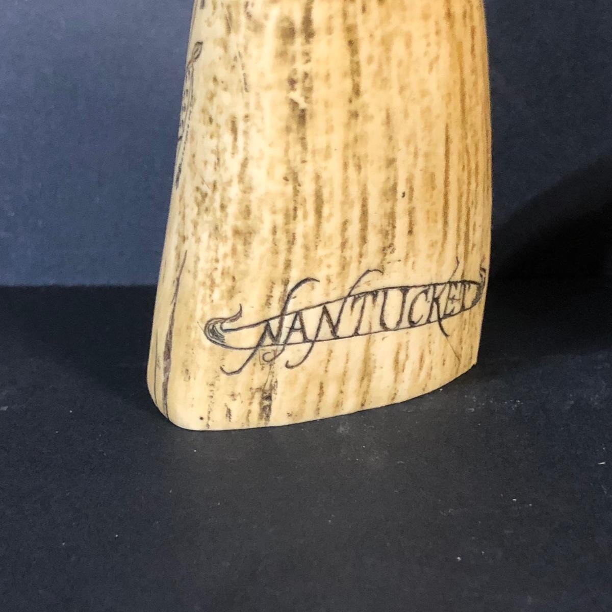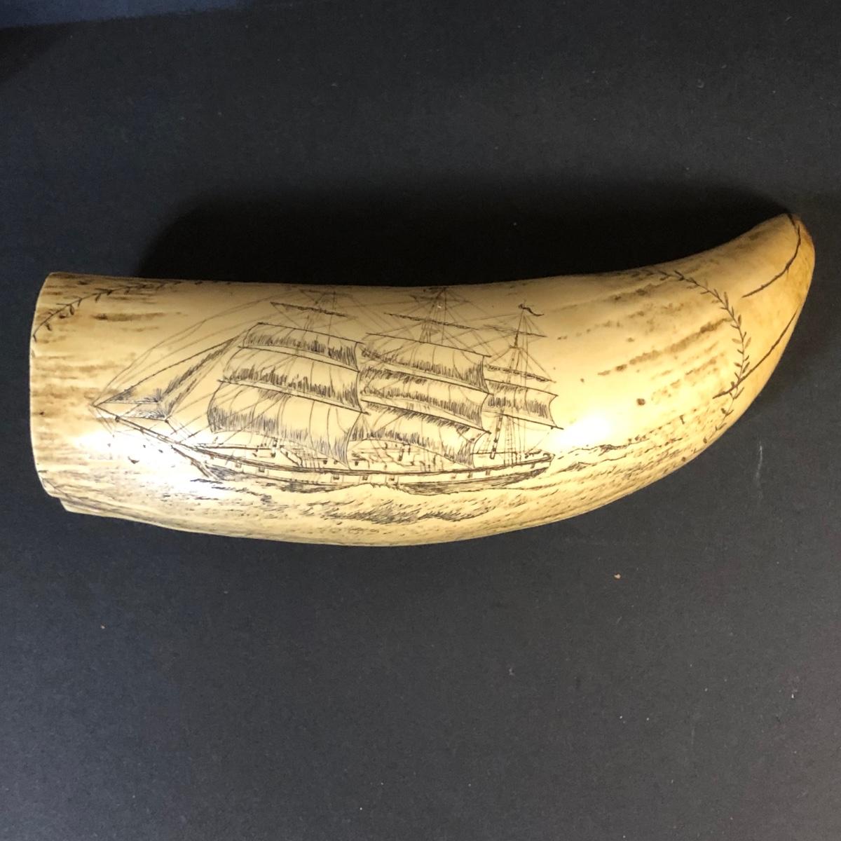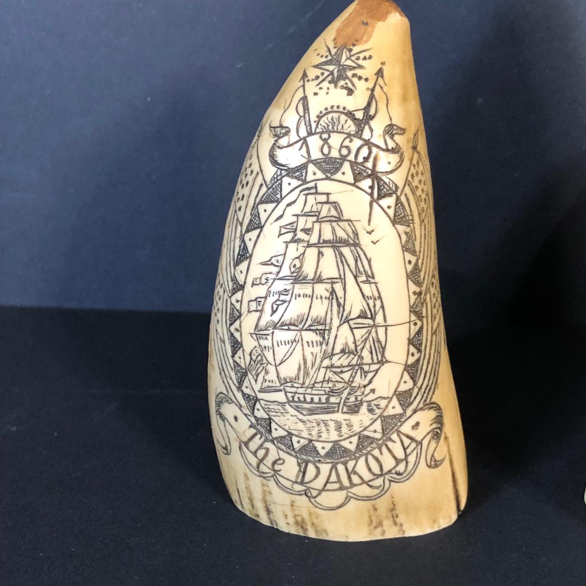 LOT 45M: Nantucket Scrimshaw Reproductions, Heavy Metal Old Salt Figure & Framed Clipper Ship Posters