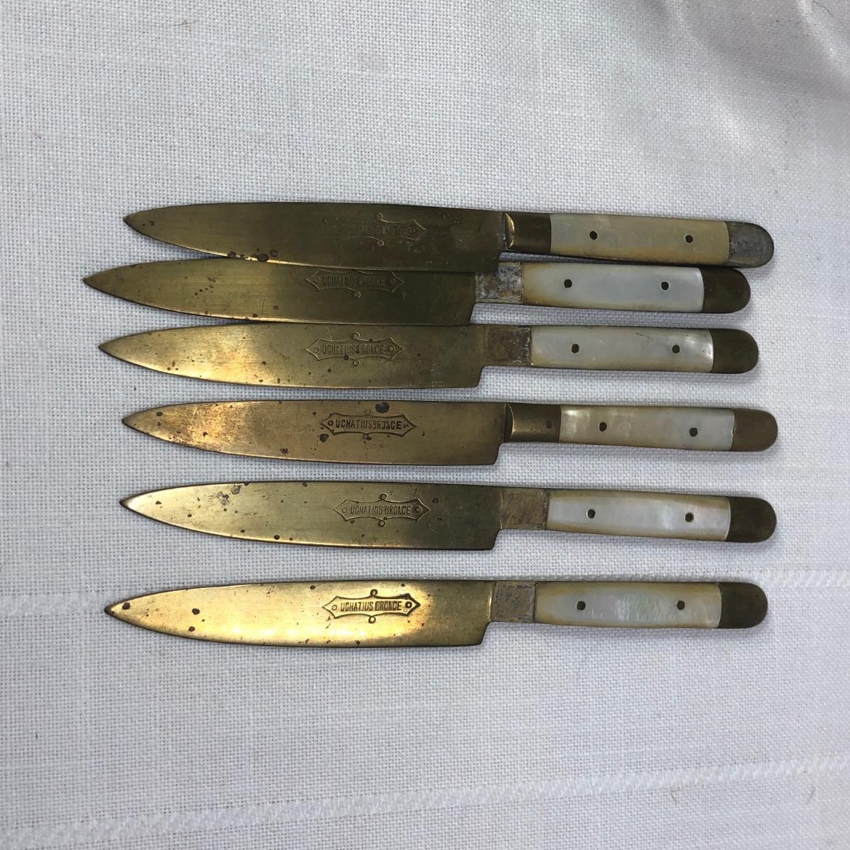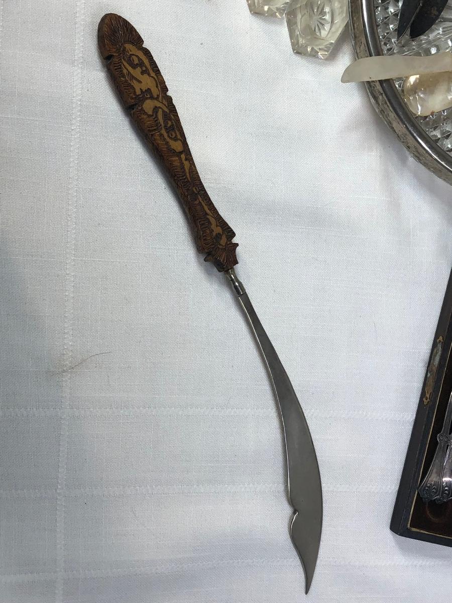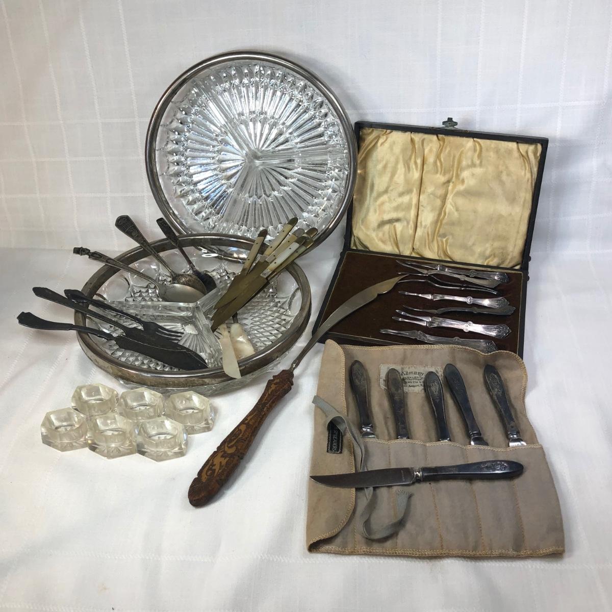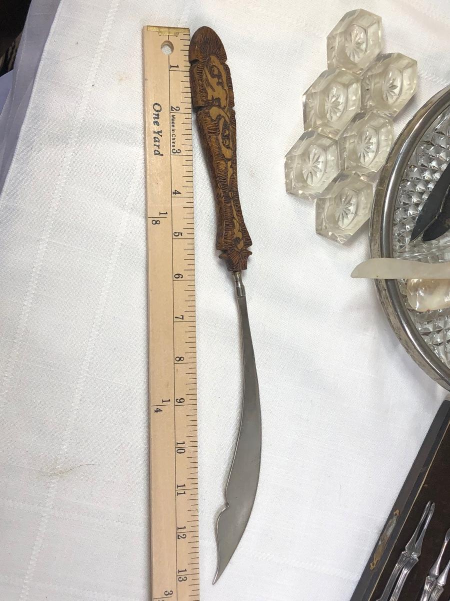 LOT 52M: Ughatius Bronce Knives, L. Kemeny Jeweler Butter Spreaders, Wood Handled Decorative Knife, Salt Dishes & More