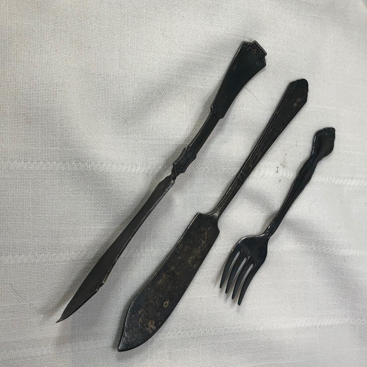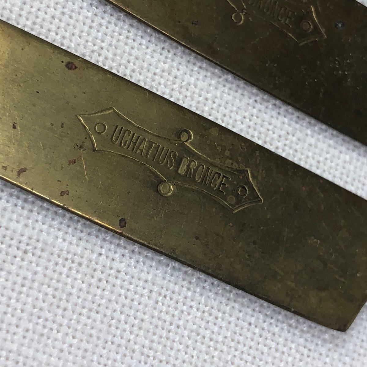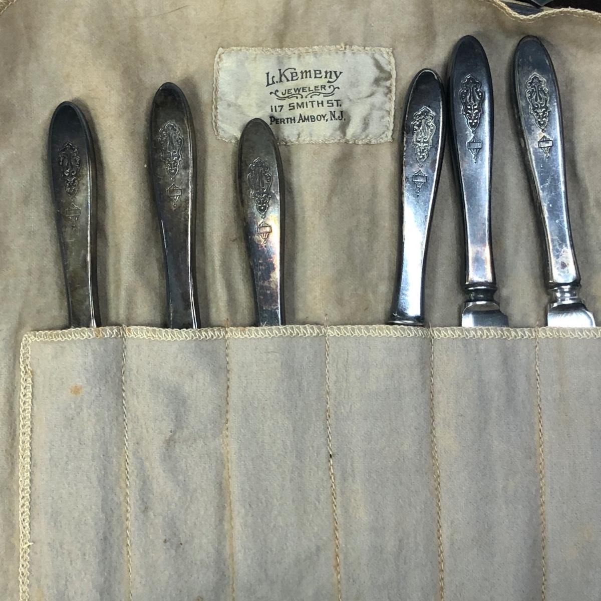 LOT 52M: Ughatius Bronce Knives, L. Kemeny Jeweler Butter Spreaders, Wood Handled Decorative Knife, Salt Dishes & More