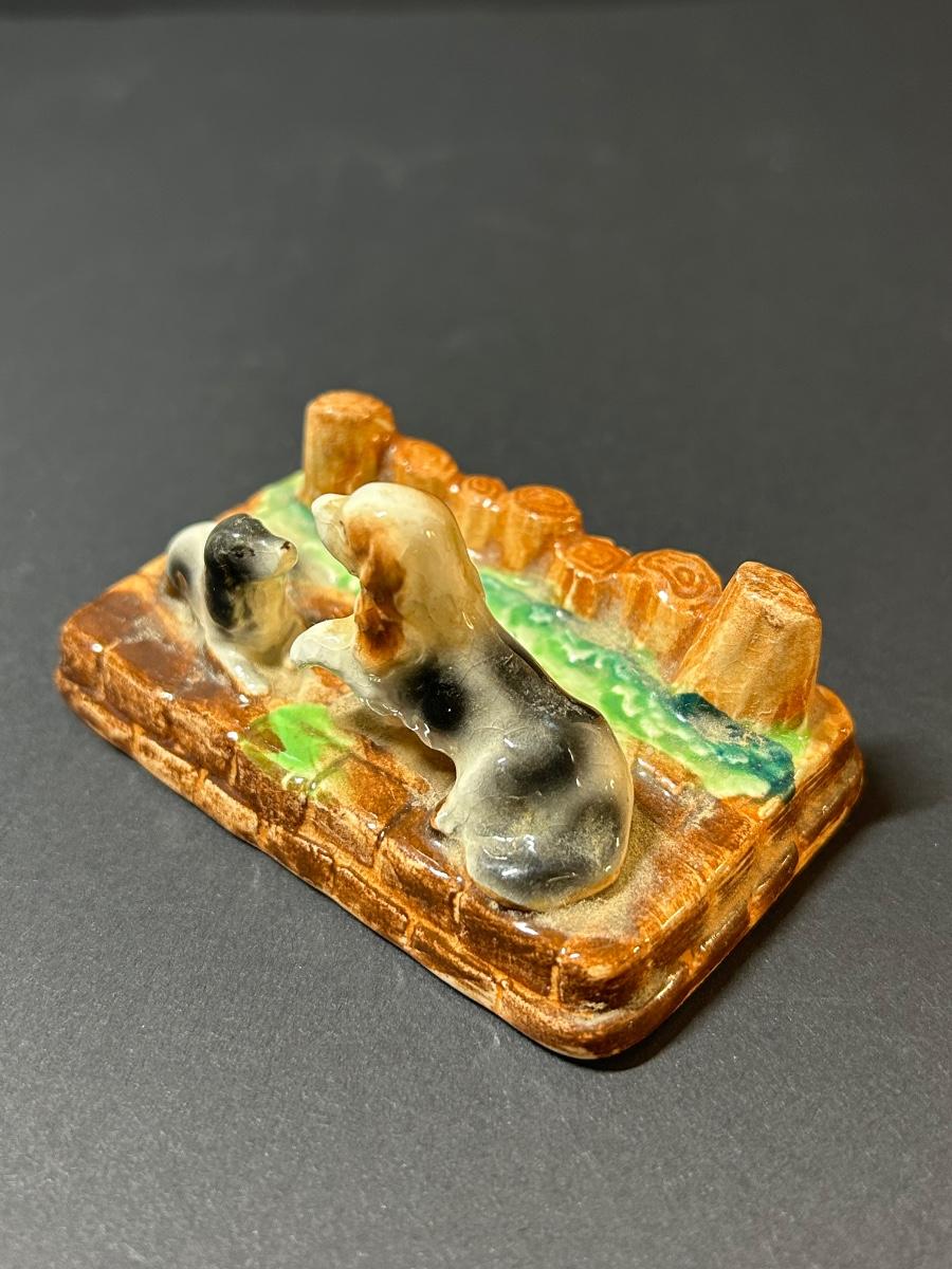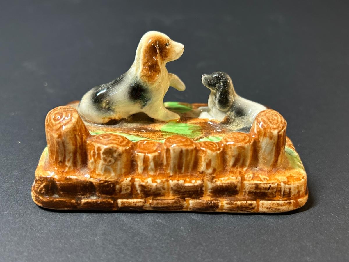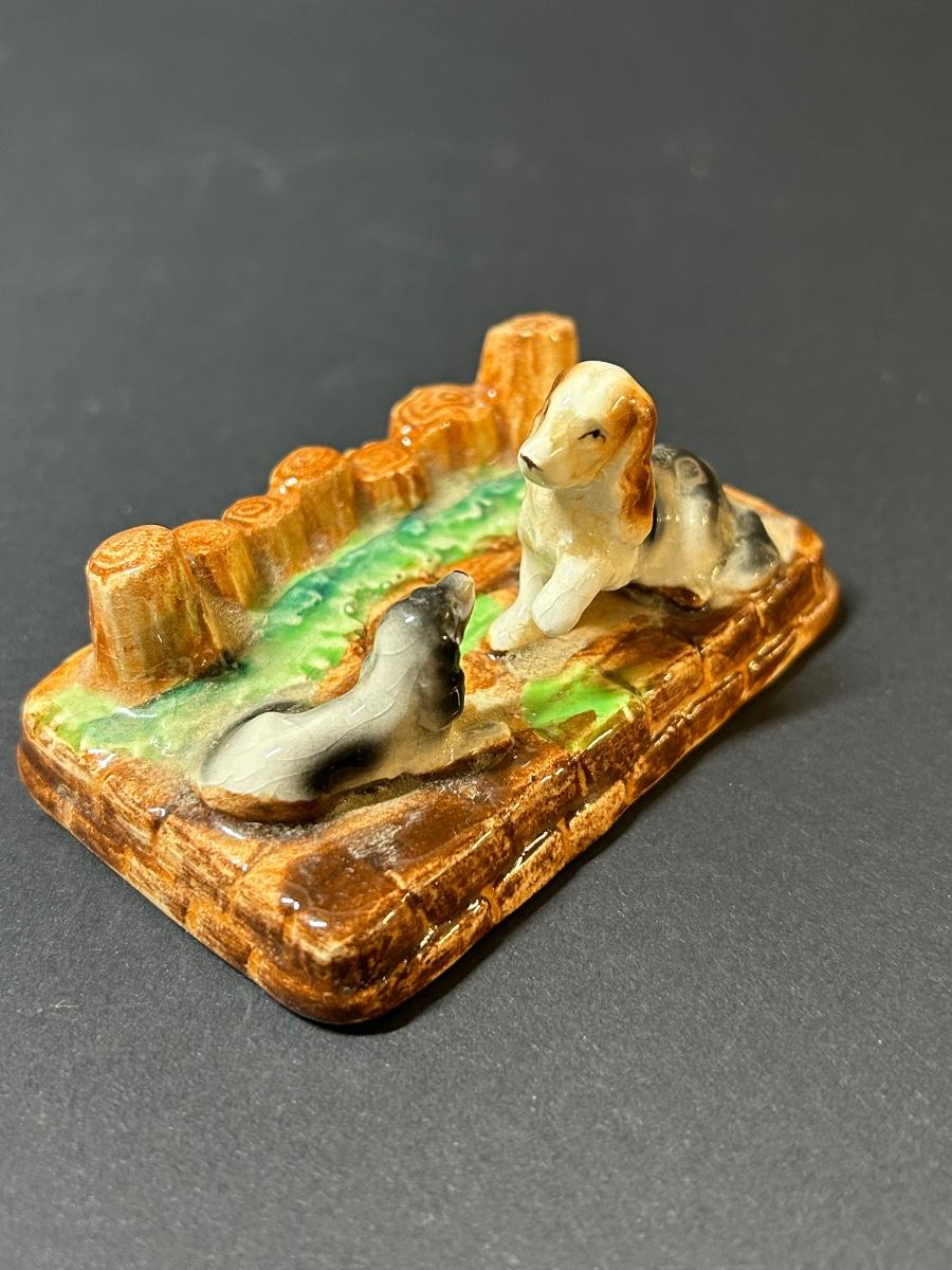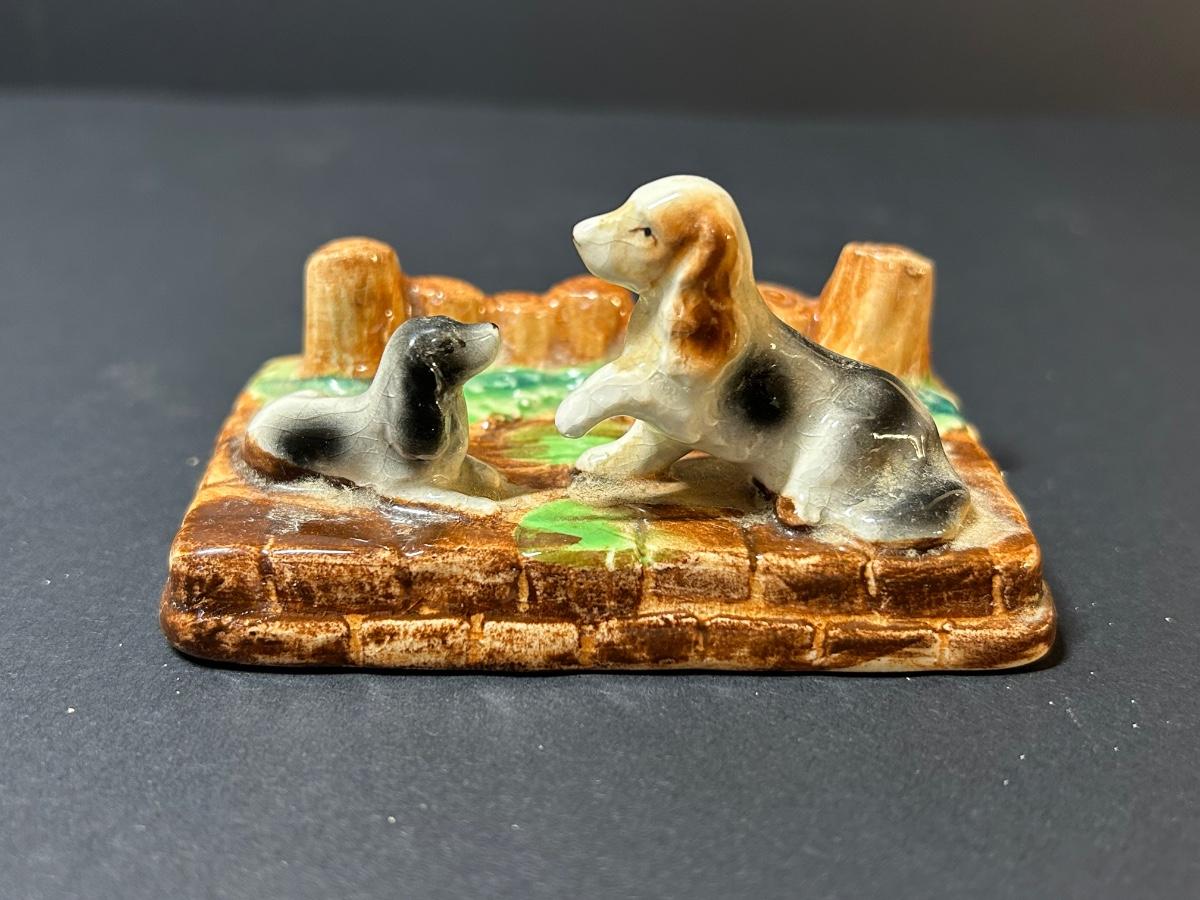 Three Pottery Vases, bowl, occupied Japan dog figurine and McCoy Millstream.