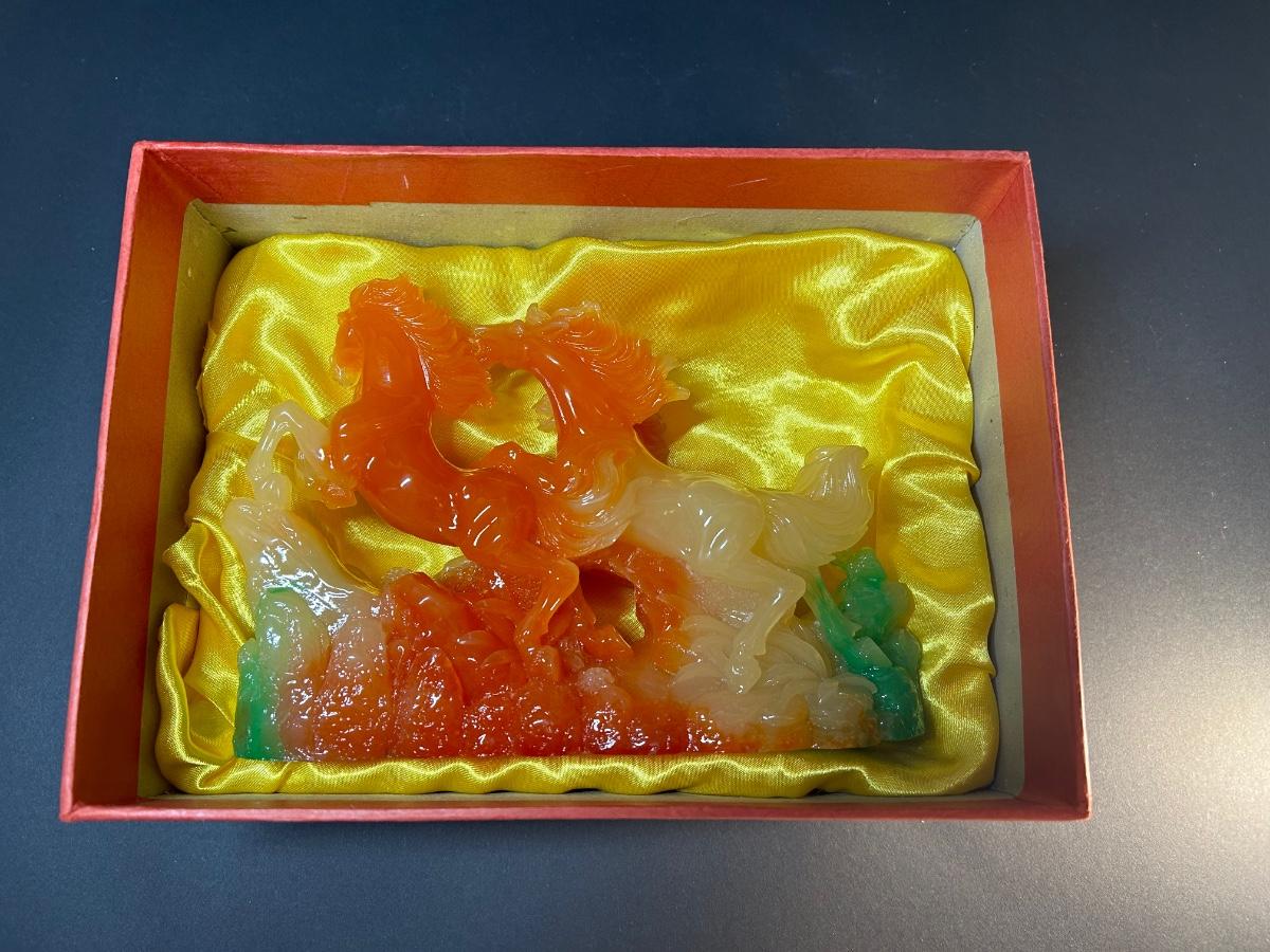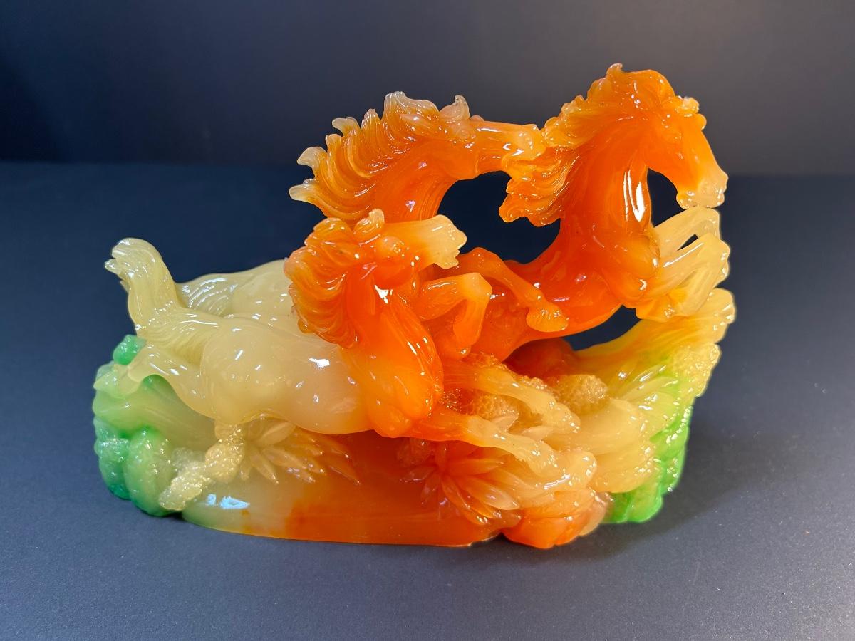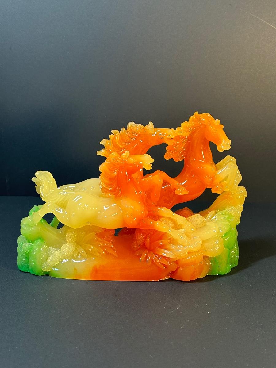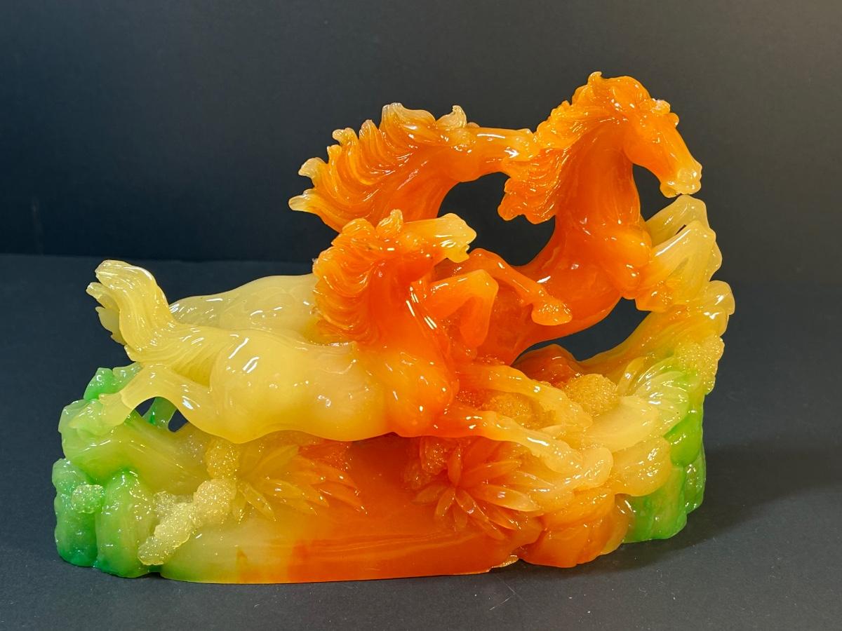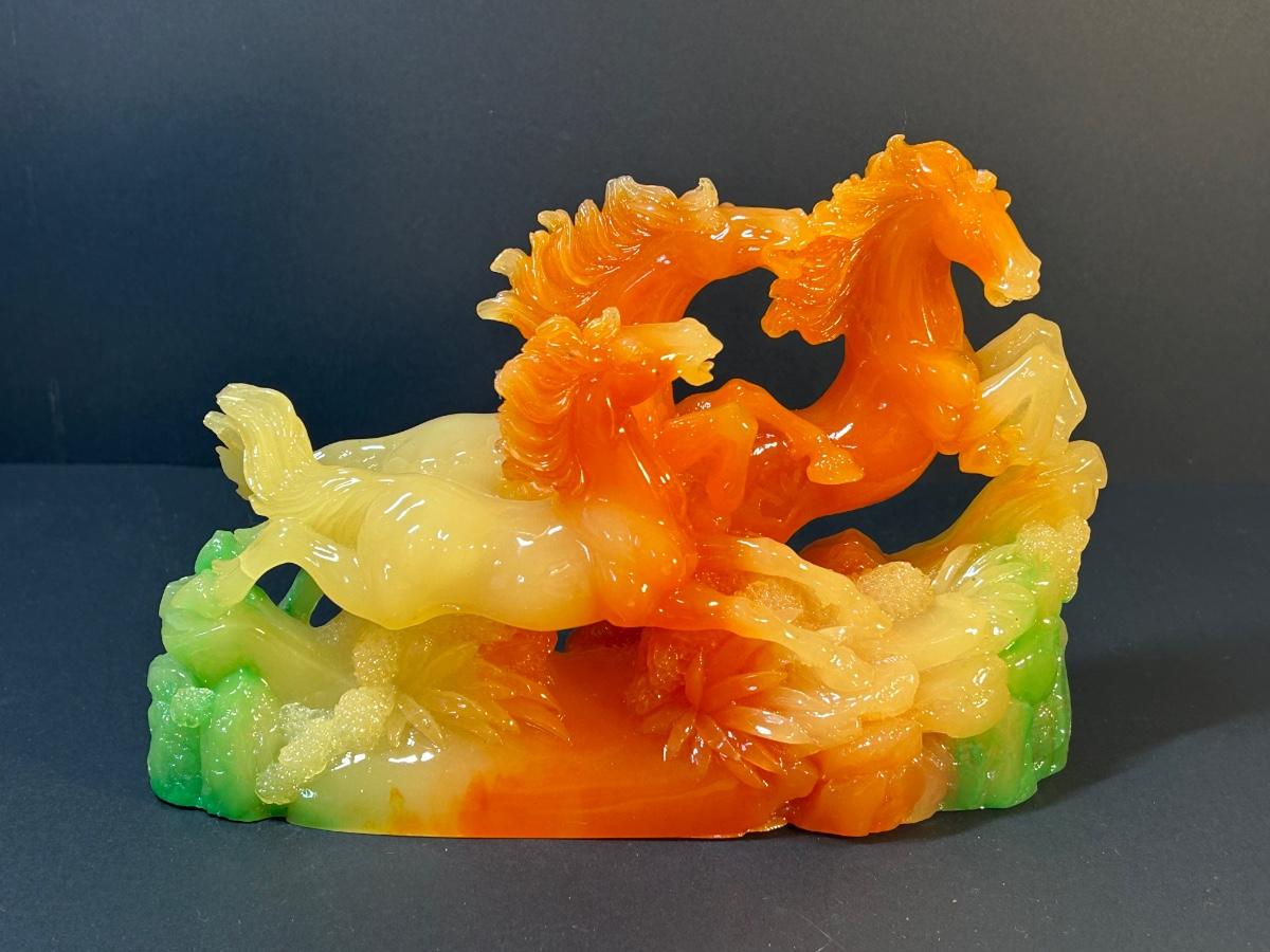 LOT 87: Fiery Bright Great Gift: Three Wild Horses Figurine, Japanese Porcelain Ware & Green Multi-Purpose Fish Jug