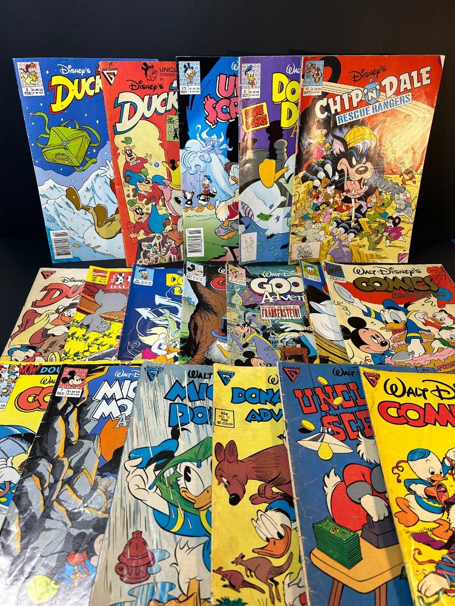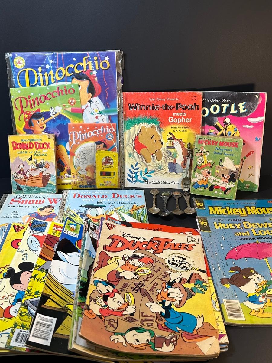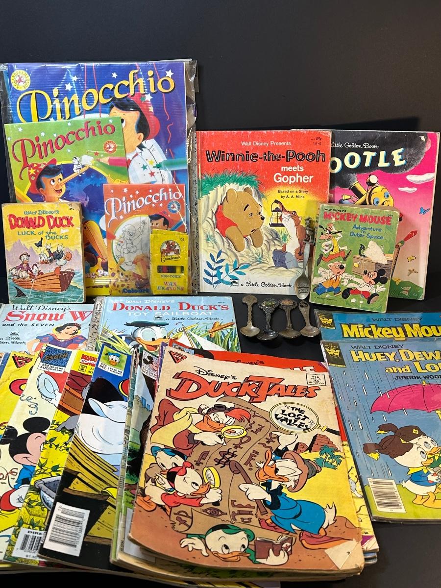 Ducktails, Mickey Mouse, Chip and Dale and more comic books. Winnie the Pooh, Mickey Mouse Pinocchio books and more.