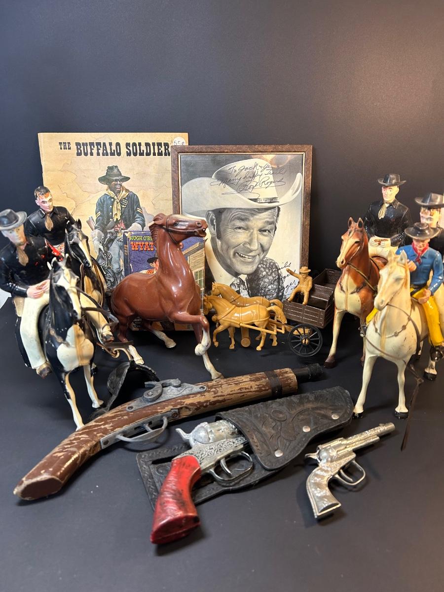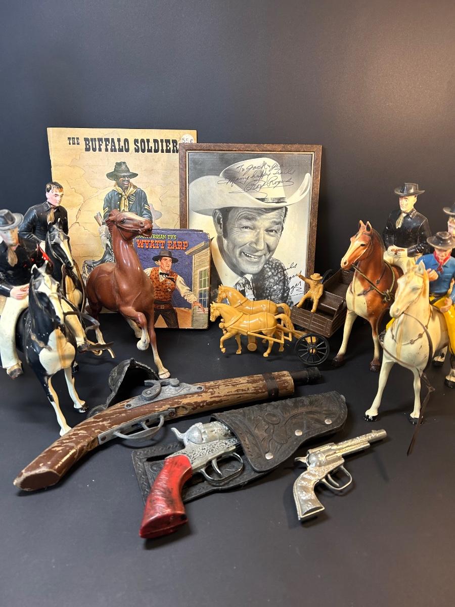LOT 95: Signed Print of Roy Rogers, Vintage Cowboy Toys, Books & Guns
