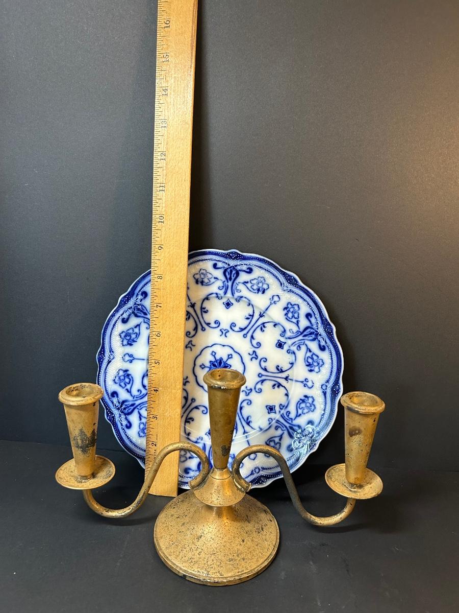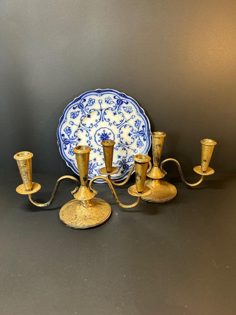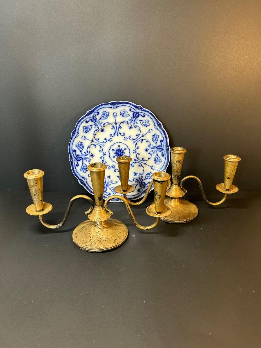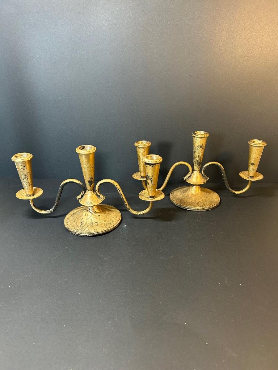 LOT 97: Weighted Sterling Silver Candlesticks & Plate