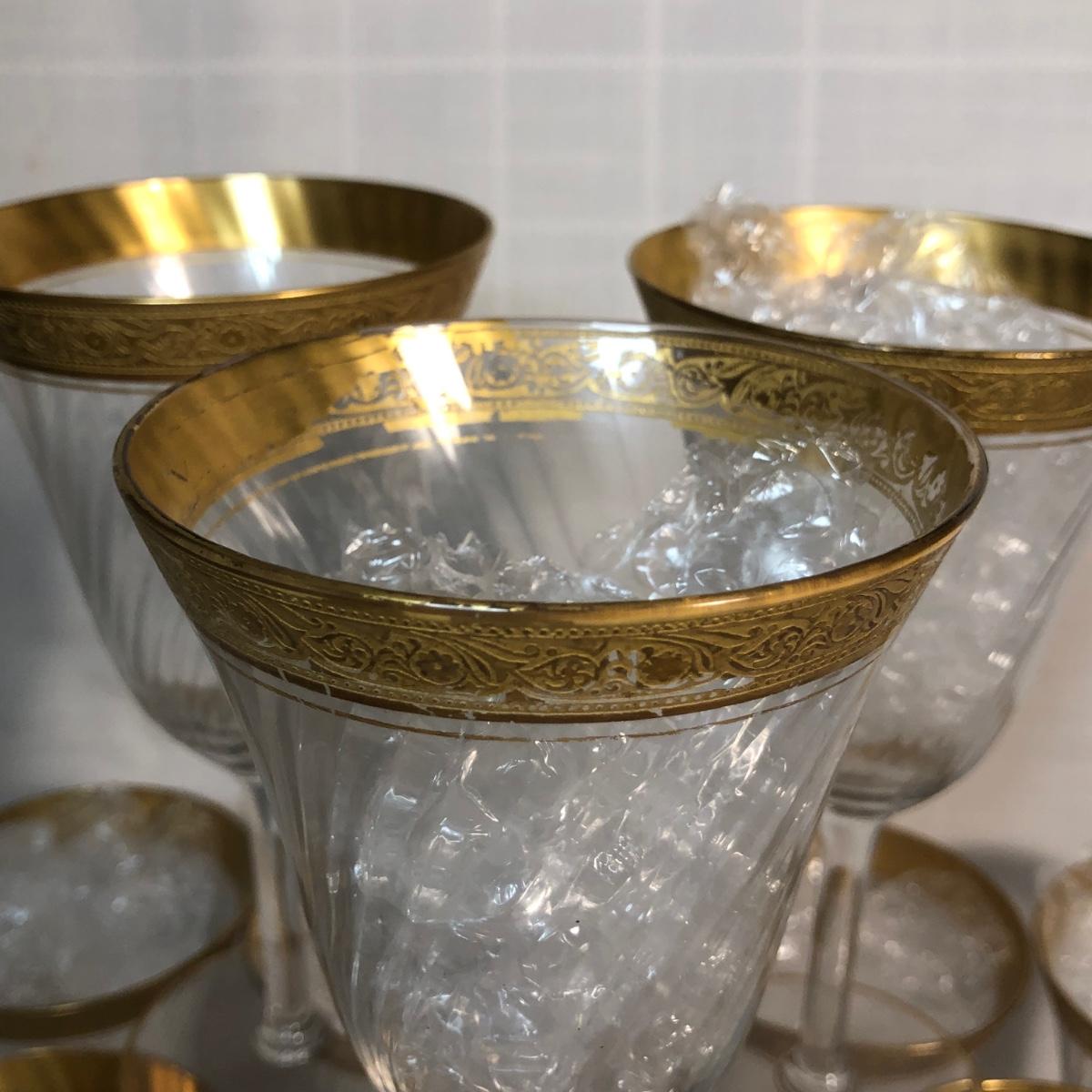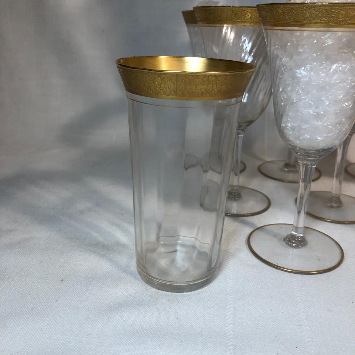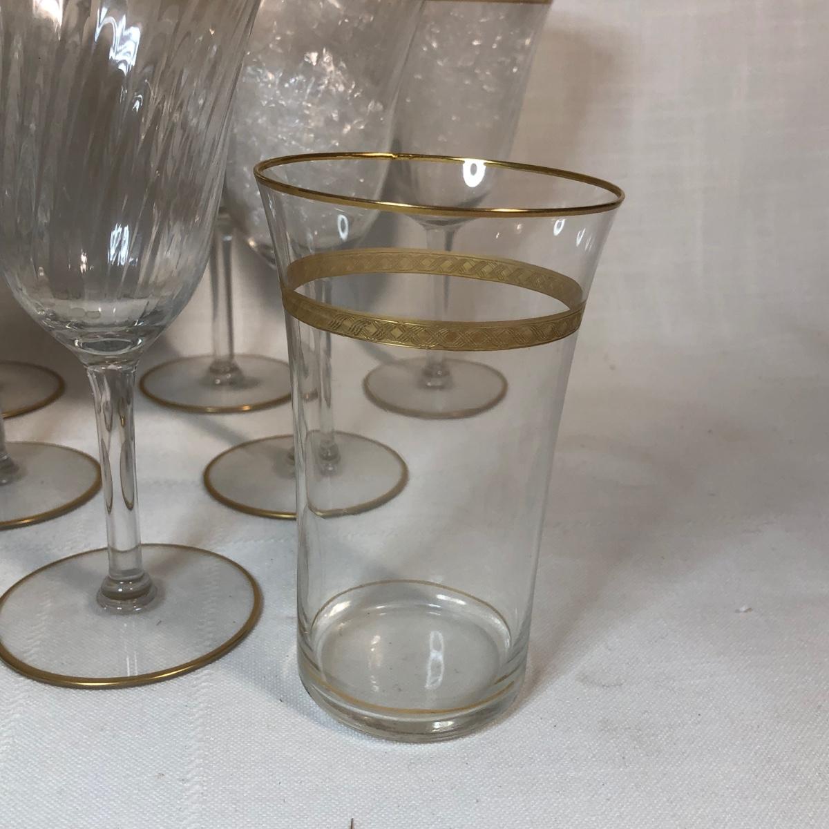 Few glasses have condition issues. 12 stemmed glasses included. 2 unique glasses w/ matching patterns included as well.