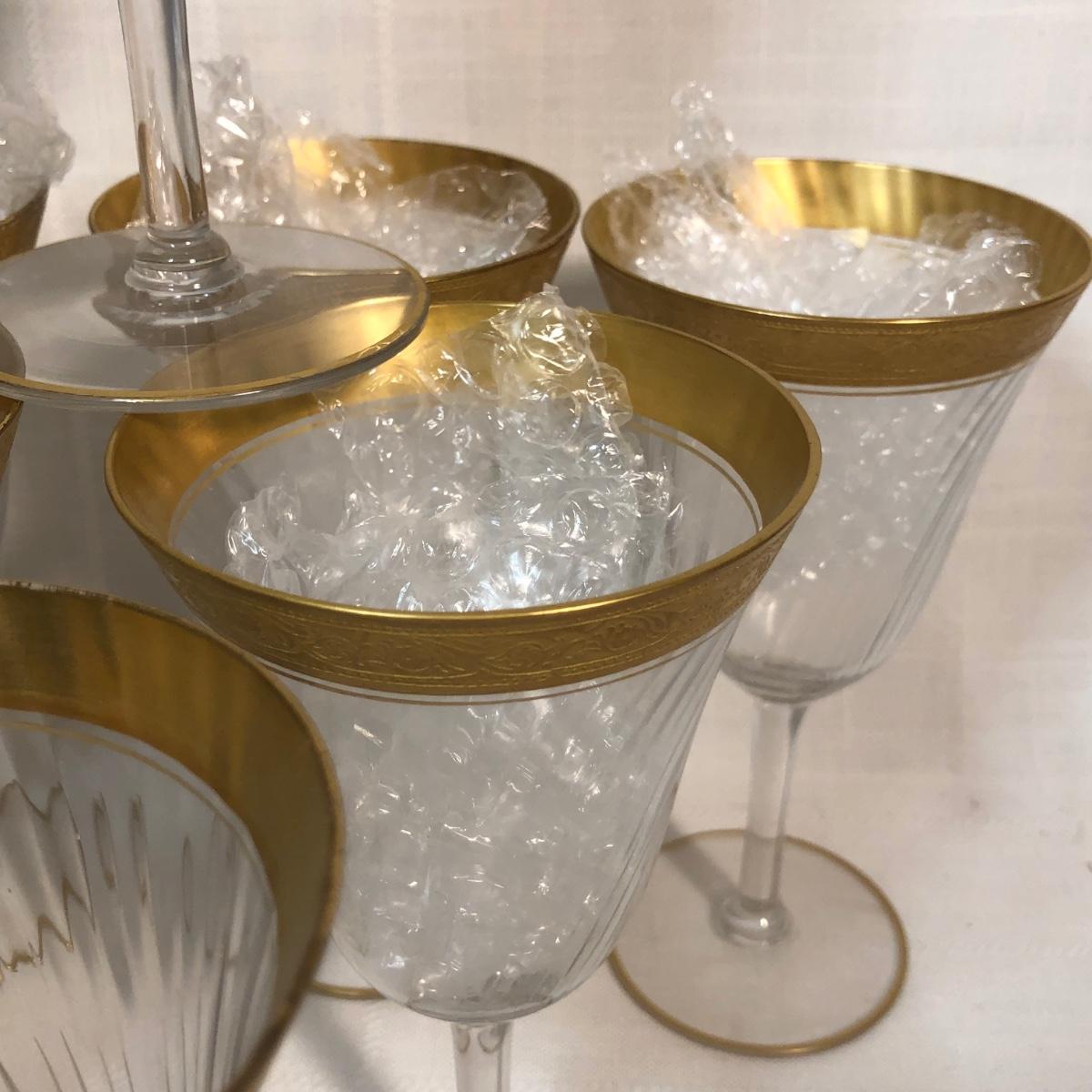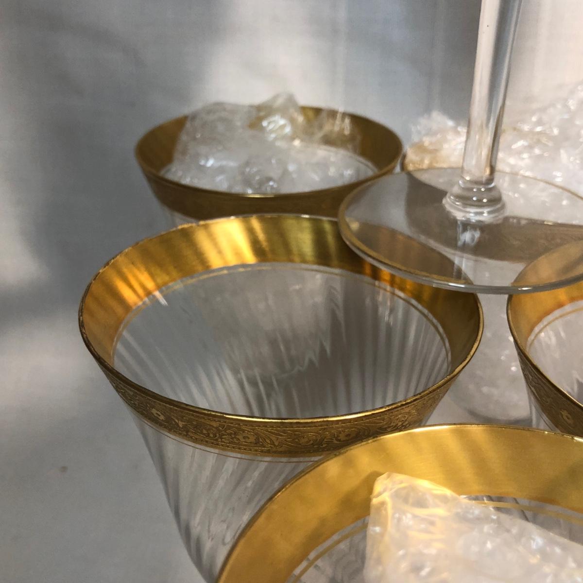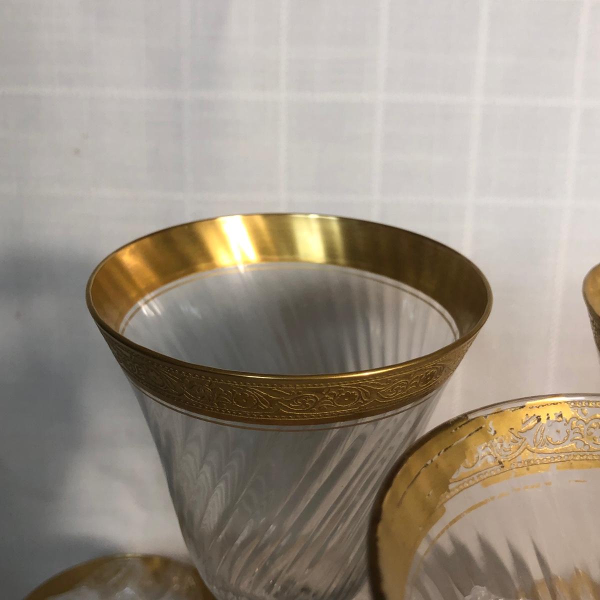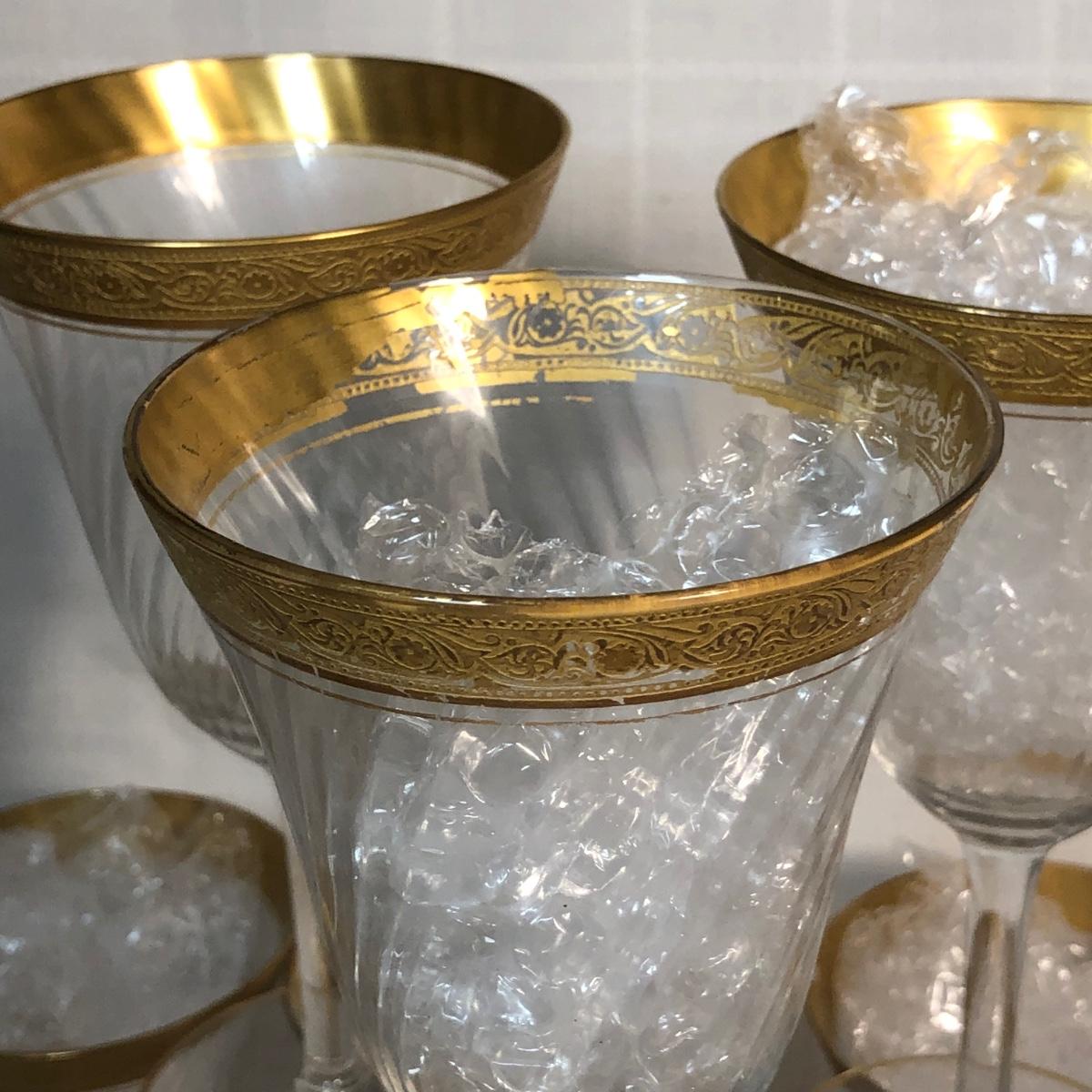 Few glasses have condition issues. 12 stemmed glasses included. 2 unique glasses w/ matching patterns included as well.