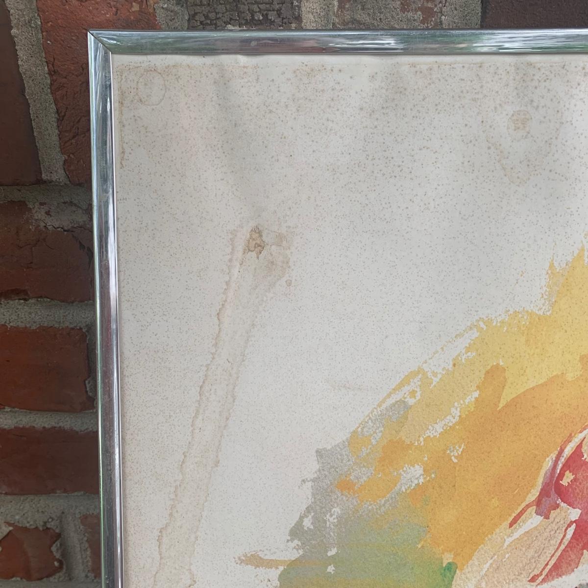Poster is in a frame with no glass, has condition issues, measures 22 x 28. Just needs a little TLC and reframing.