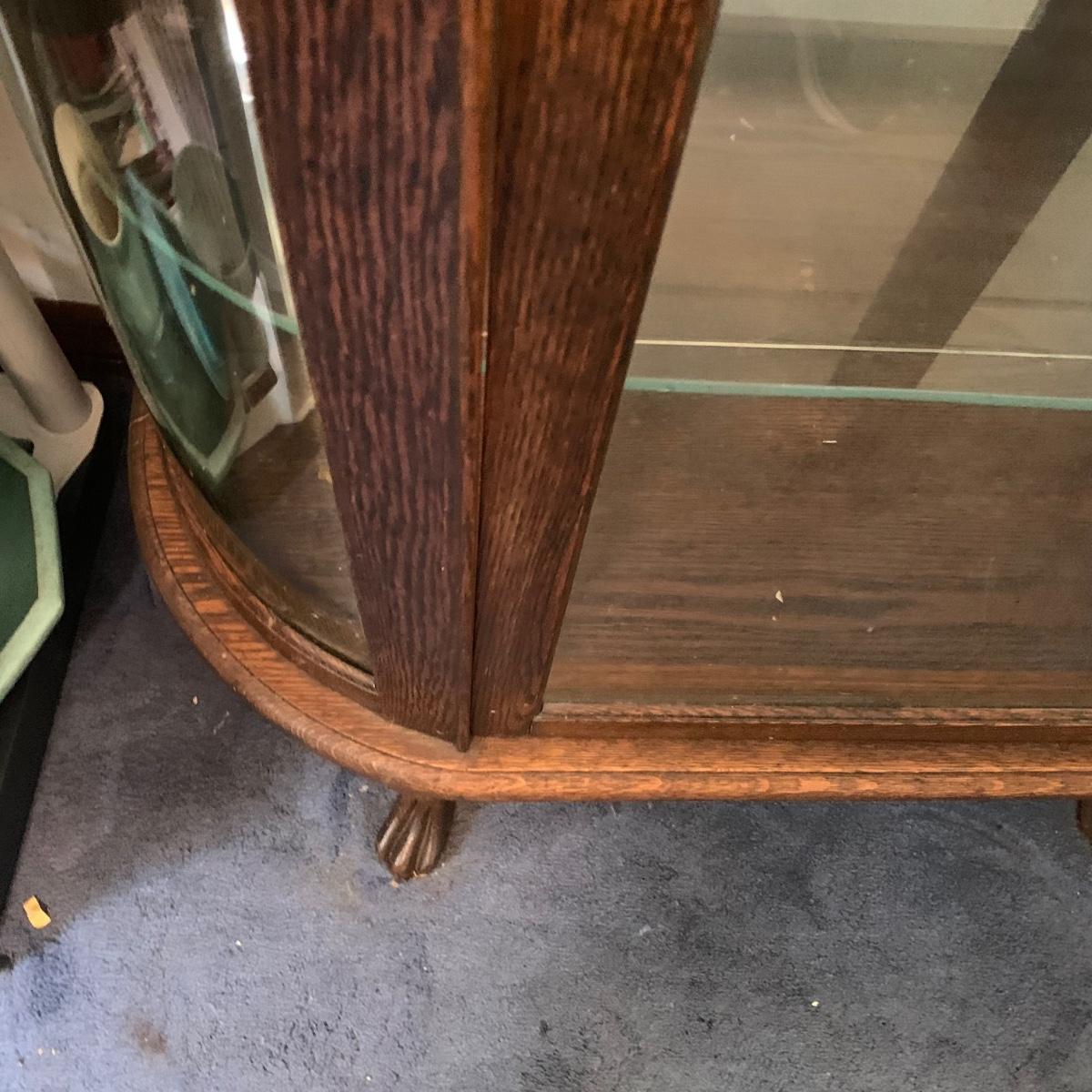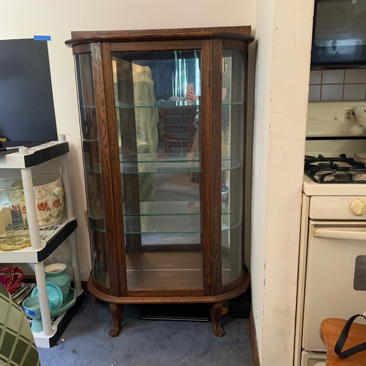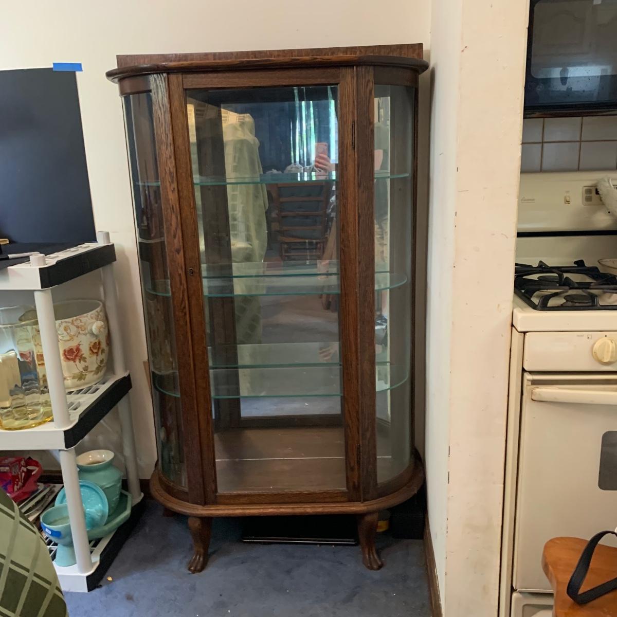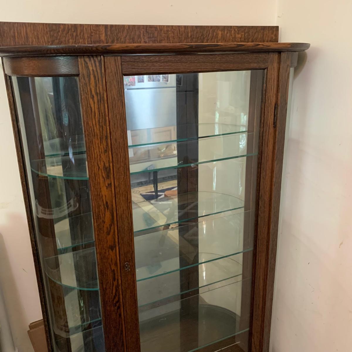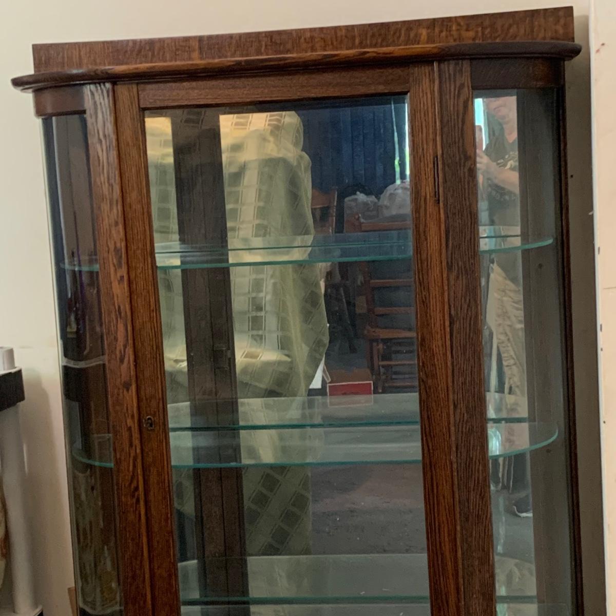 LOT 130: Antique Oak China Cabinet w/Bowed Glass
