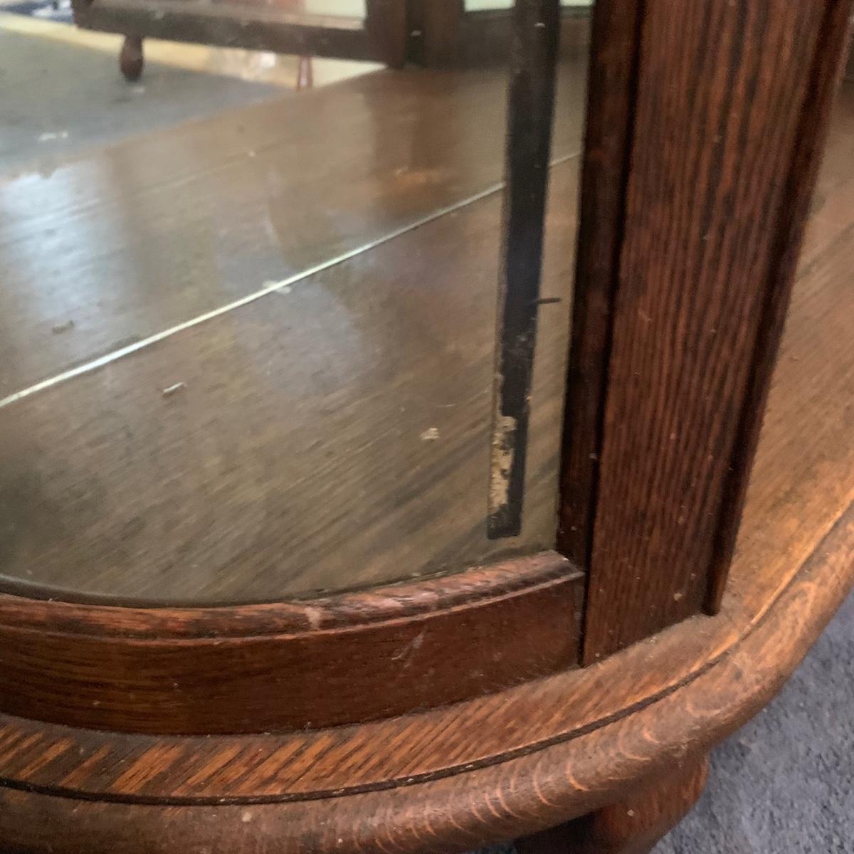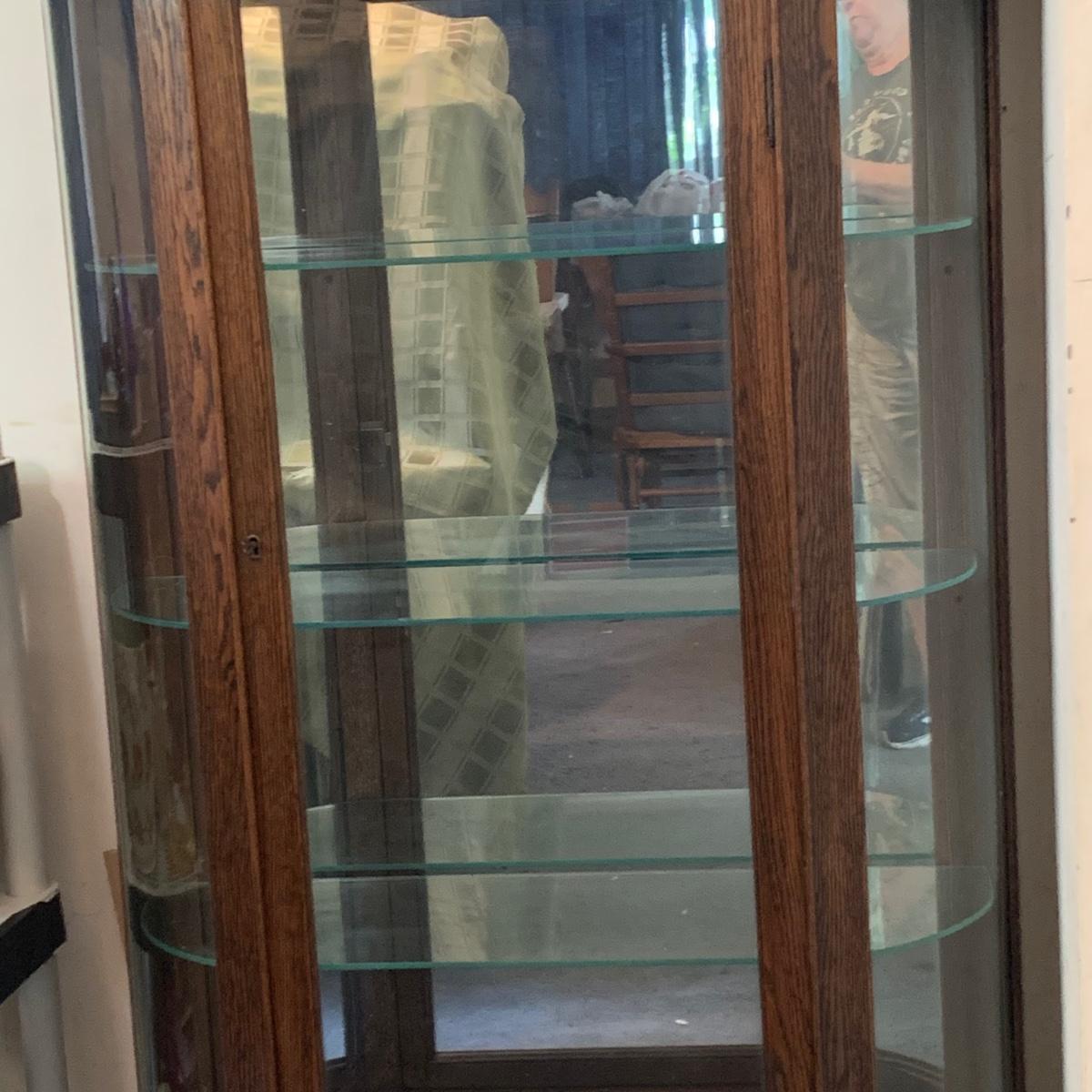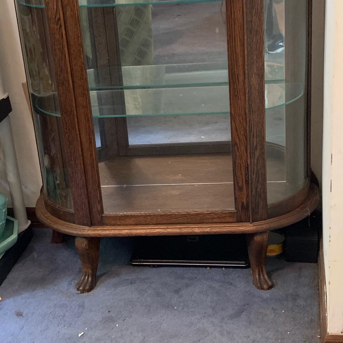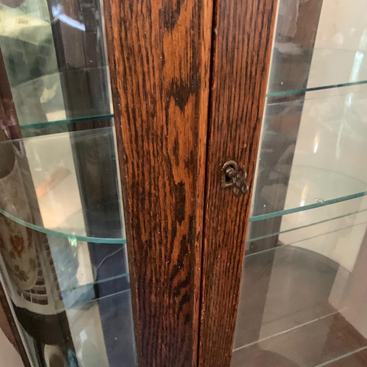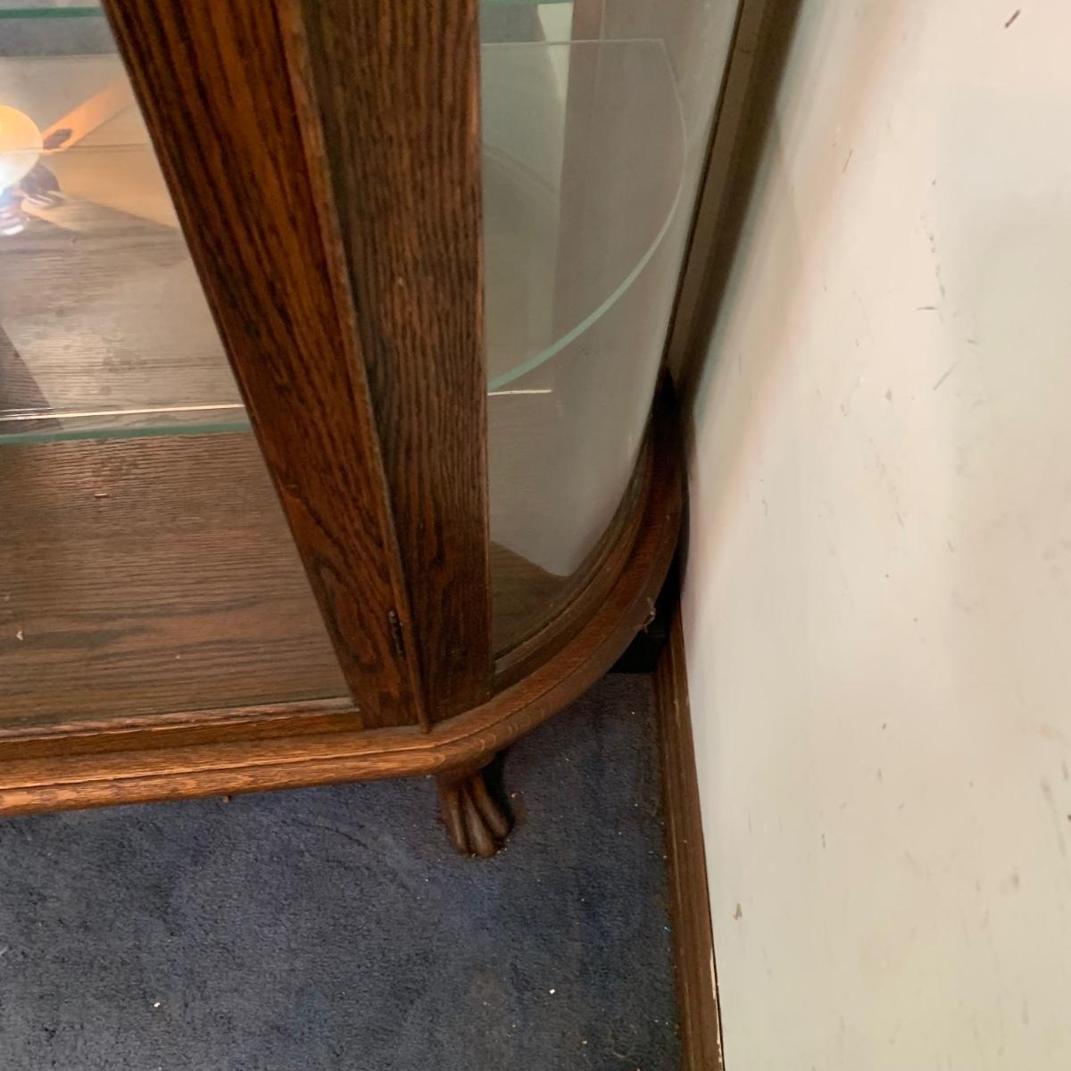 LOT 130: Antique Oak China Cabinet w/Bowed Glass