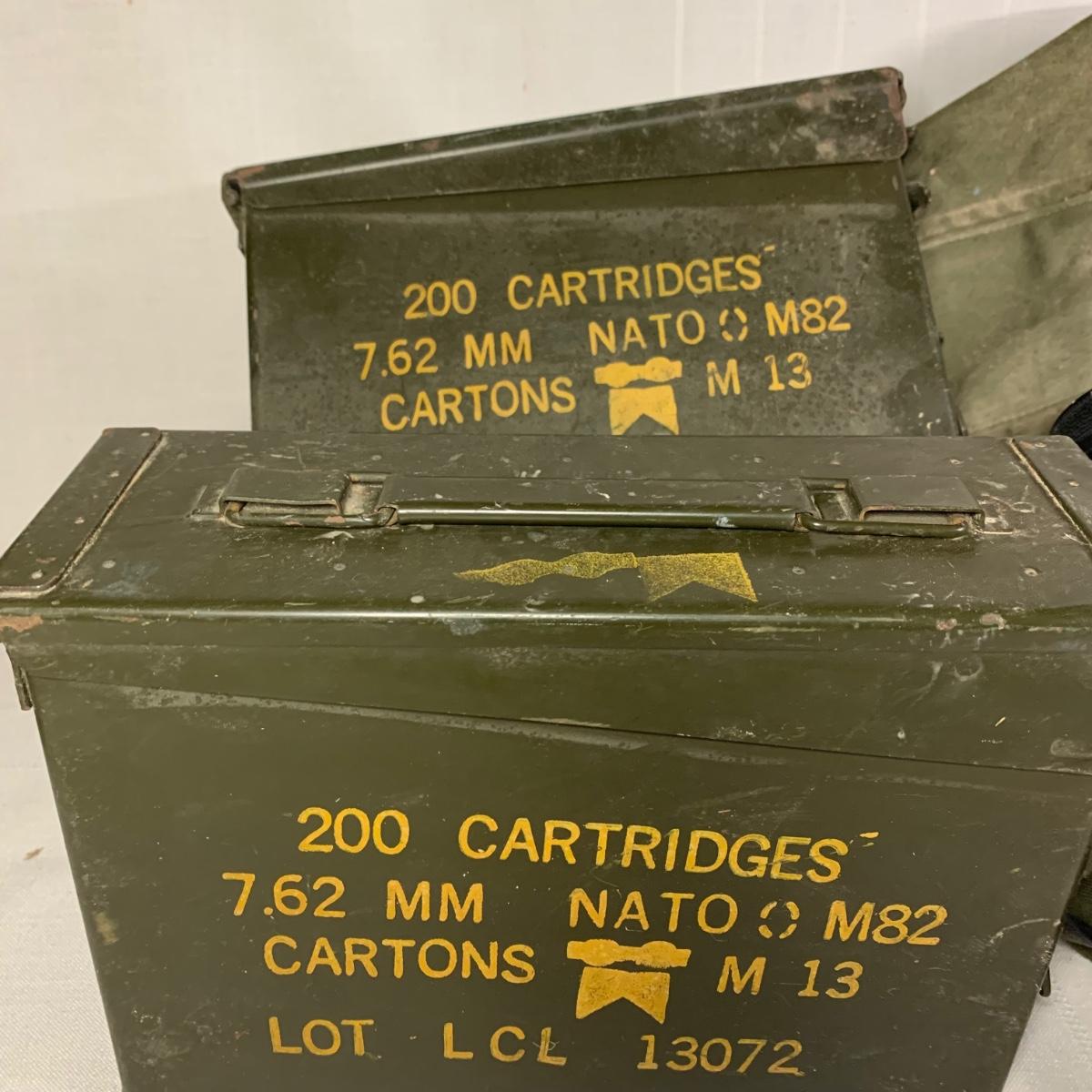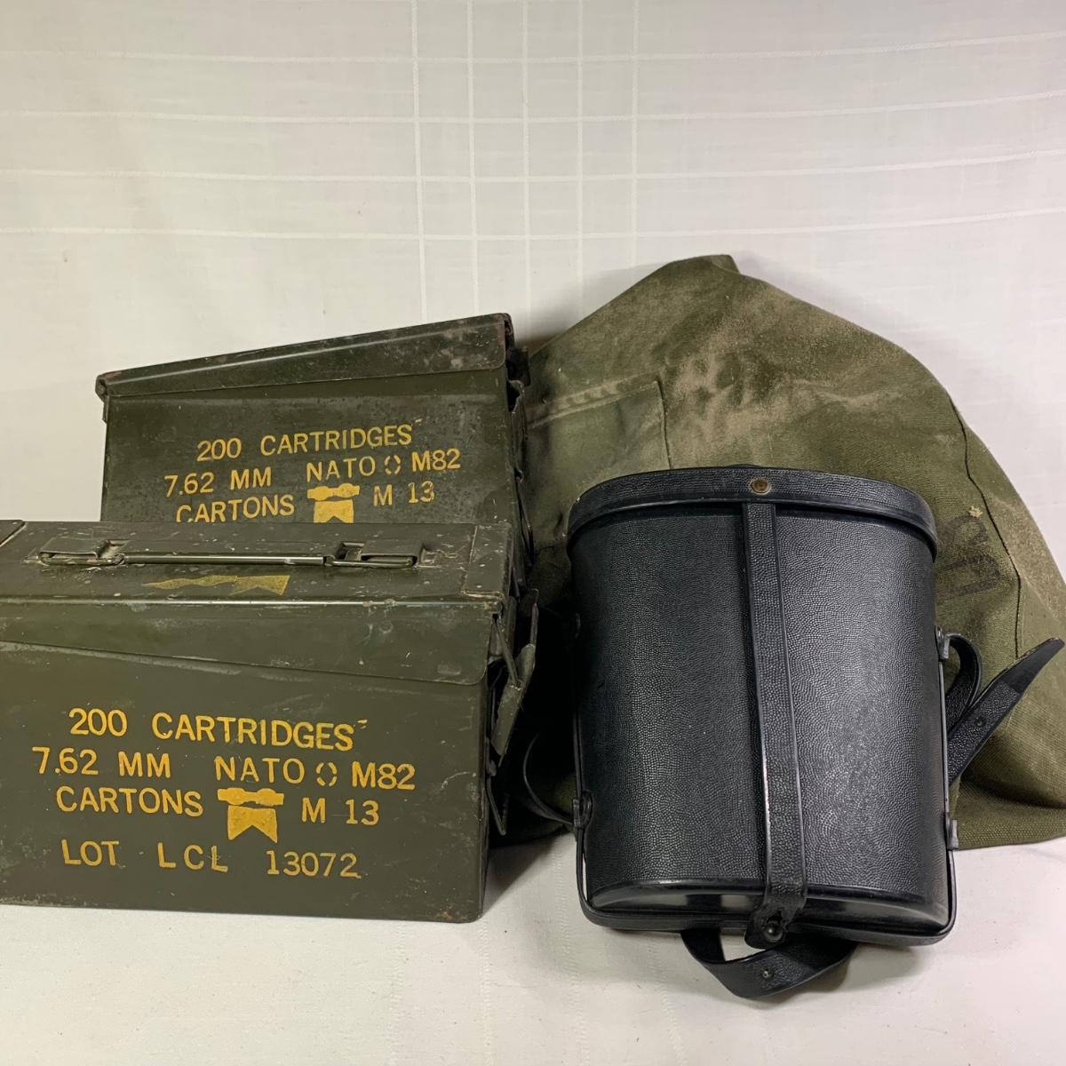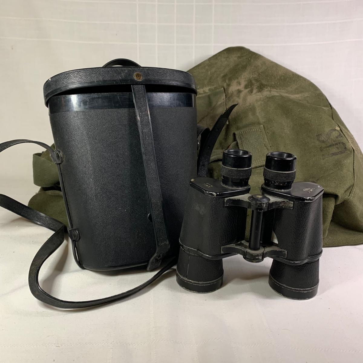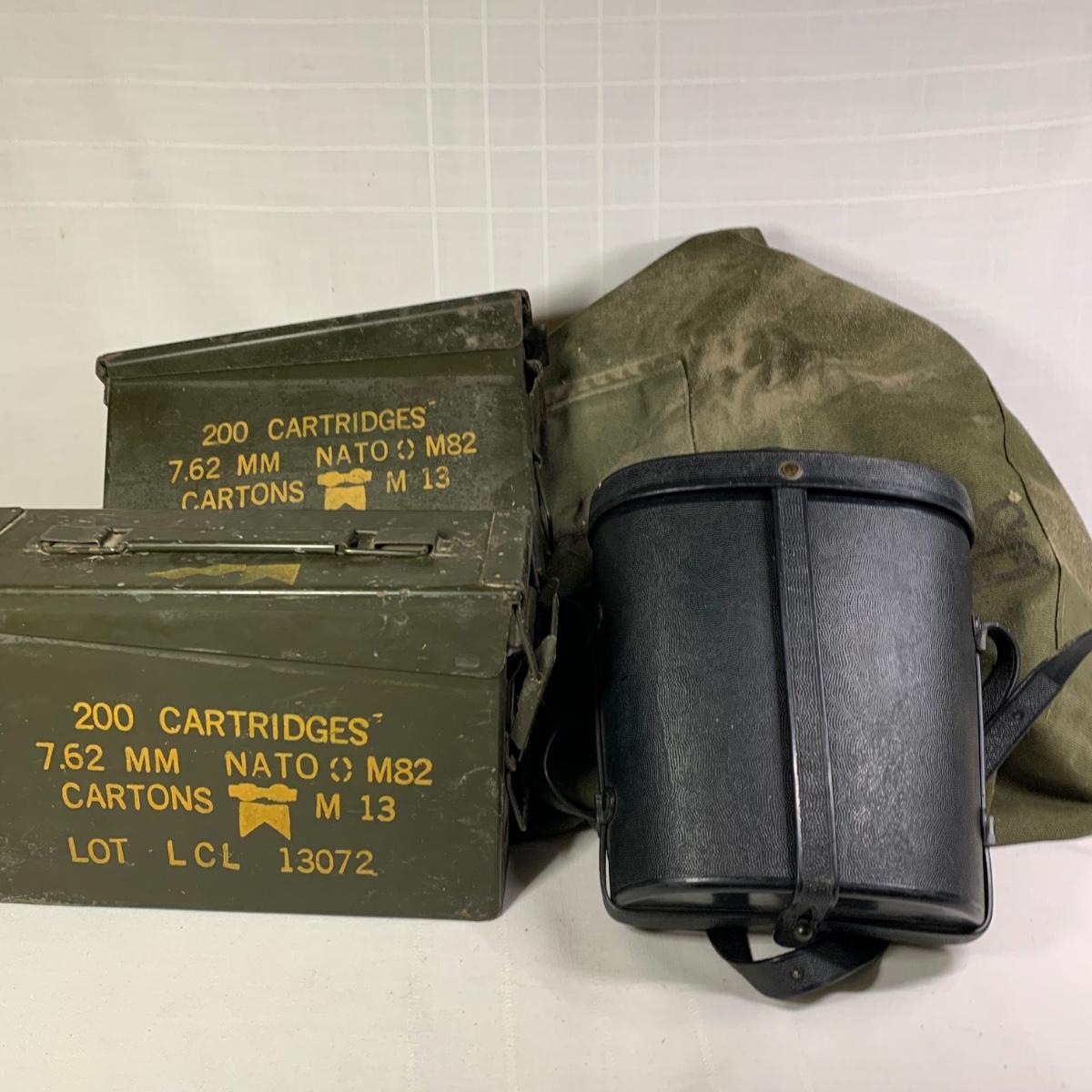 LOT 131: Military Collection: Metal Ammo Boxes, Duffle Bag & Binoculars