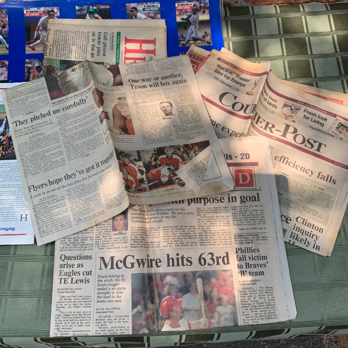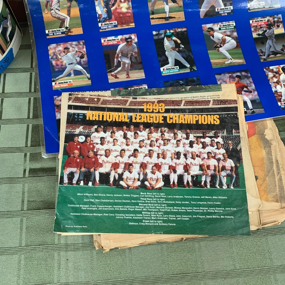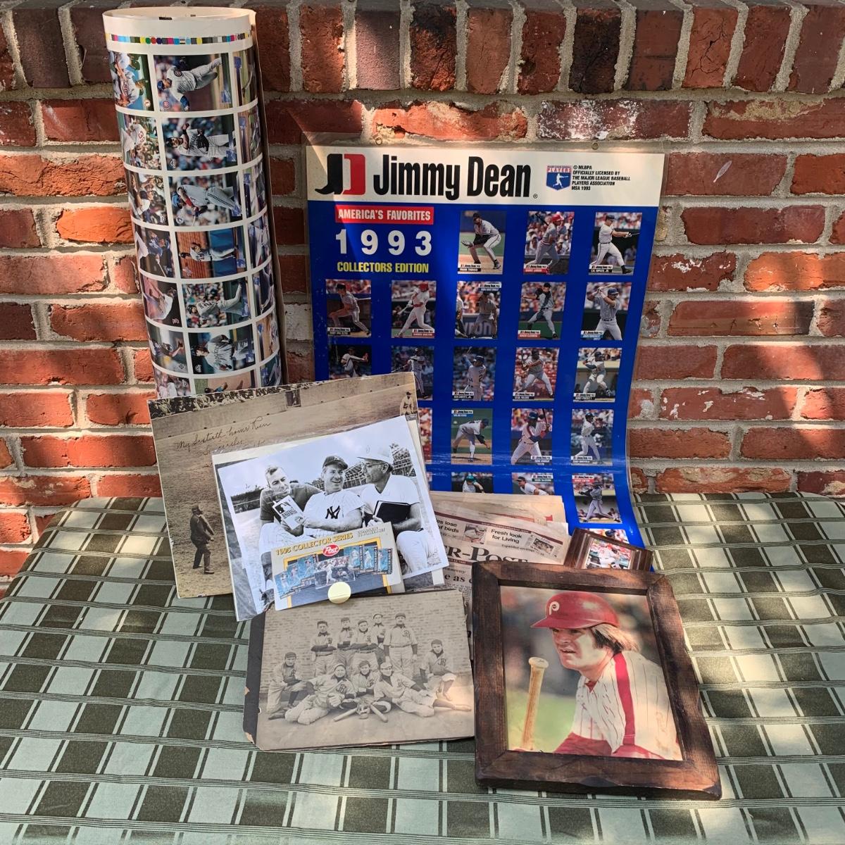 LOT 139: Baseball Memorabilia: Uncut Baseball Card Sheet, Jimmy Dean 1993 America's Favorites Poster, Newspapers & More