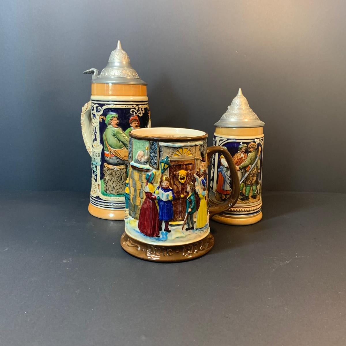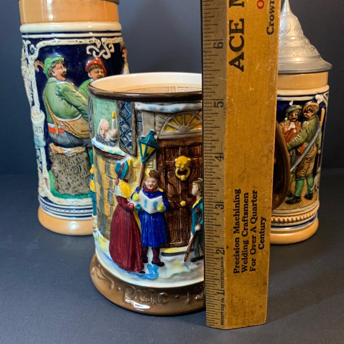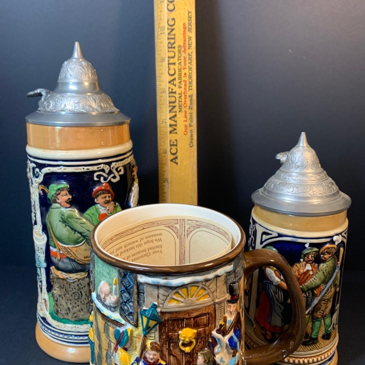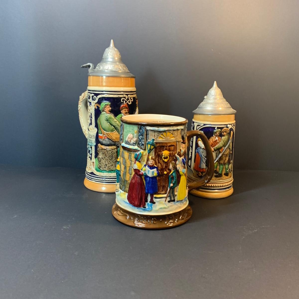 LOT 141: Beswick Royal Daulton Christmas Carol Tankard & Made in Western Germany Steins
