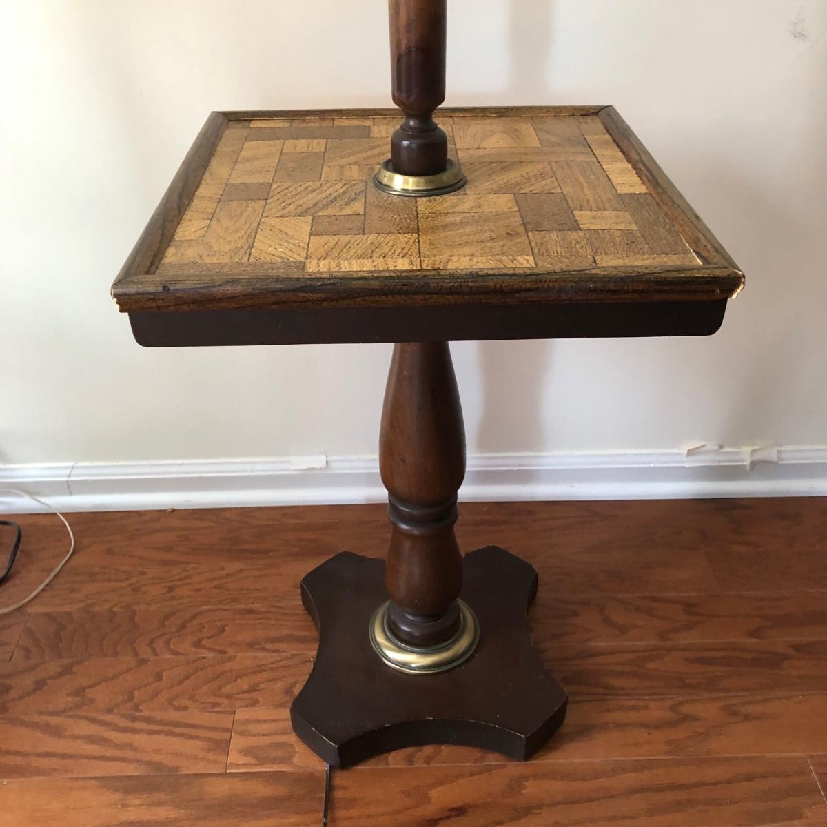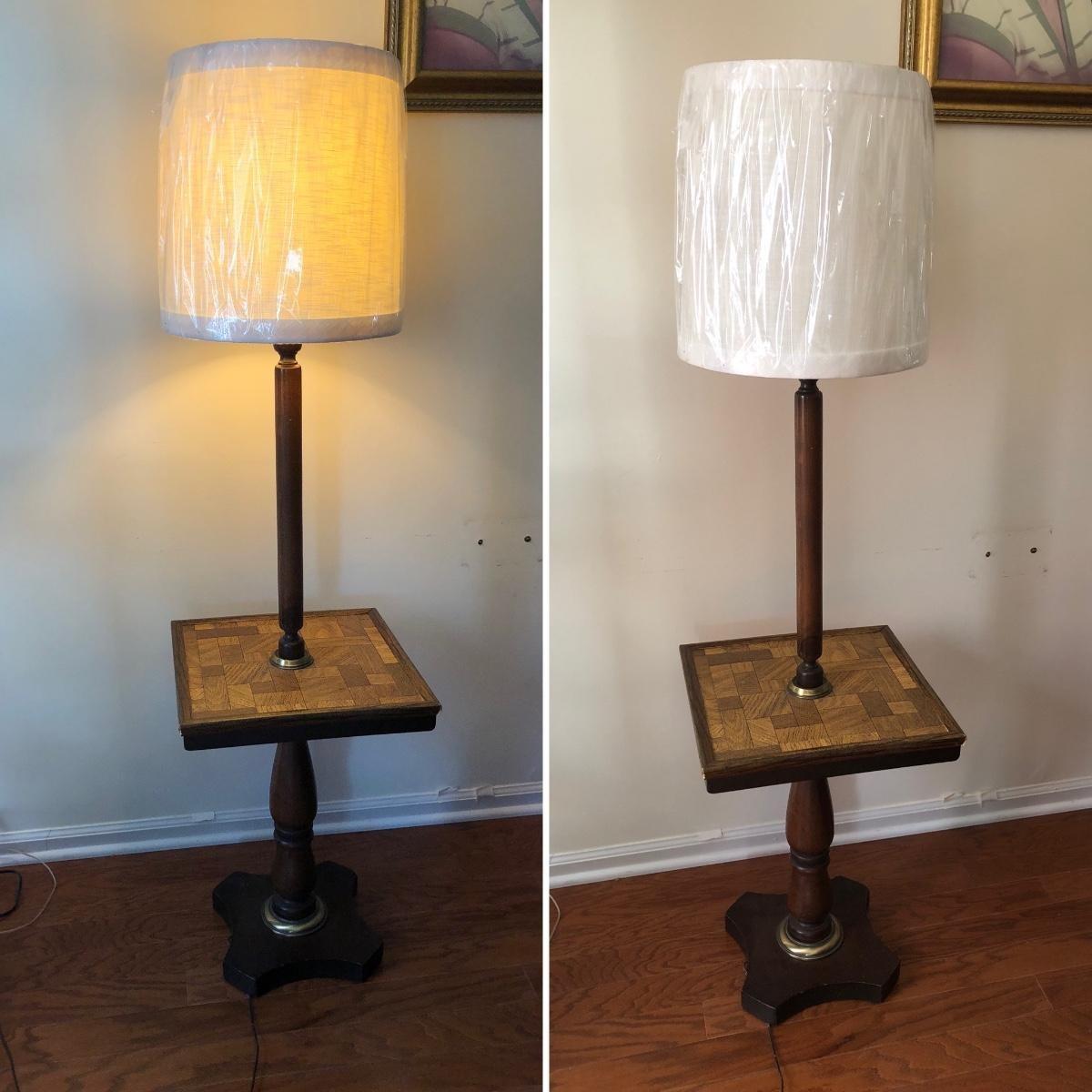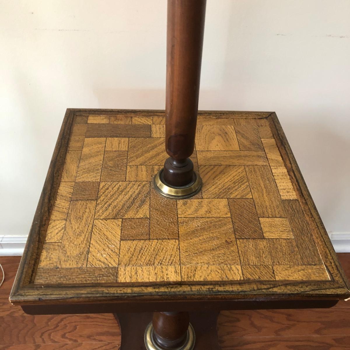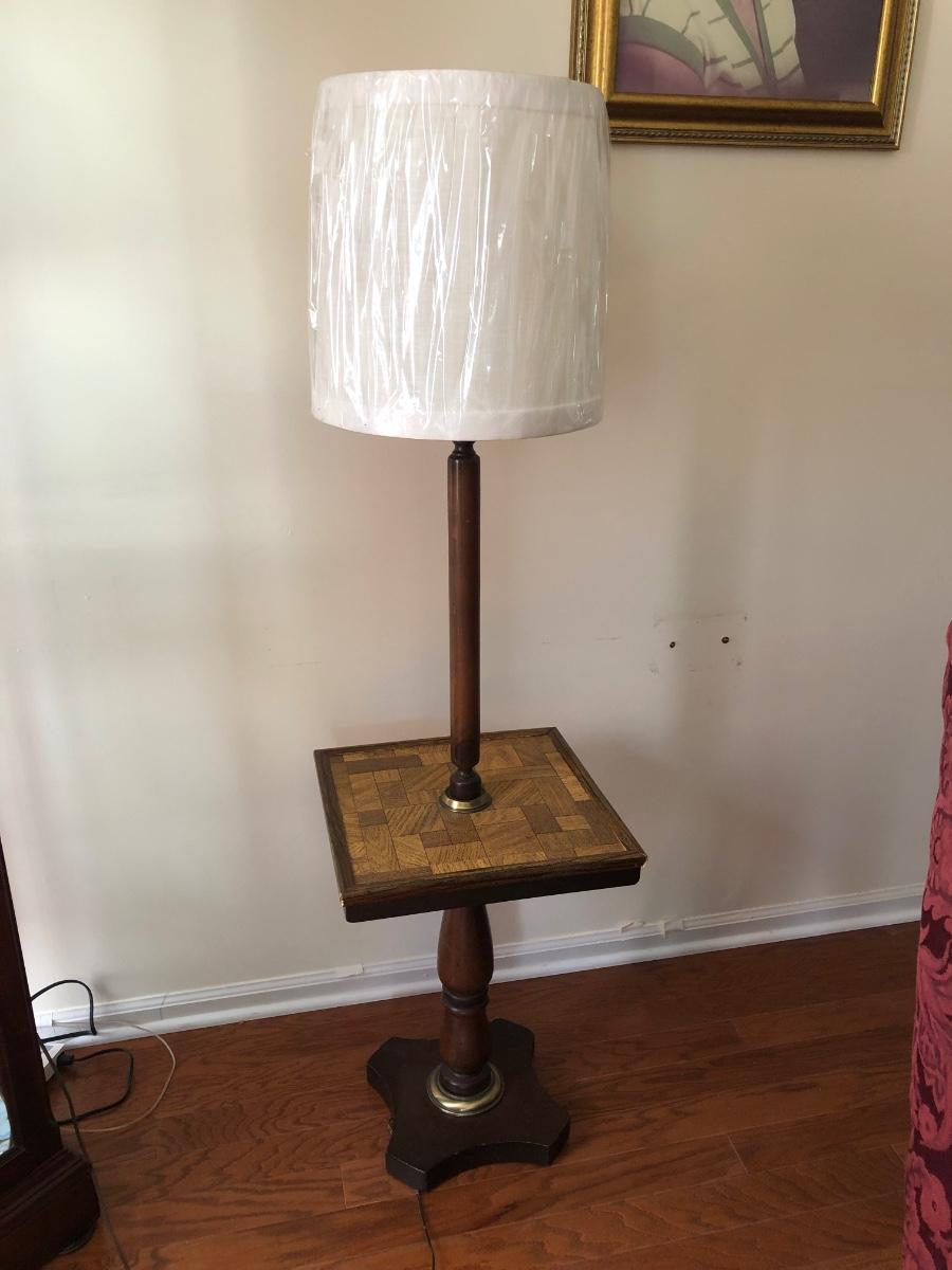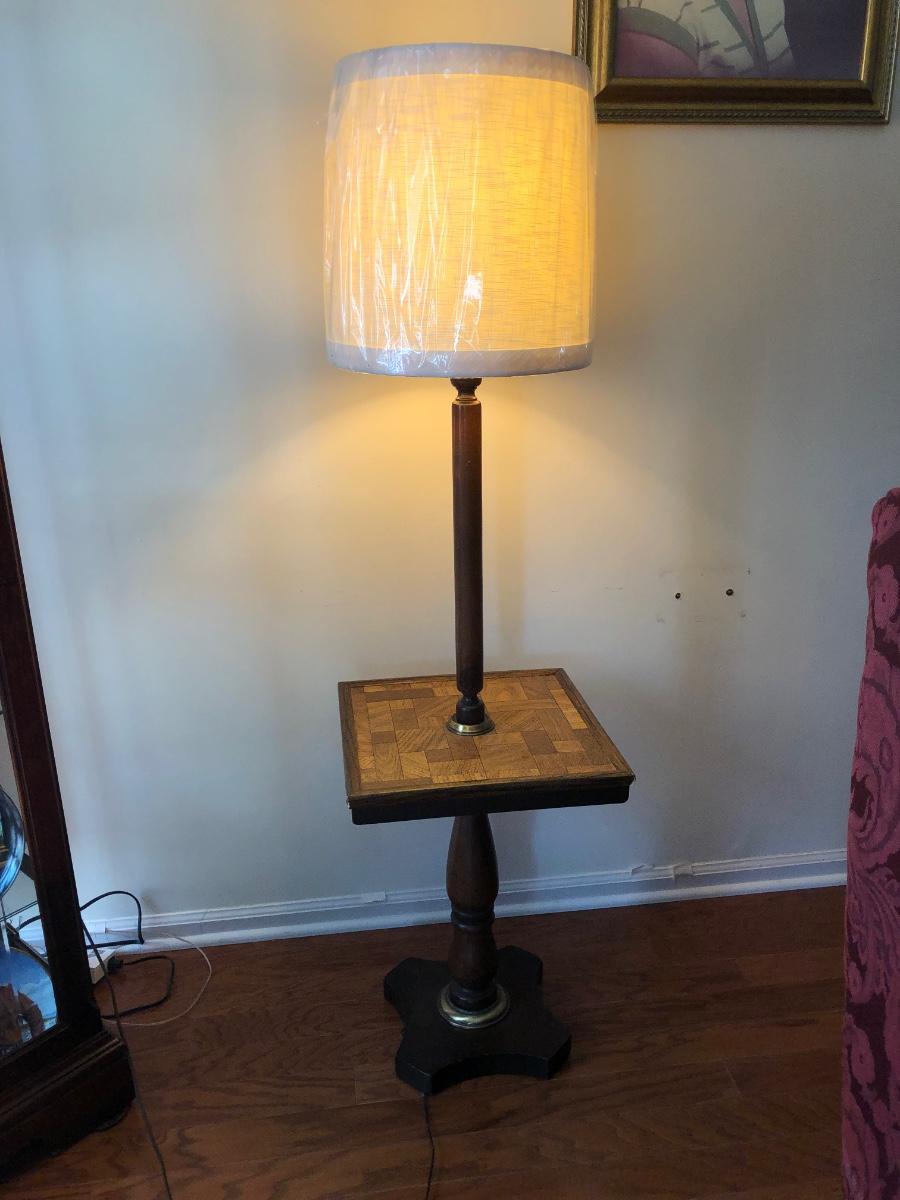 Lamp is in working condition. Measures 15.5 x 15.5 x 48 inches.